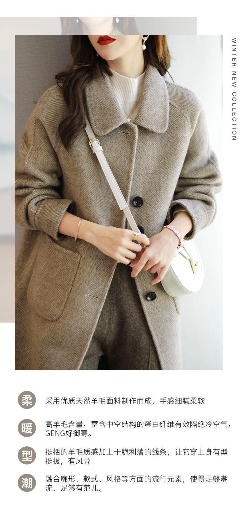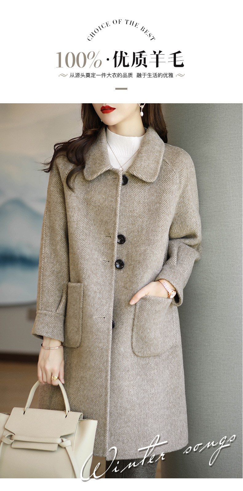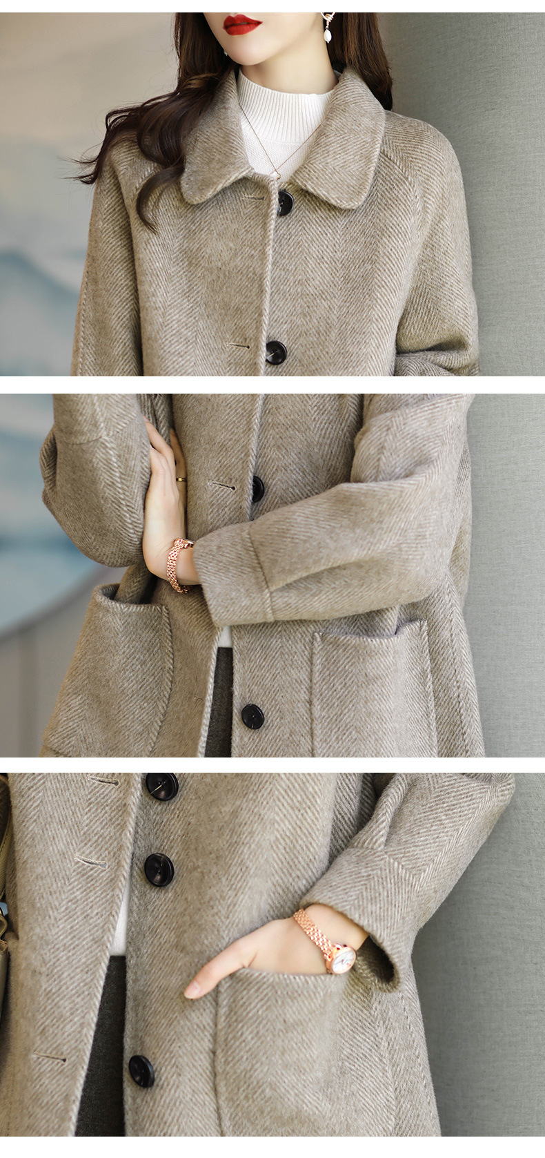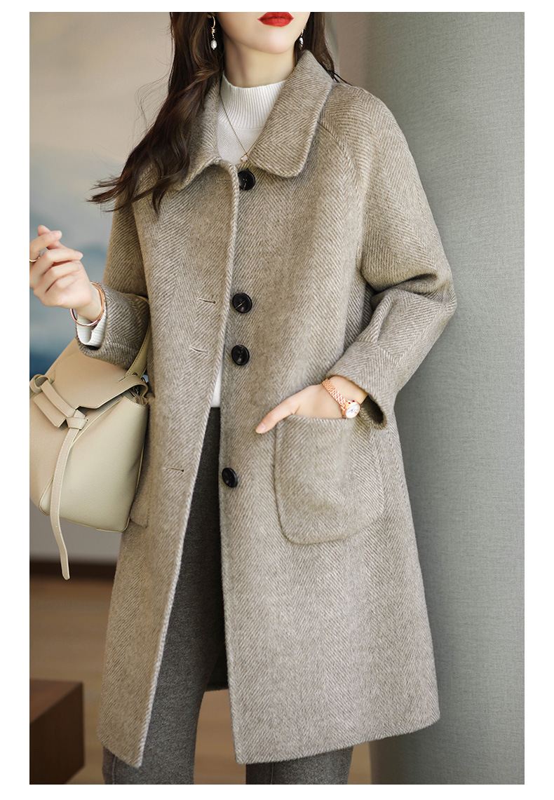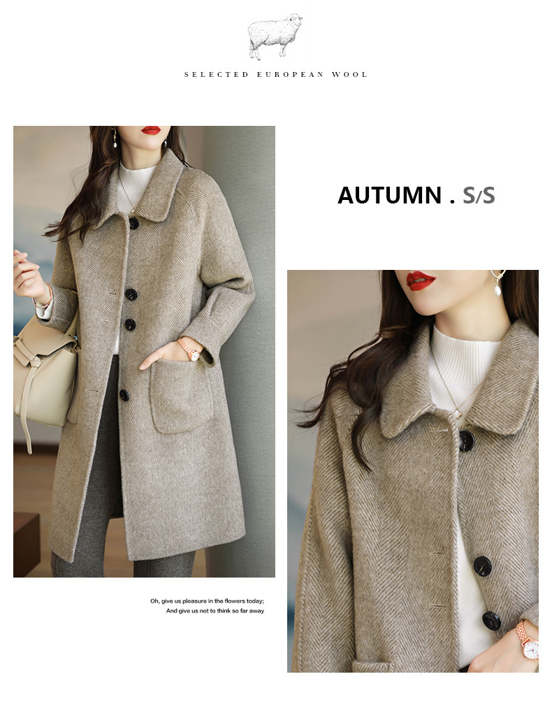2024 년 가을과 겨울 새 중장 양모 코트 여성 고급 한국식 슬림형 캐시미어 양면 코트