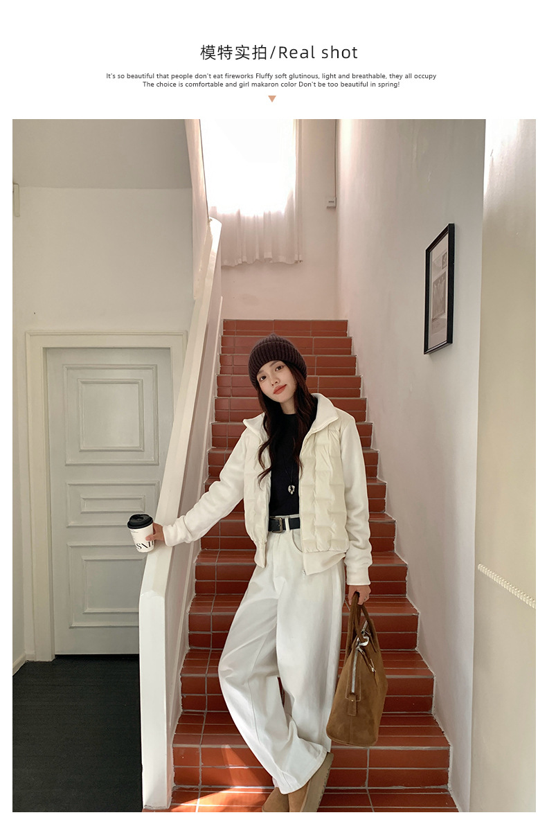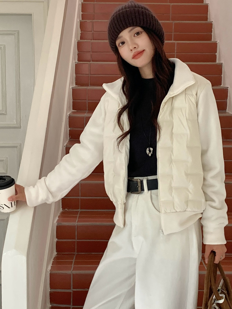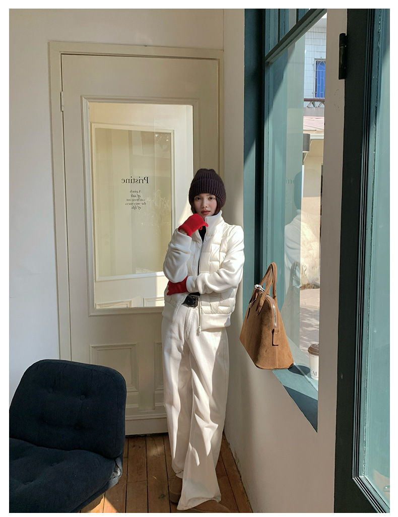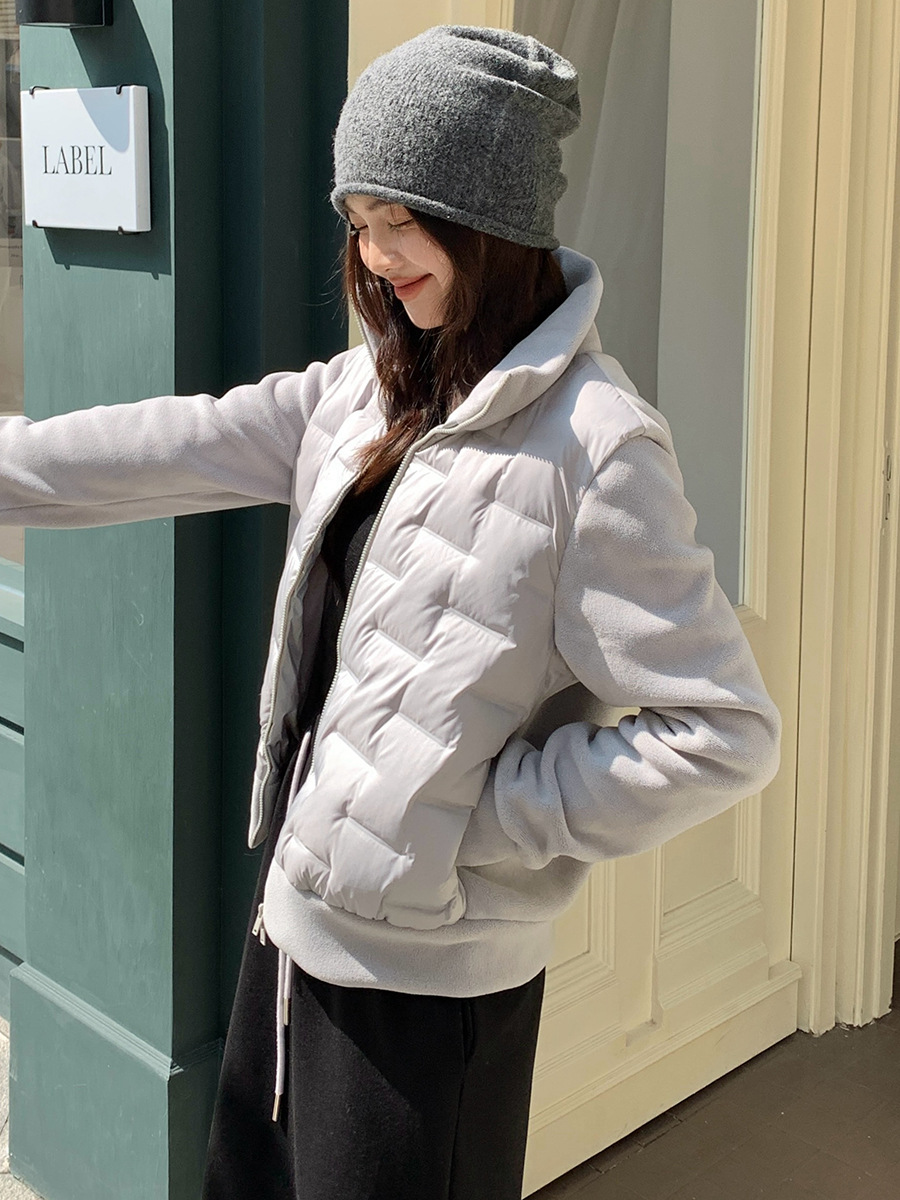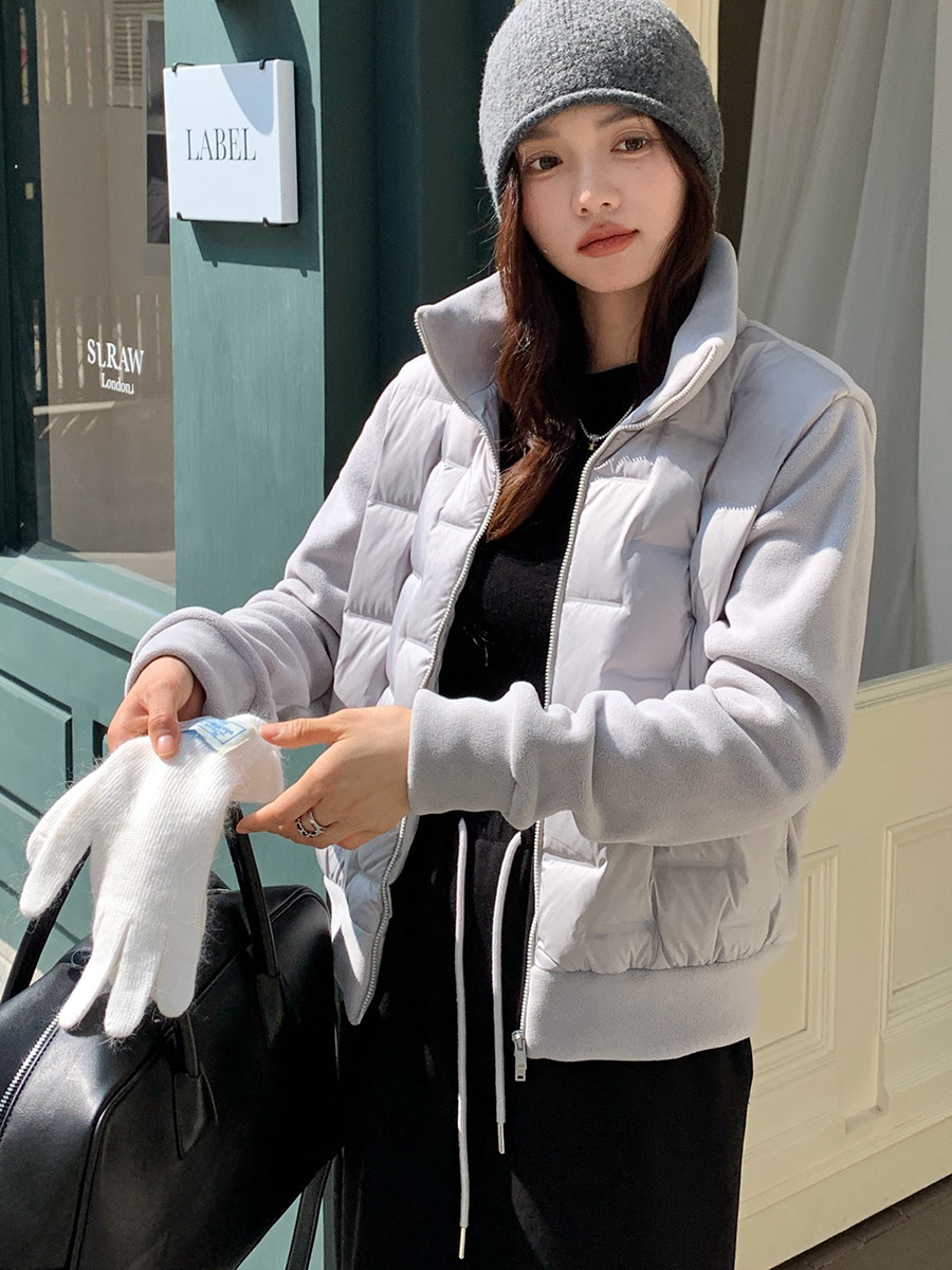 모리시마 가을과 겨울 폴라 플리스 다운 재킷 여성의 2024 새로운 탄성 단색 따뜻한 카디건 화이트 오리 다운 다용도 코트