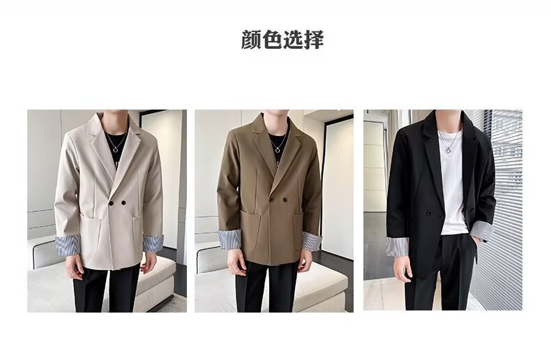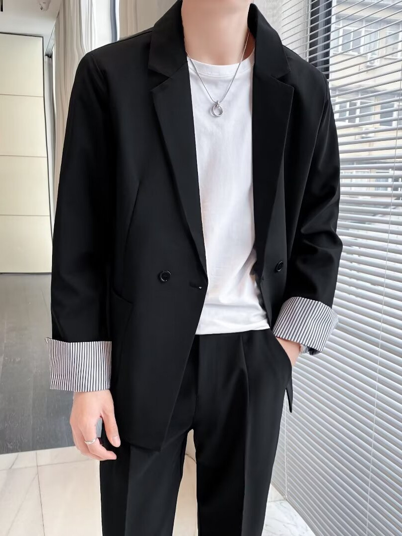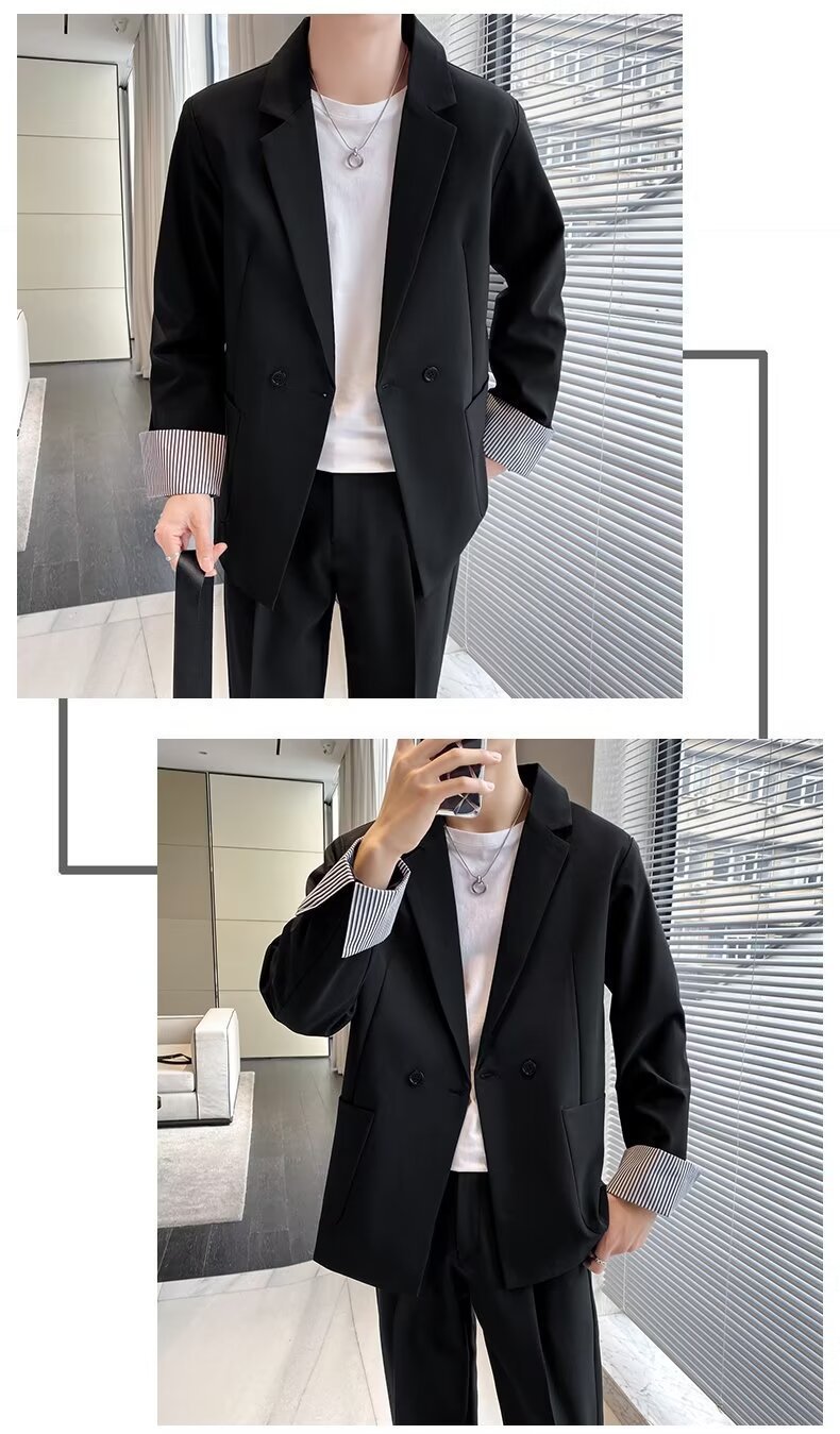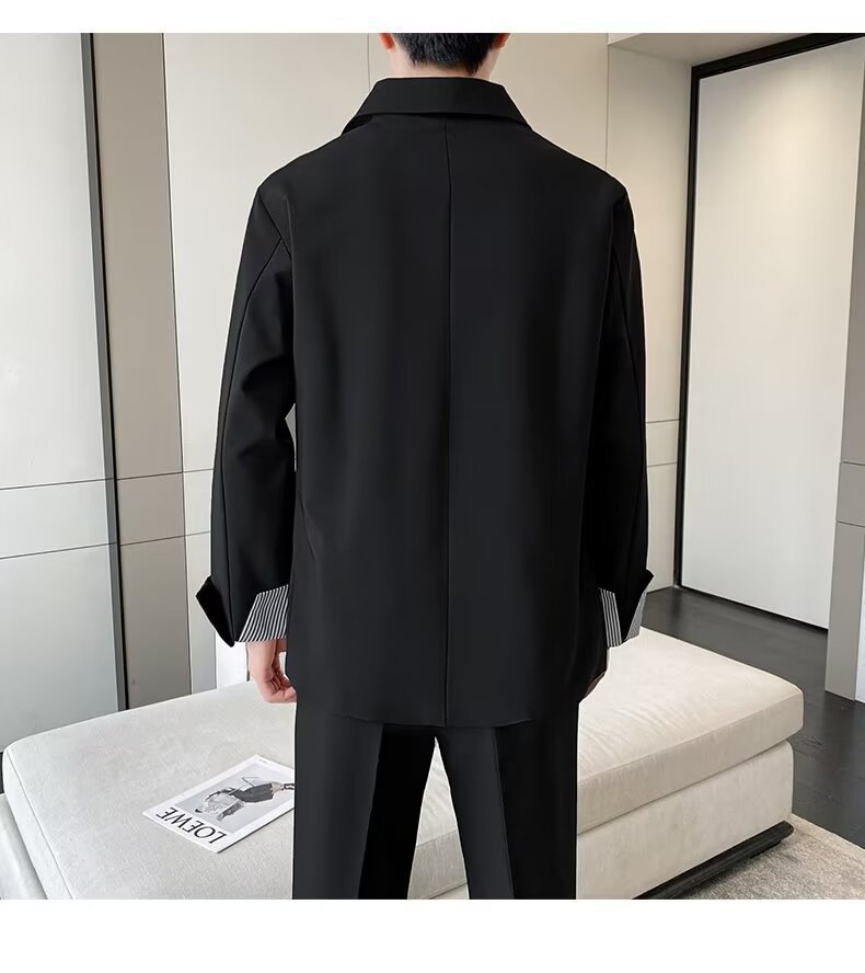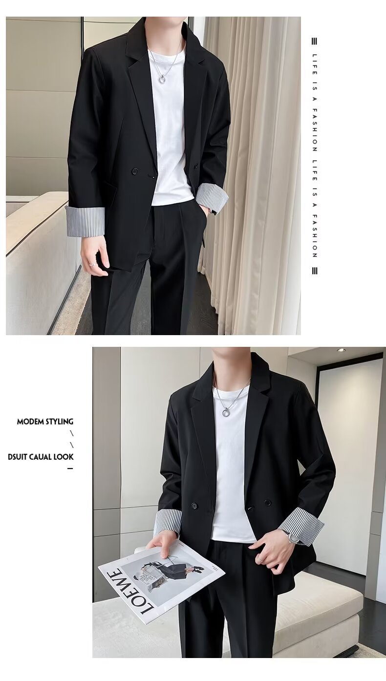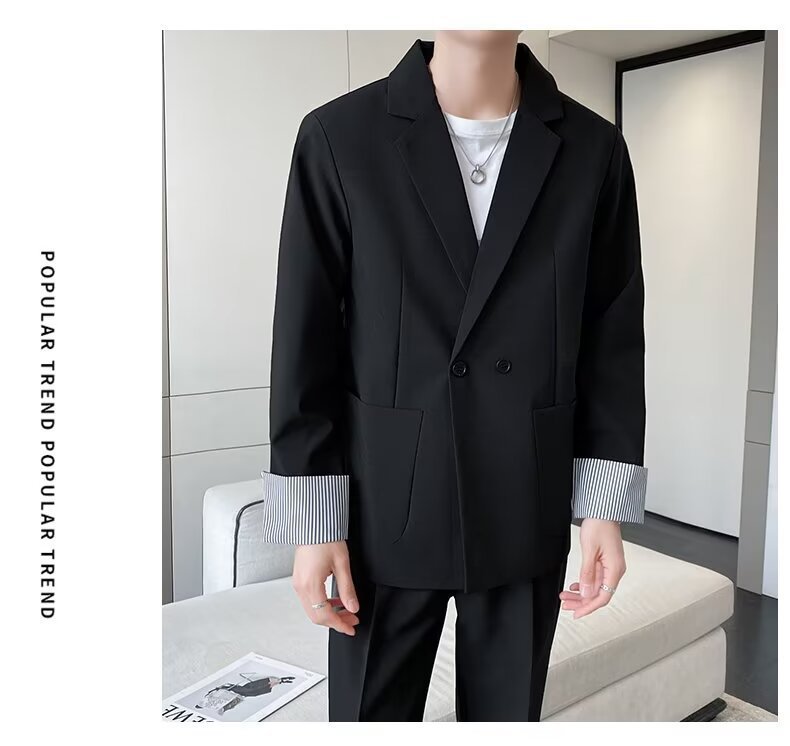 한국식 캐주얼 솔리드 컬러 세트 남성용 하이 엔드 Dk 유니폼 라이트 성숙한 스타일 세련된 루즈 세트 재킷