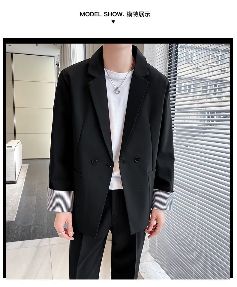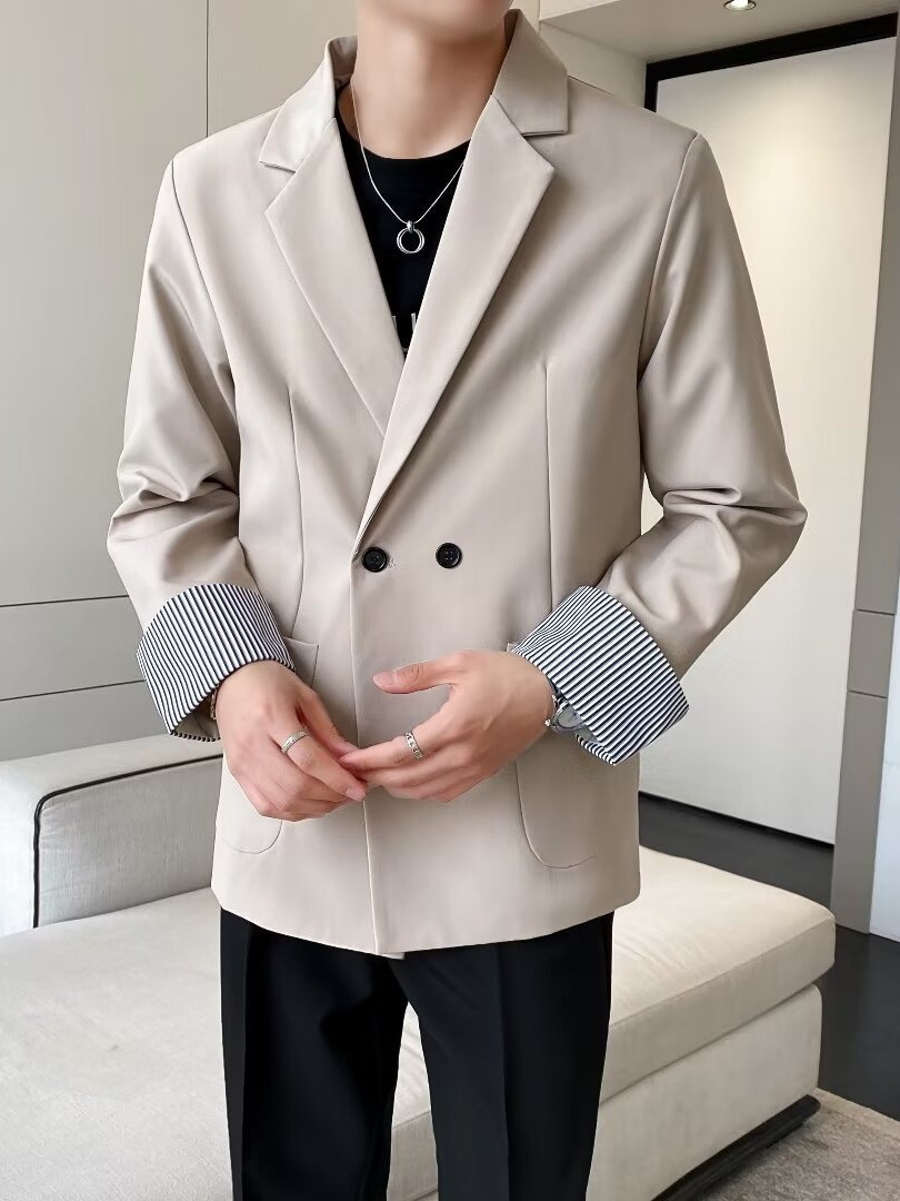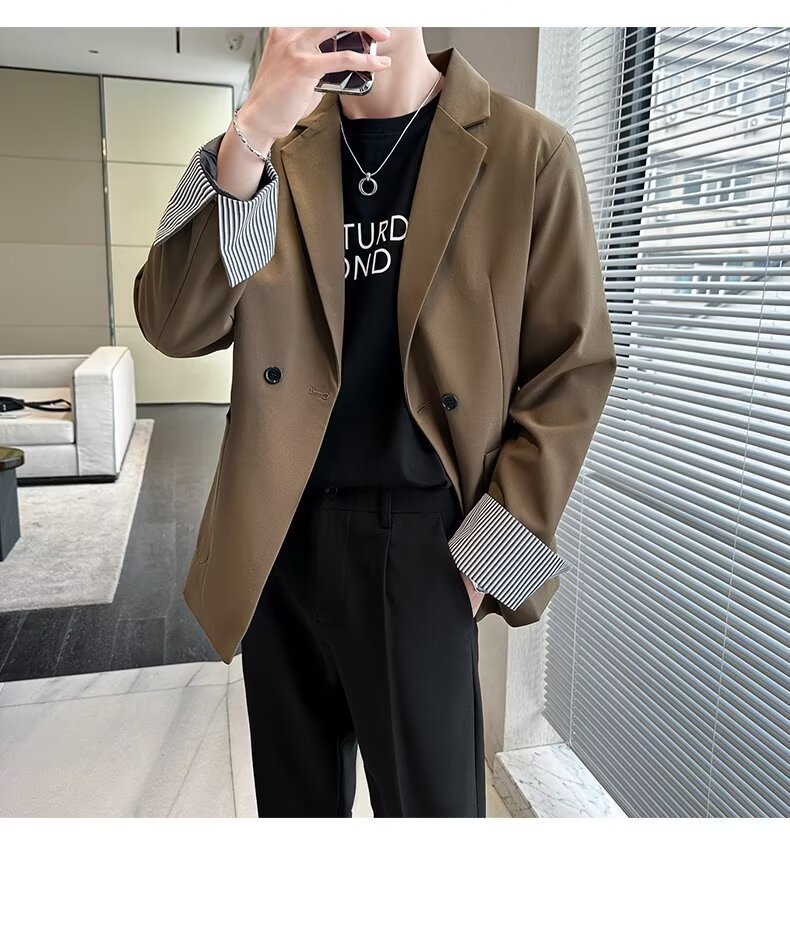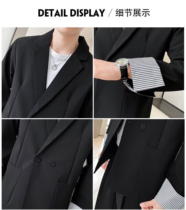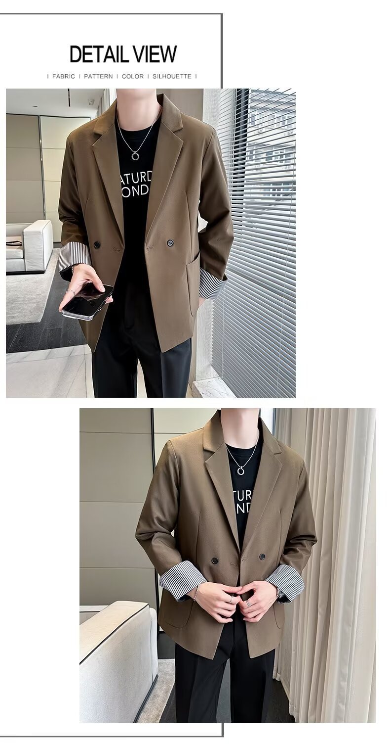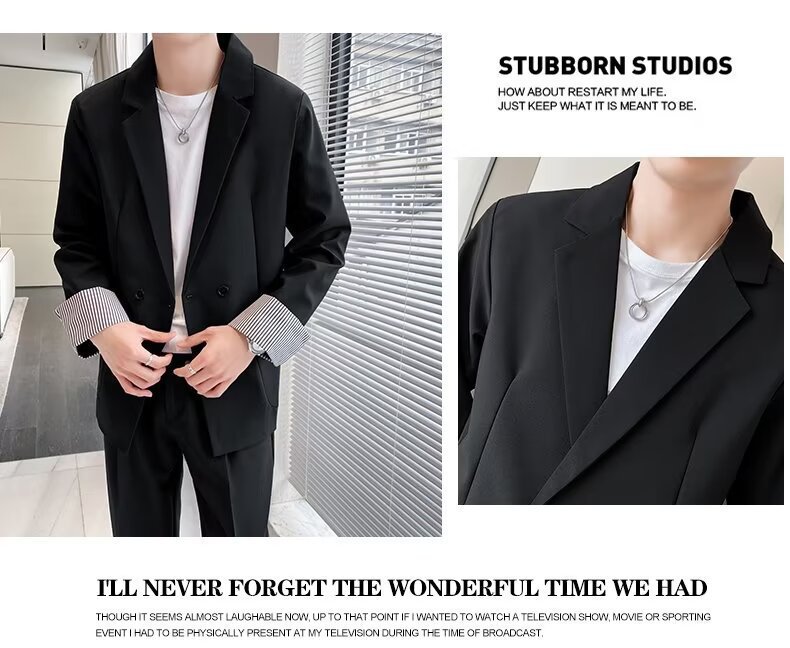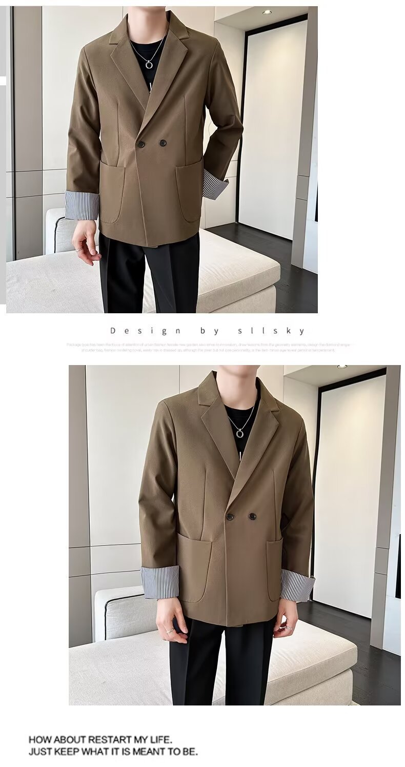 한국식 캐주얼 솔리드 컬러 세트 남성용 하이 엔드 Dk 유니폼 라이트 성숙한 스타일 세련된 루즈 세트 재킷