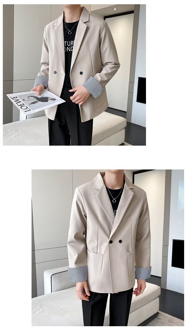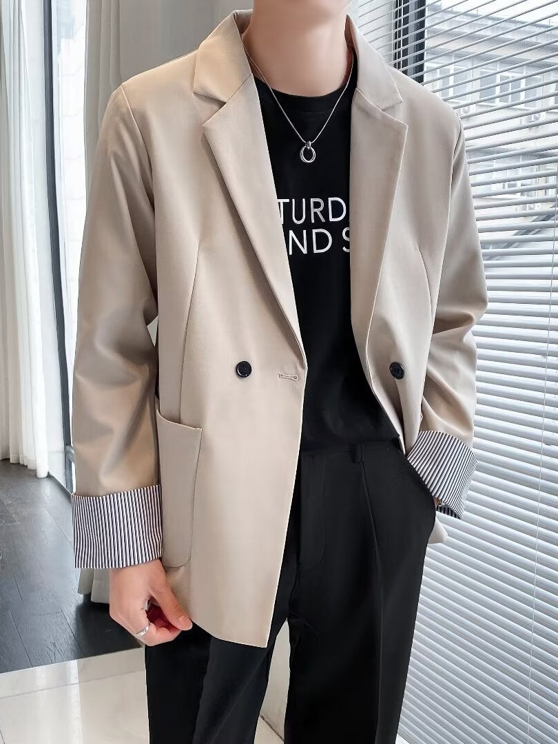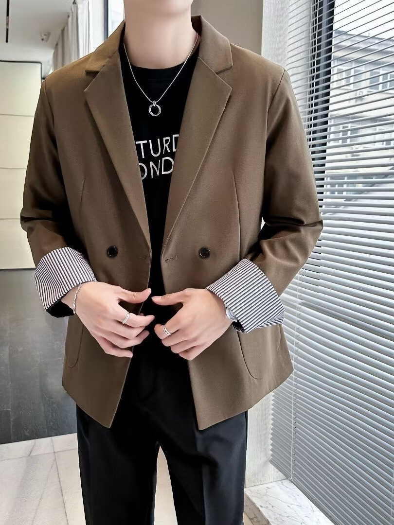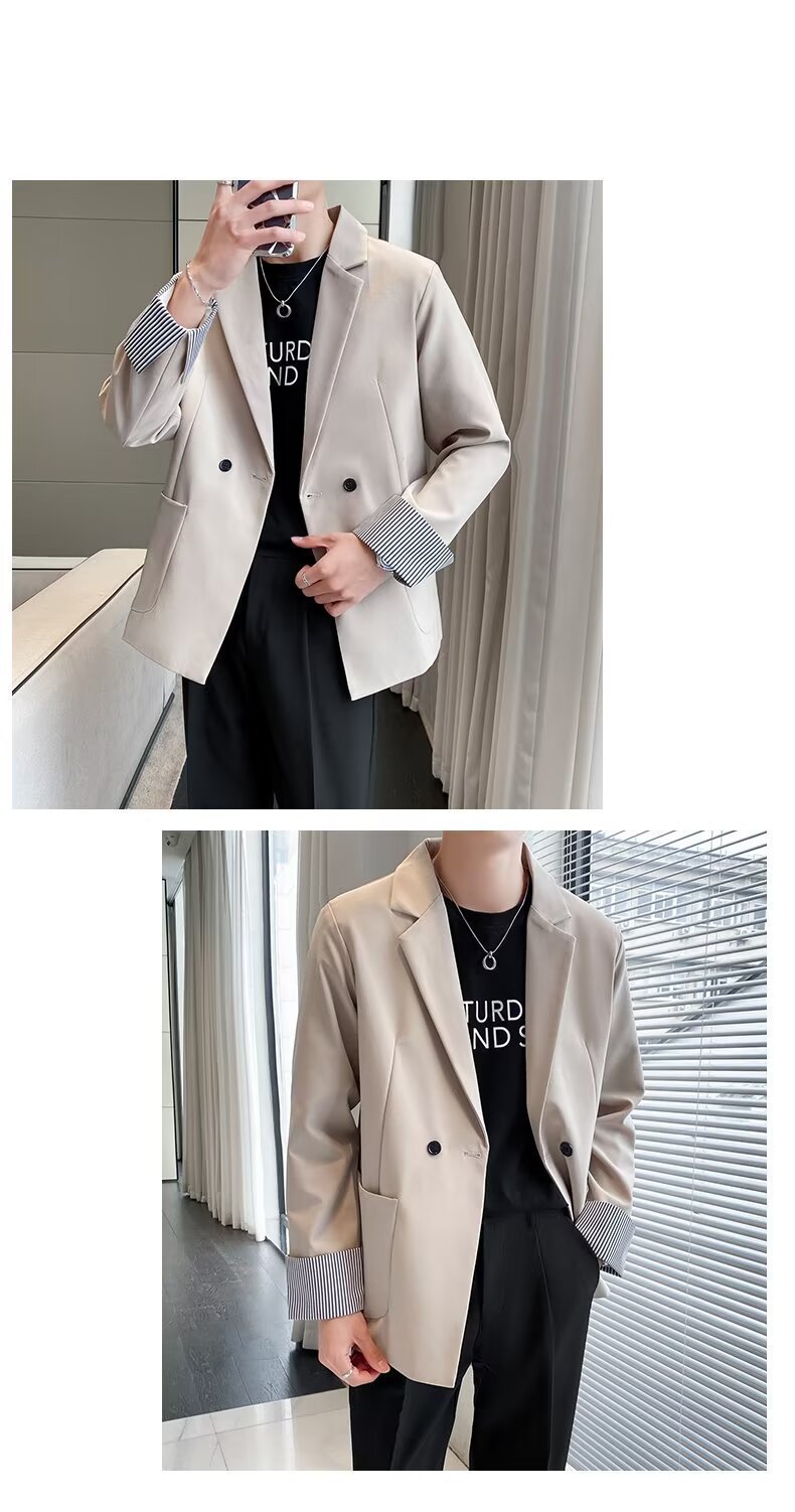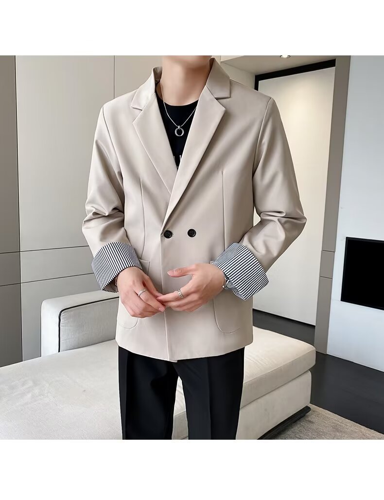 한국식 캐주얼 솔리드 컬러 세트 남성용 하이 엔드 Dk 유니폼 라이트 성숙한 스타일 세련된 루즈 세트 재킷