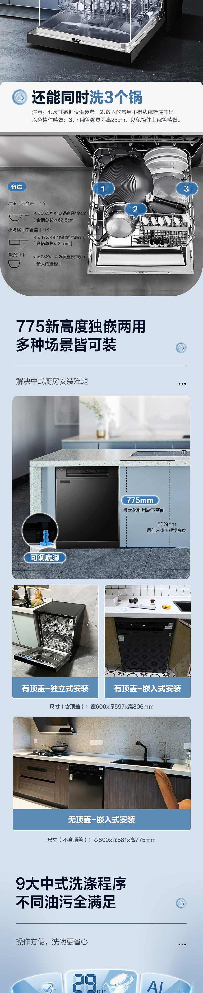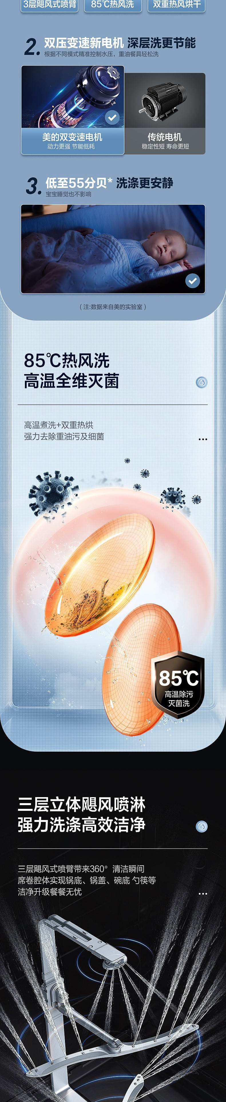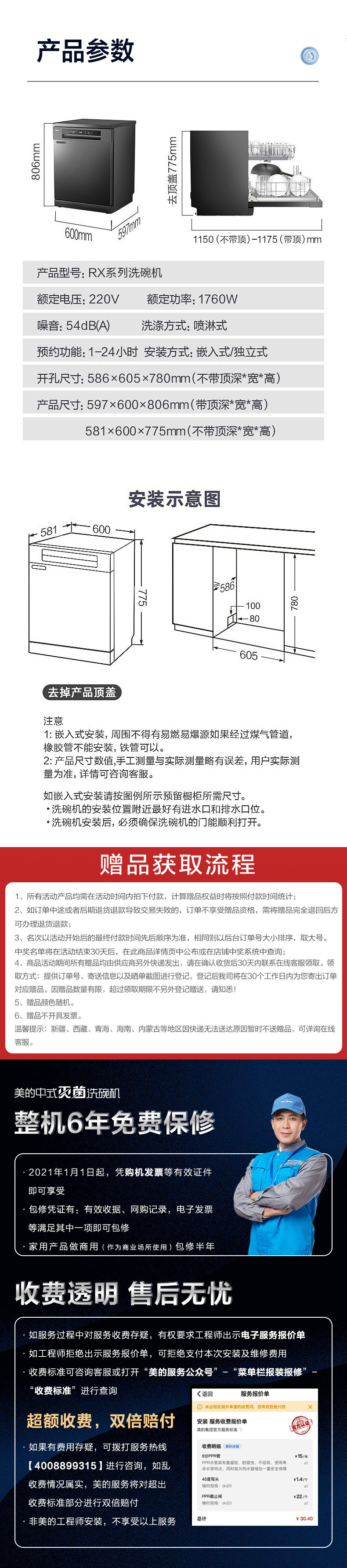 Midea 14 세트 식기 세척기 자동 지능형 가정용 테이블 임베디드 소독 85 ℃ 뜨거운 공기 건조 오염 제거 통합