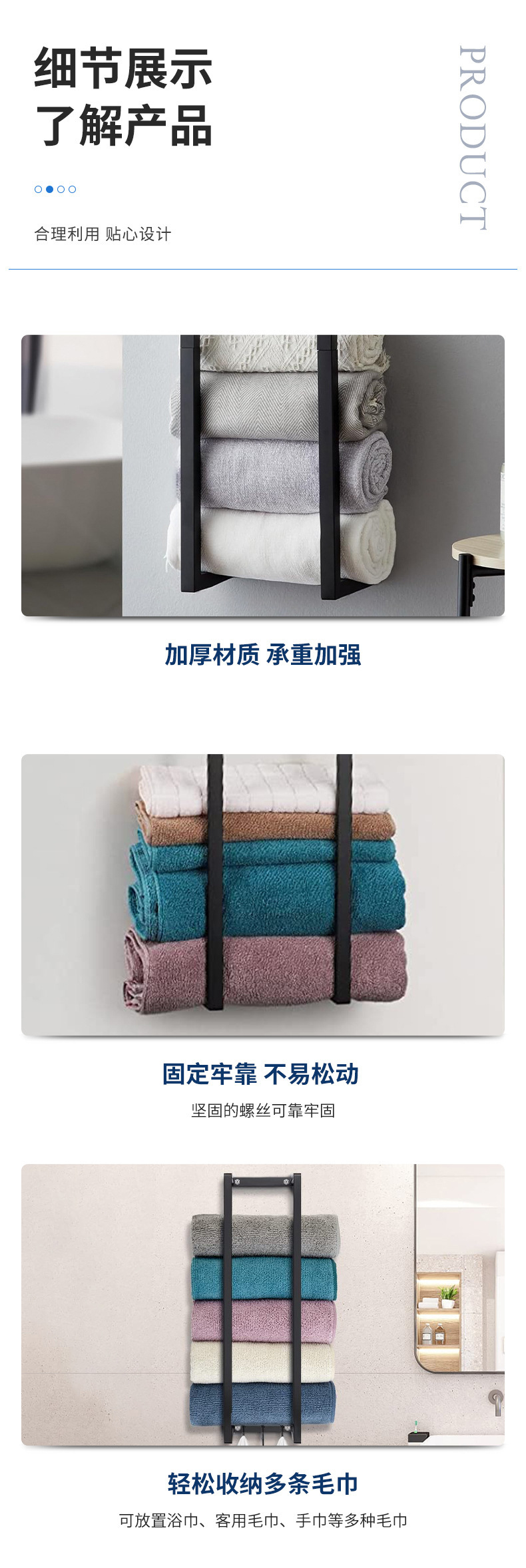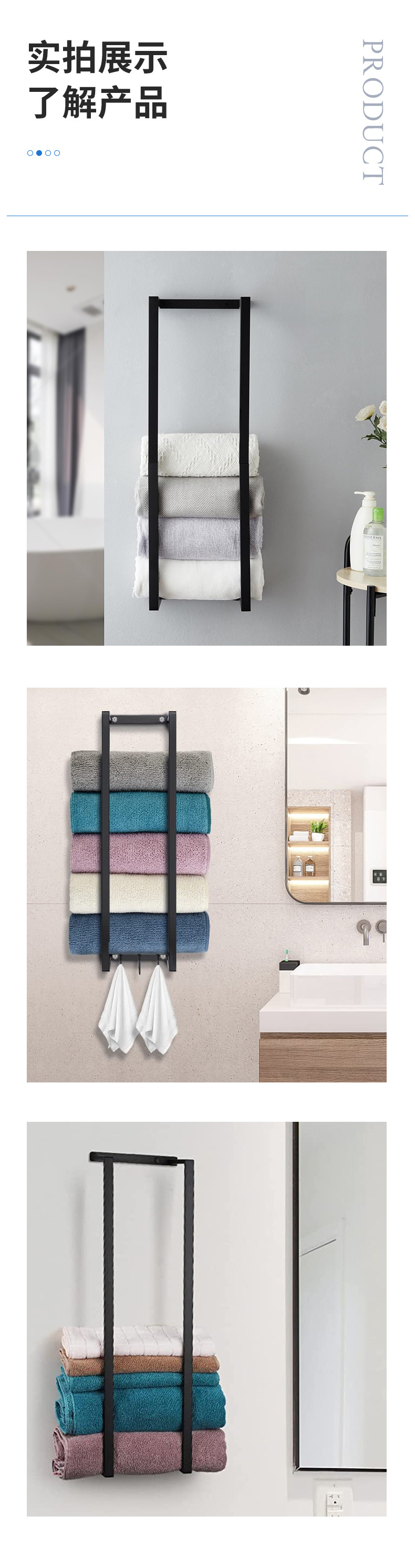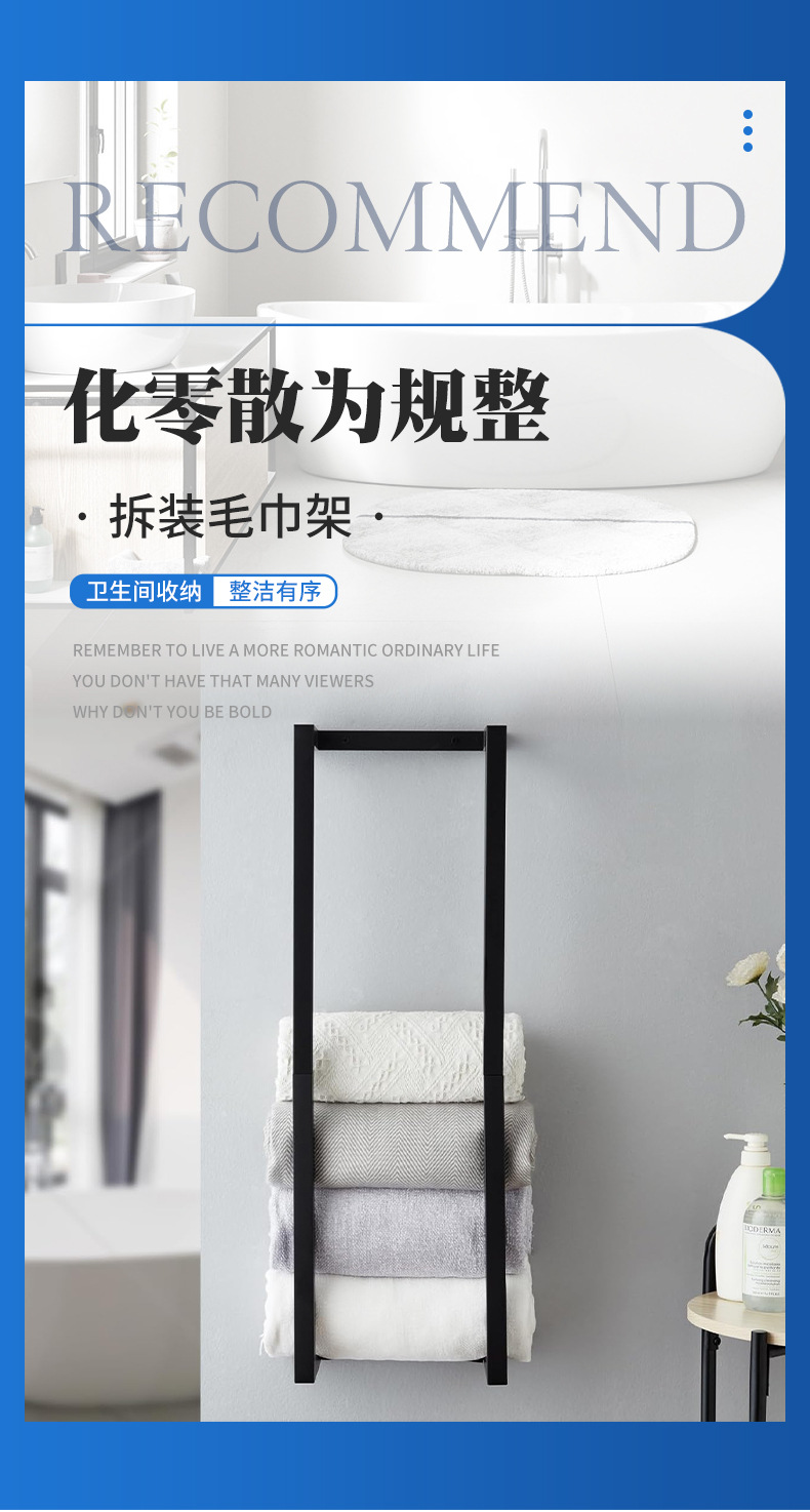 국경 벽에 장착 된 욕실 수건 랙 이동식 연철 화장실 욕실 벽 수건 보관 랙