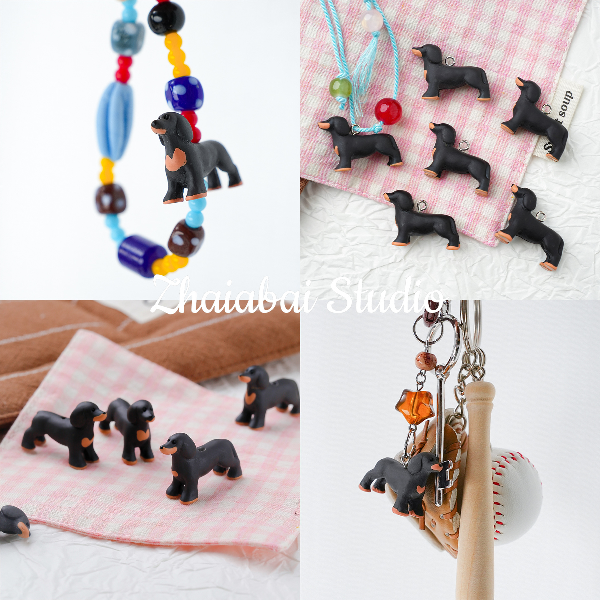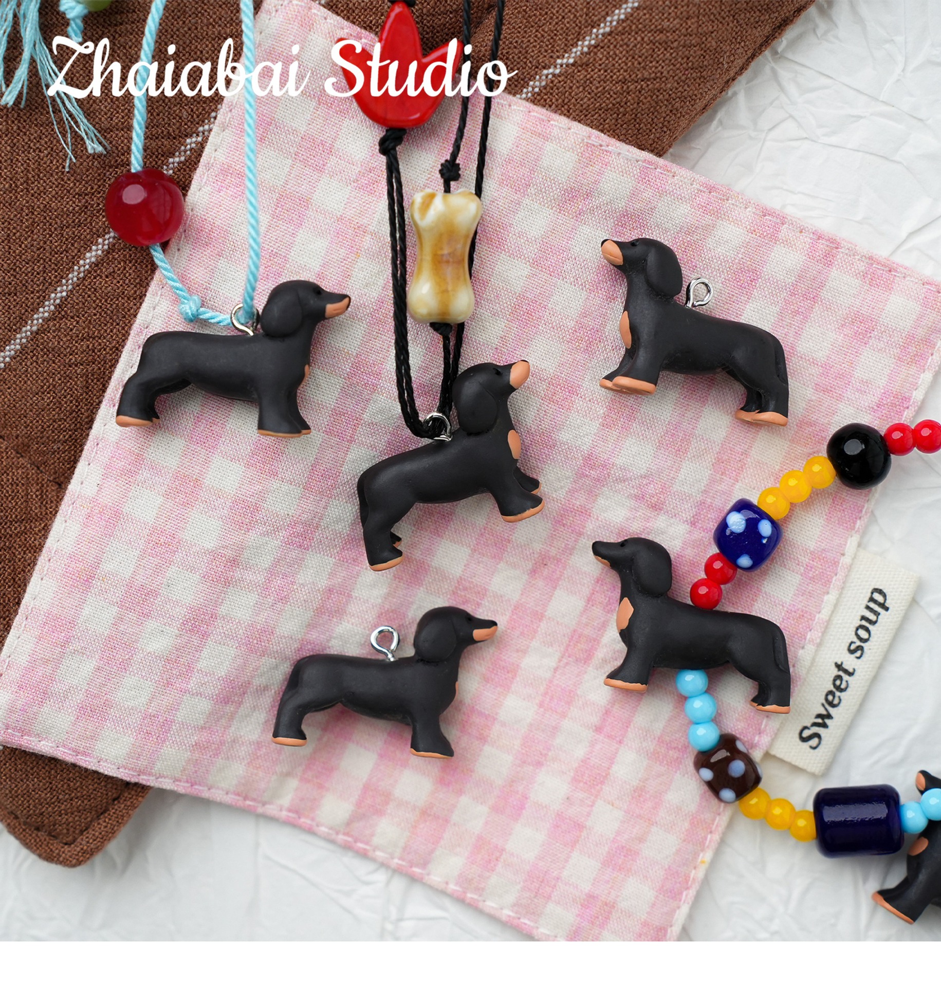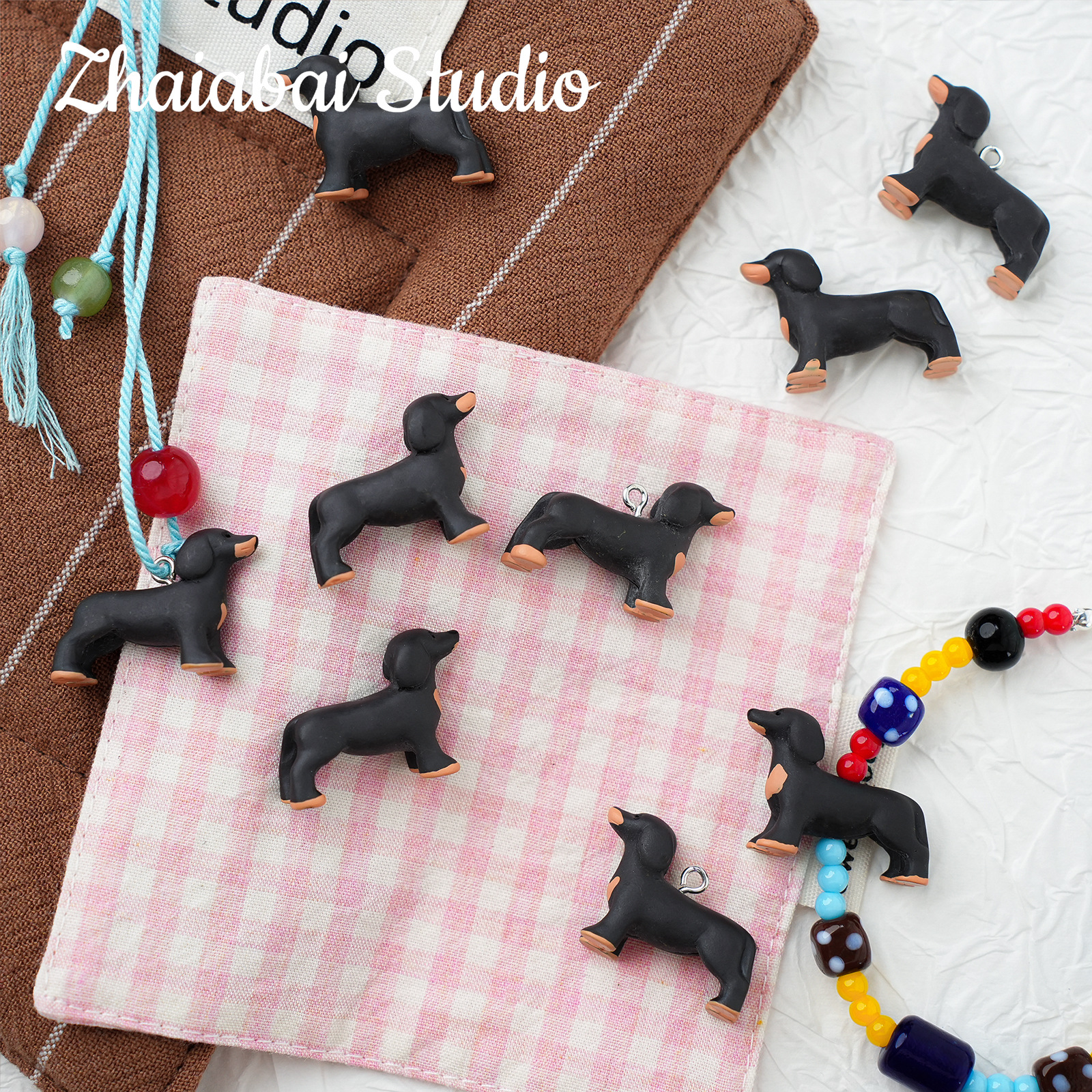 작은 빨간 책 같은 귀여운 닥스 훈트 구슬 펜던트 수제 DIY 목걸이 휴대 전화 체인 팔찌 구슬