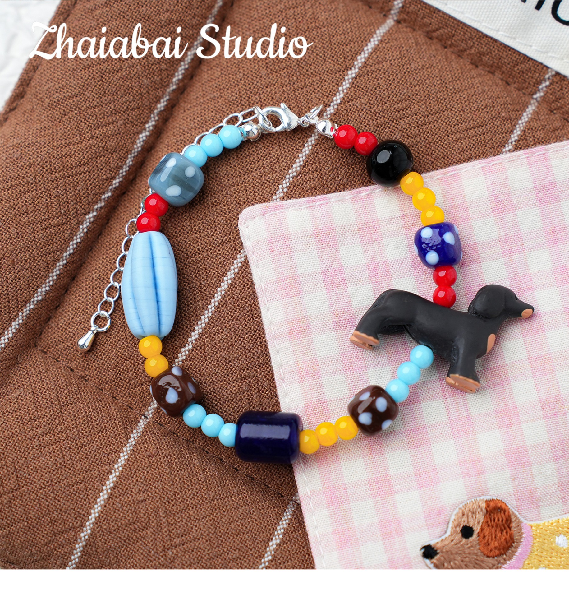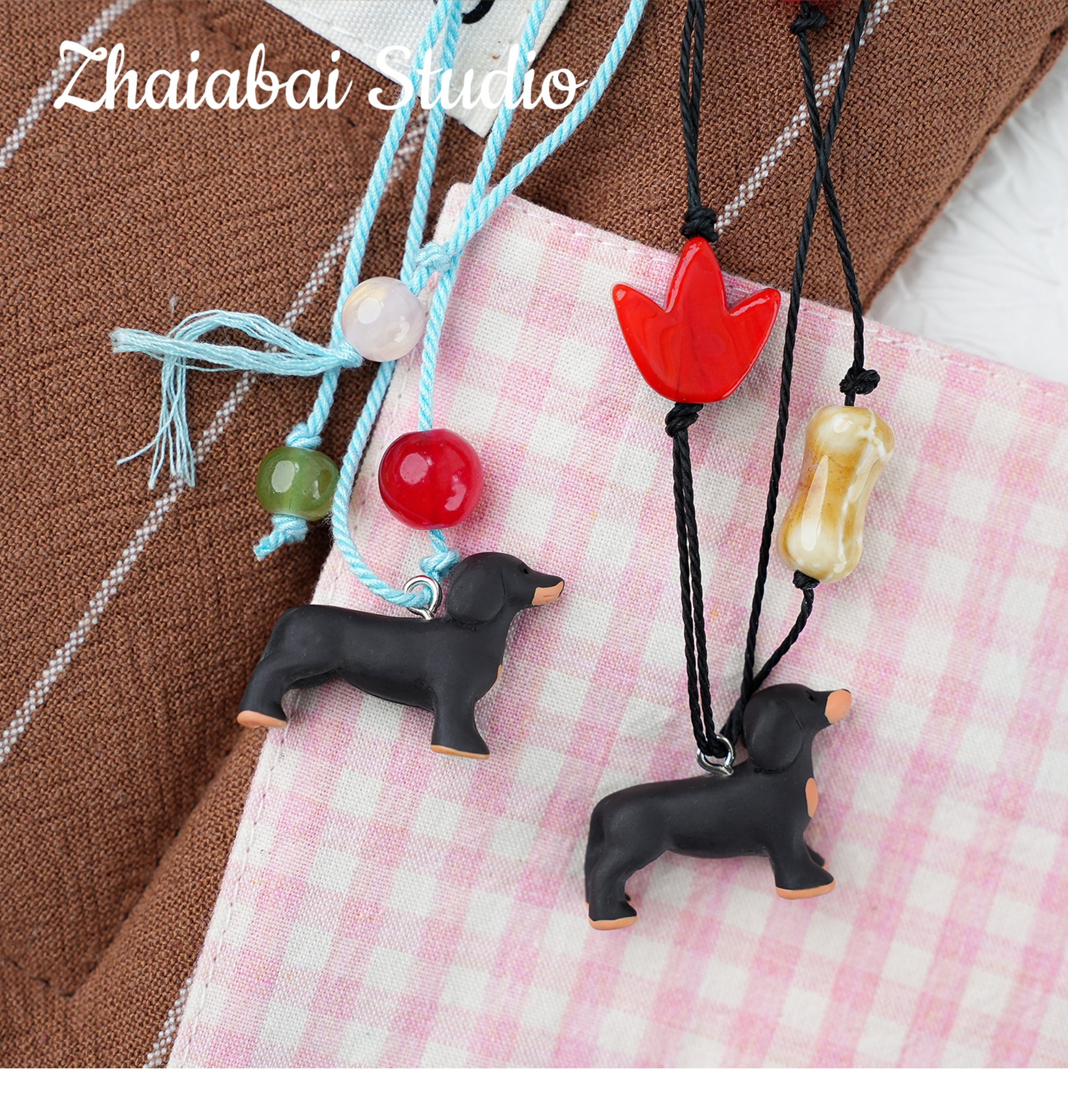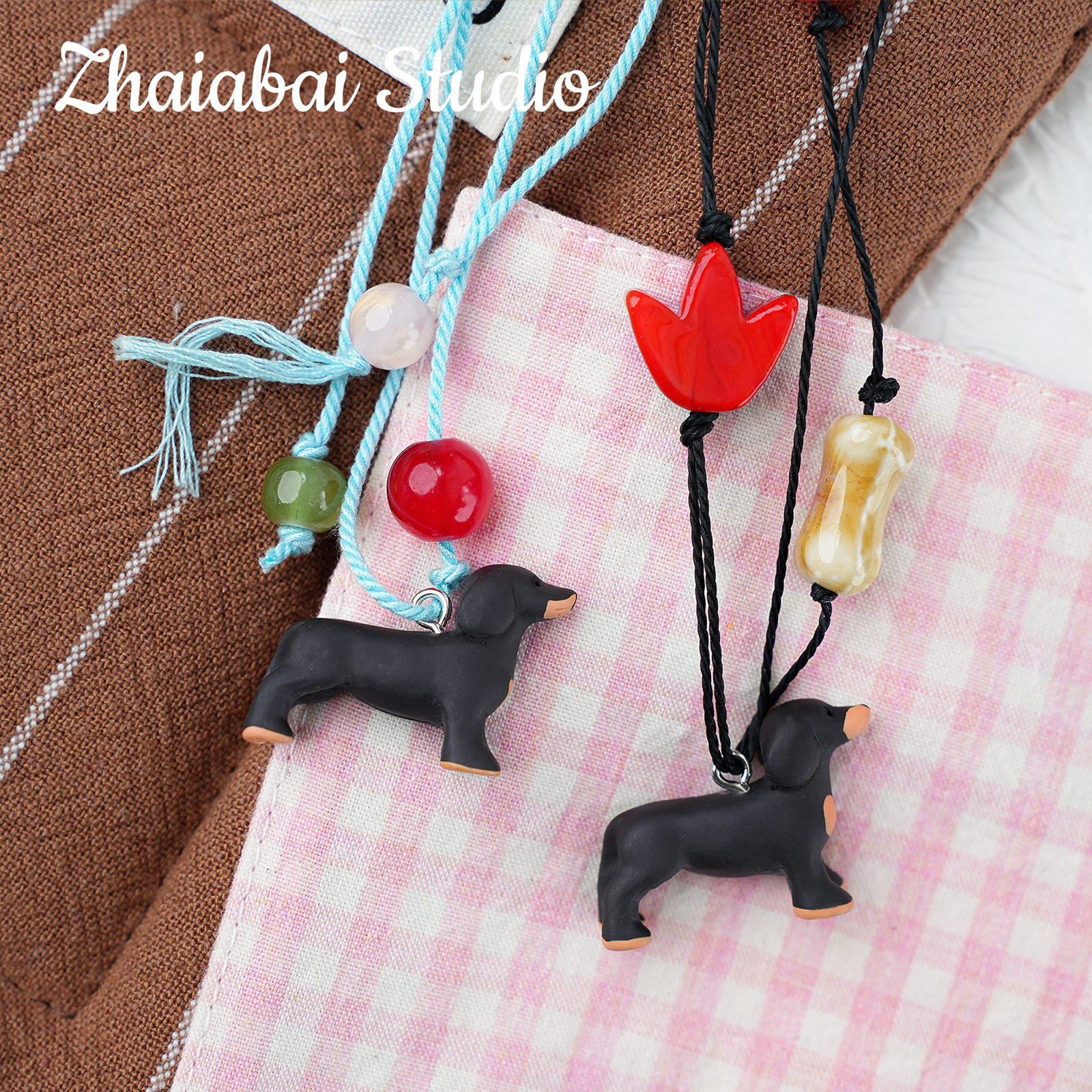작은 빨간 책 같은 귀여운 닥스 훈트 구슬 펜던트 수제 DIY 목걸이 휴대 전화 체인 팔찌 구슬