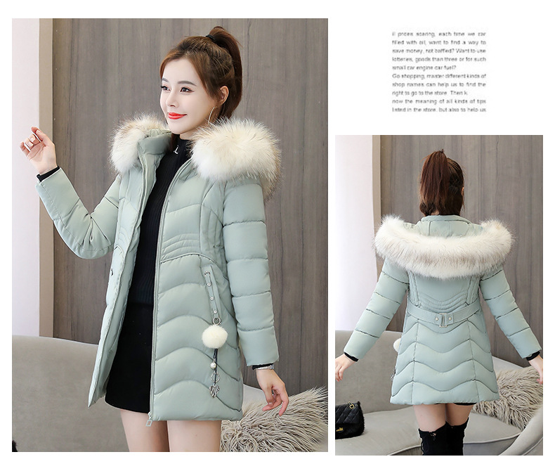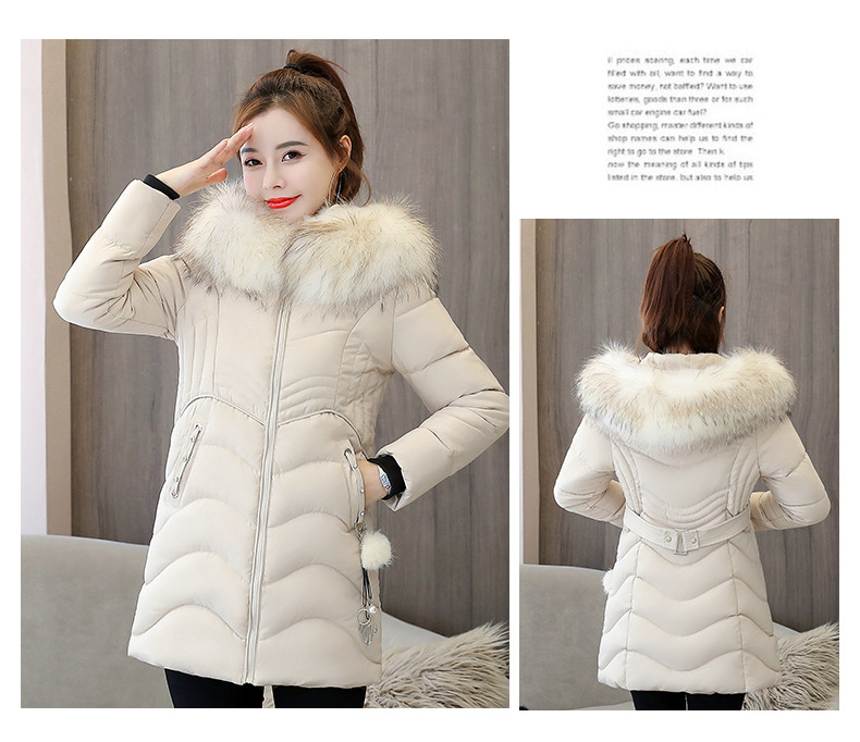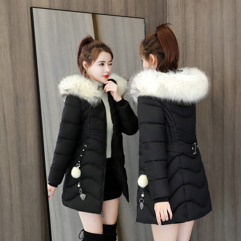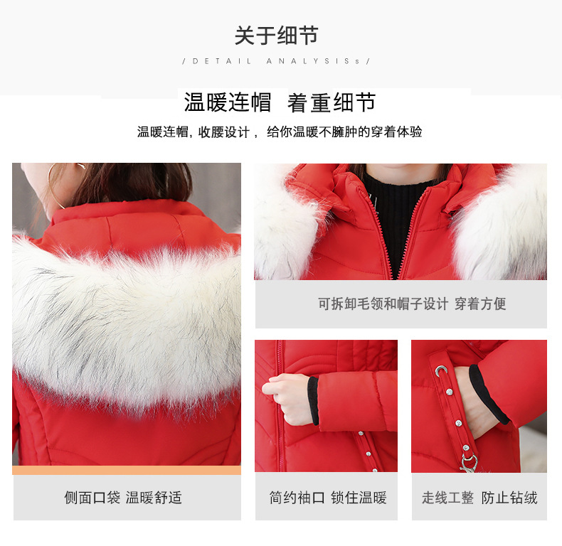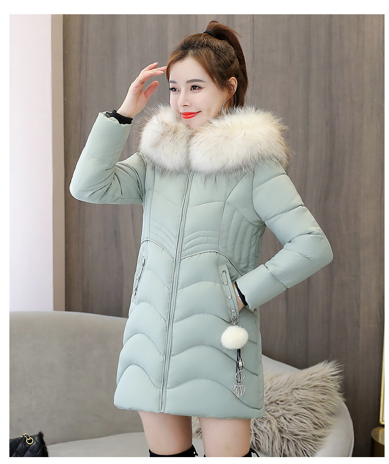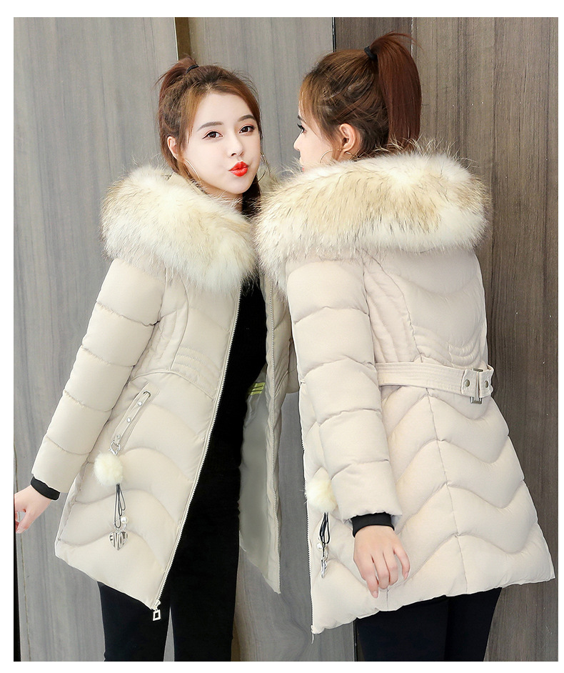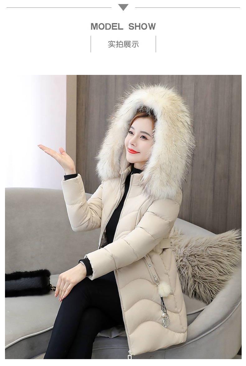 다운 코튼 패딩면 패딩 재킷 여성의 중간 길이 2025 겨울 새로운 한국 스타일 슬림 핏 두꺼운 대형 모피 칼라면 패딩 재킷