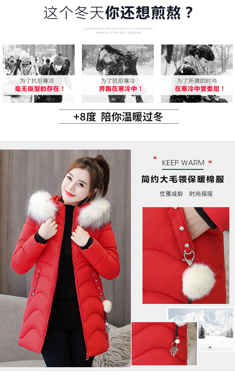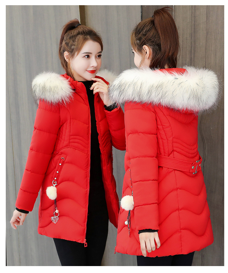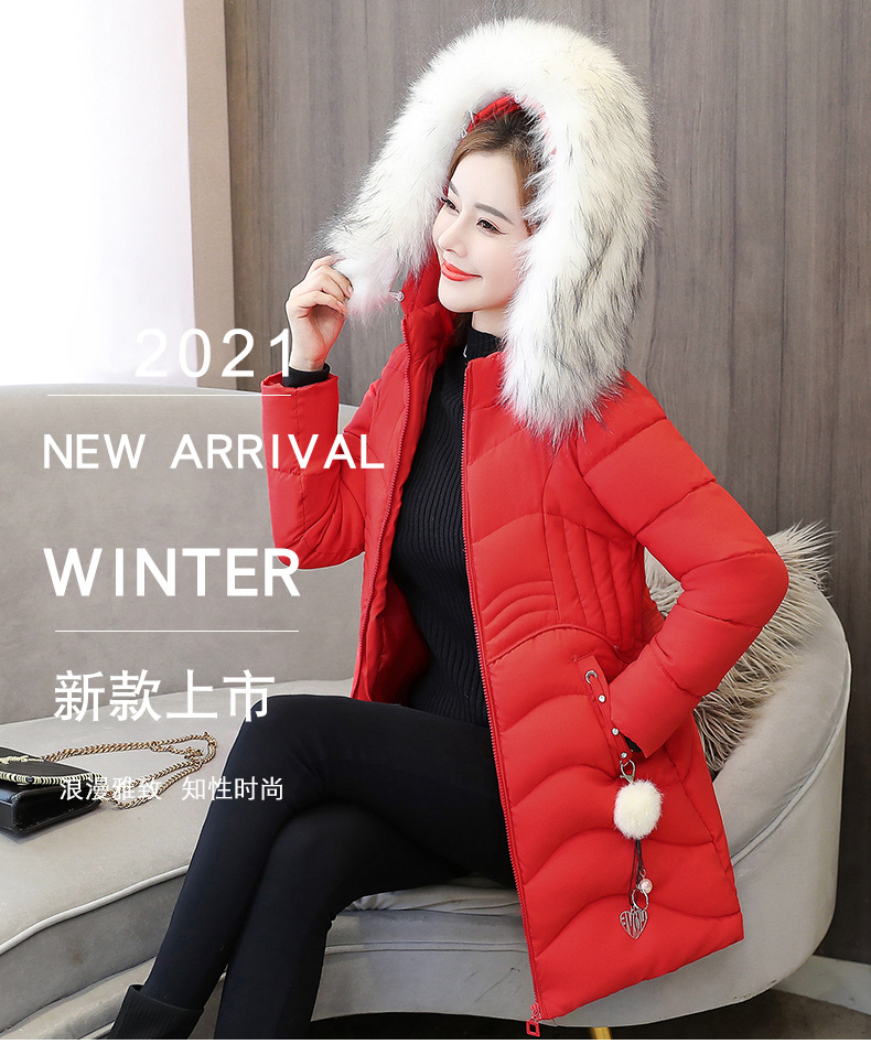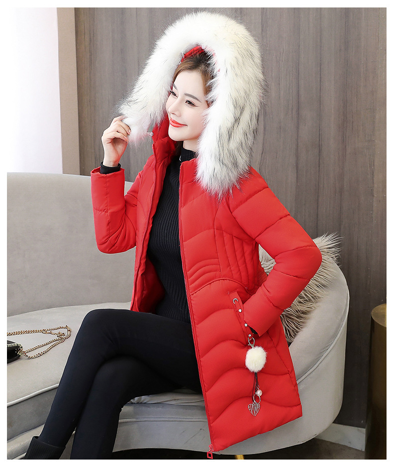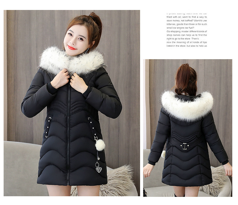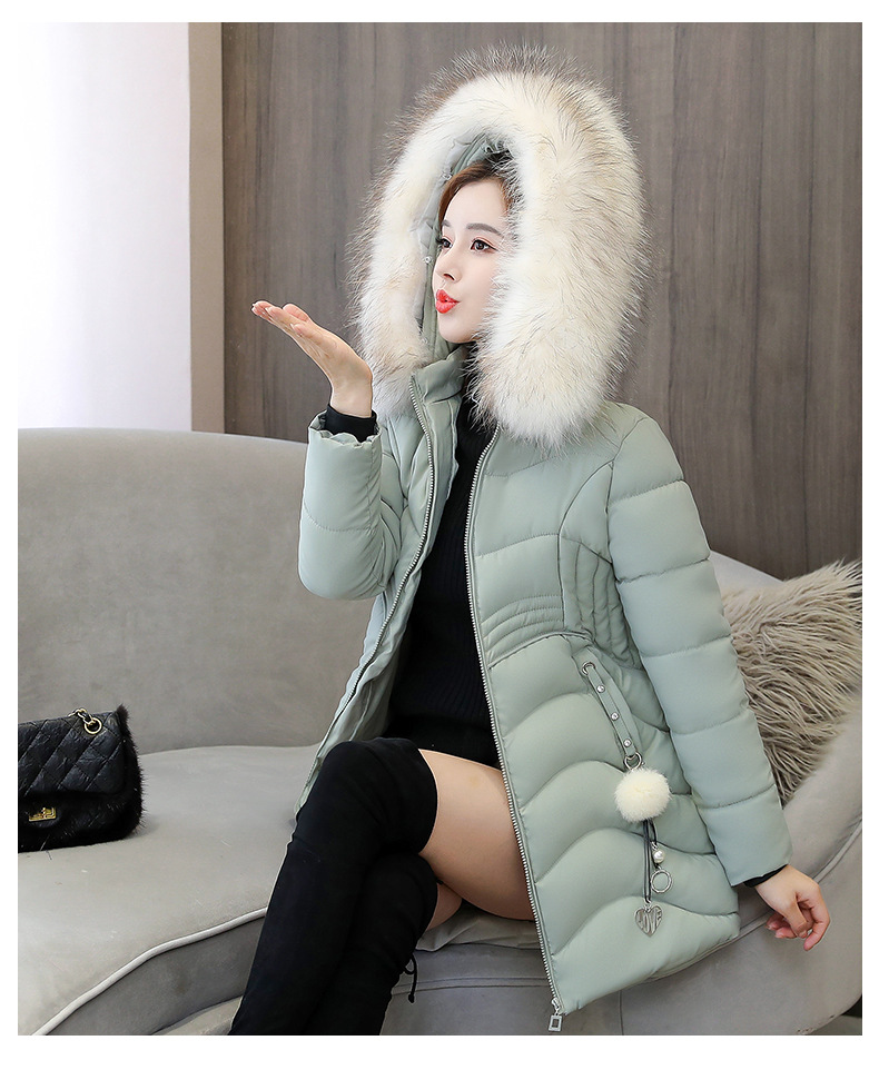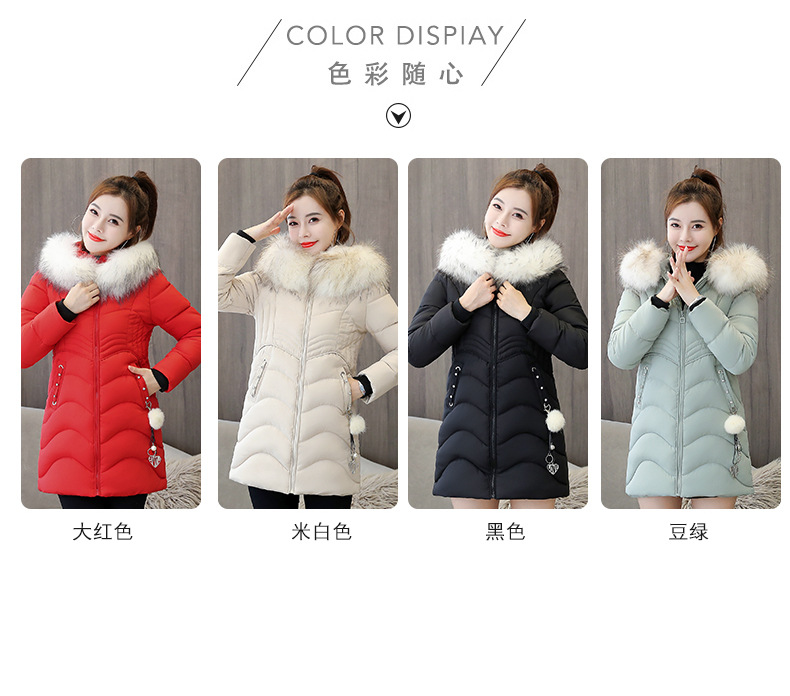다운 코튼 패딩면 패딩 재킷 여성의 중간 길이 2025 겨울 새로운 한국 스타일 슬림 핏 두꺼운 대형 모피 칼라면 패딩 재킷