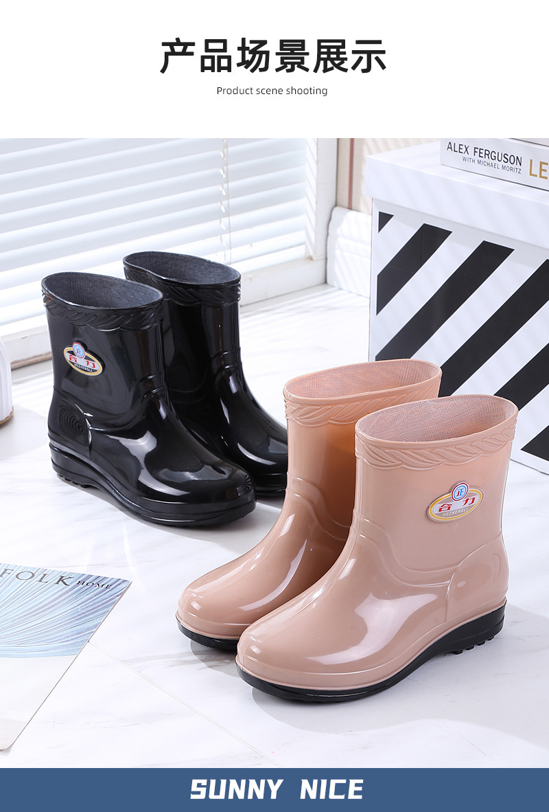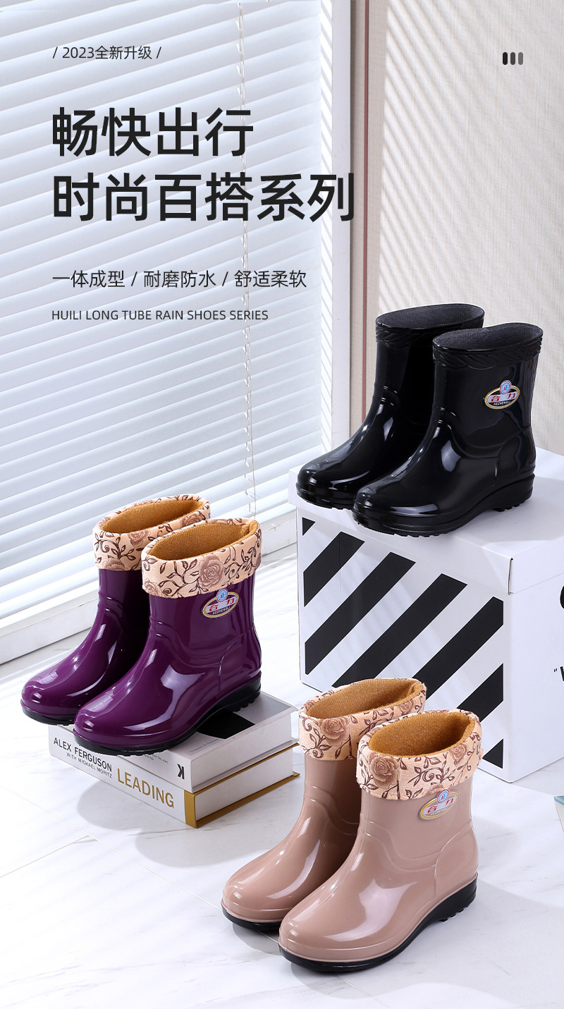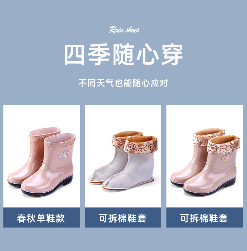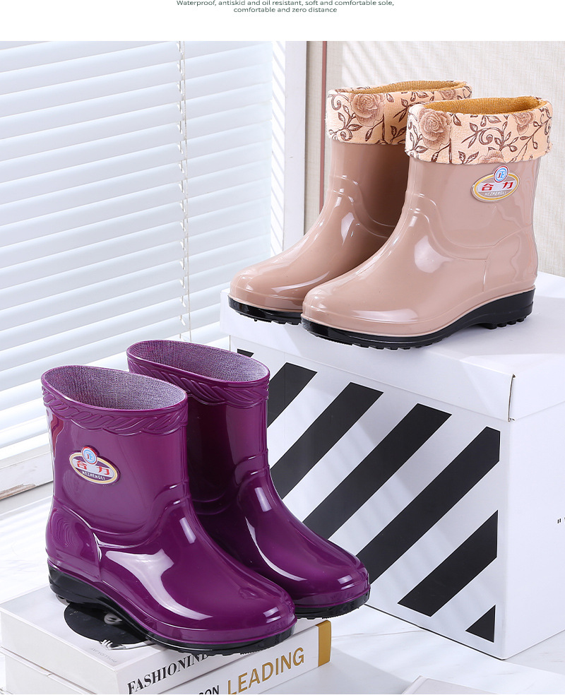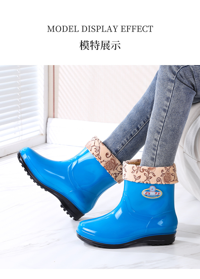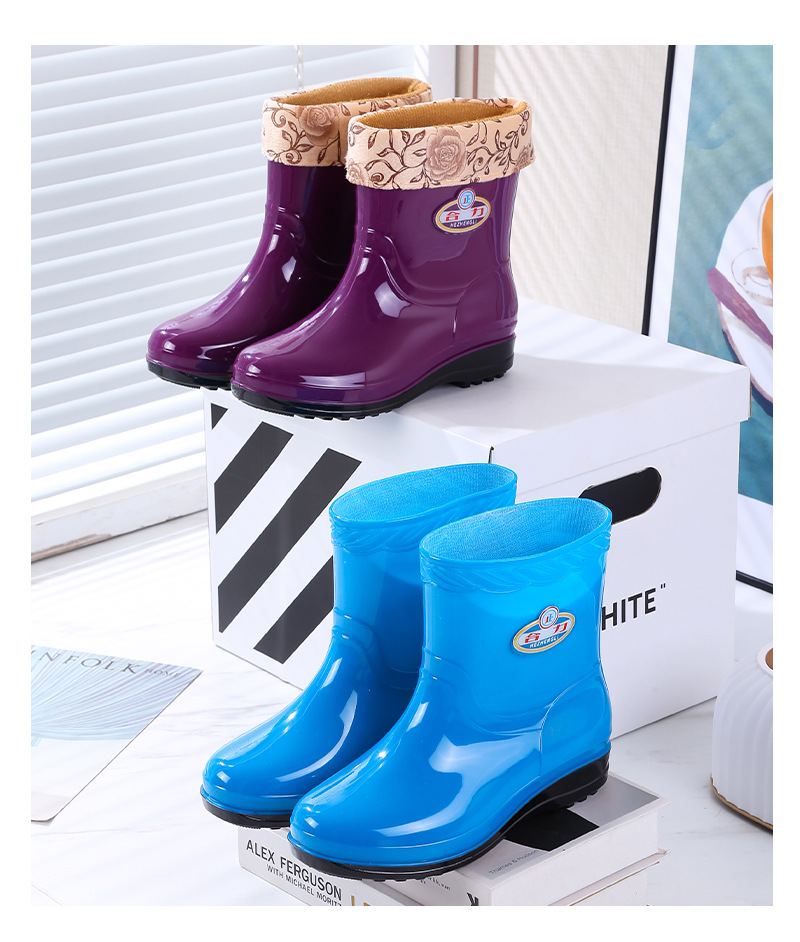 새로운 여성 장화 기모 따뜻한 미끄럼 방지 워터 슈즈 패션 성인 장화 내마모성 워터 부츠 주방 고무 신발