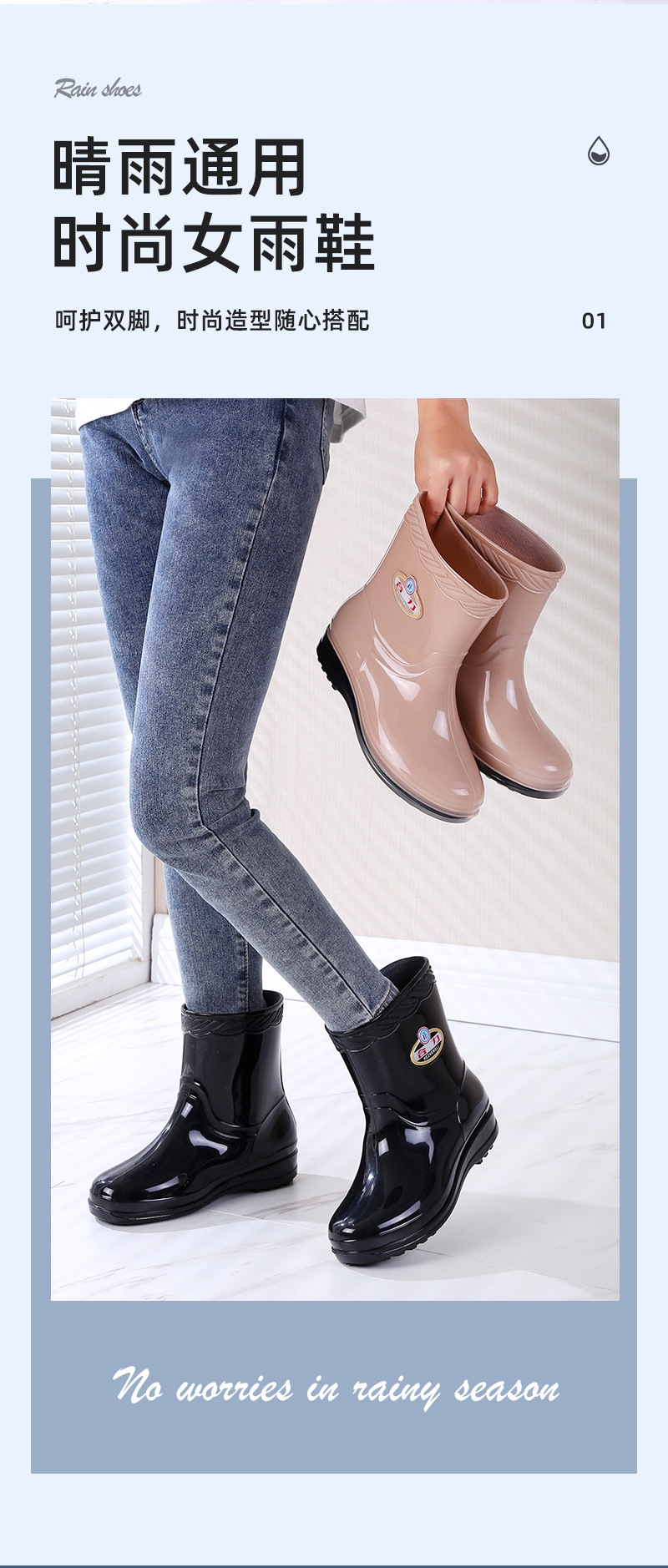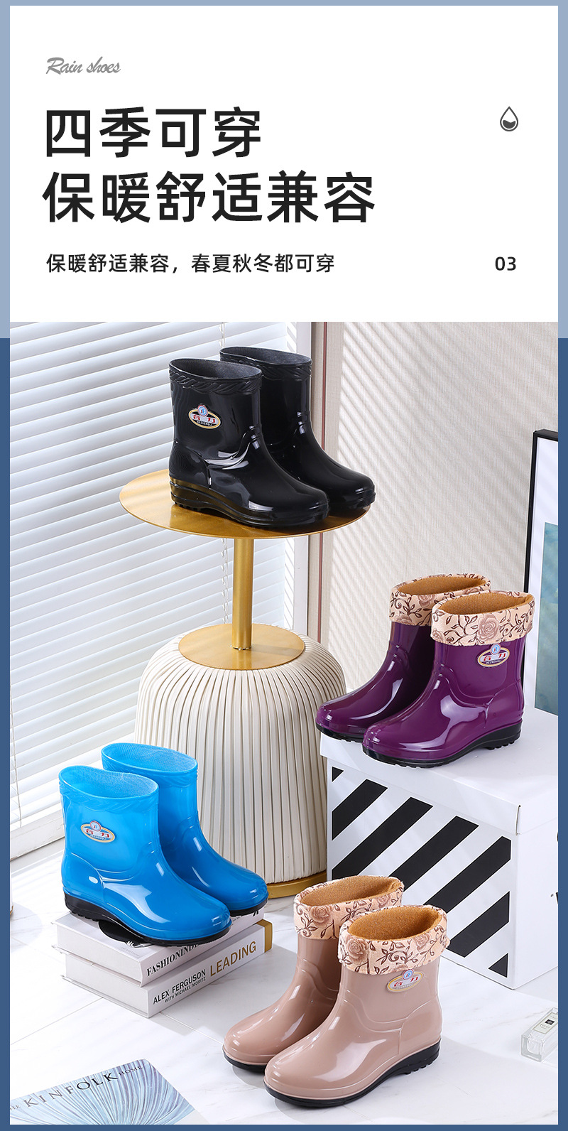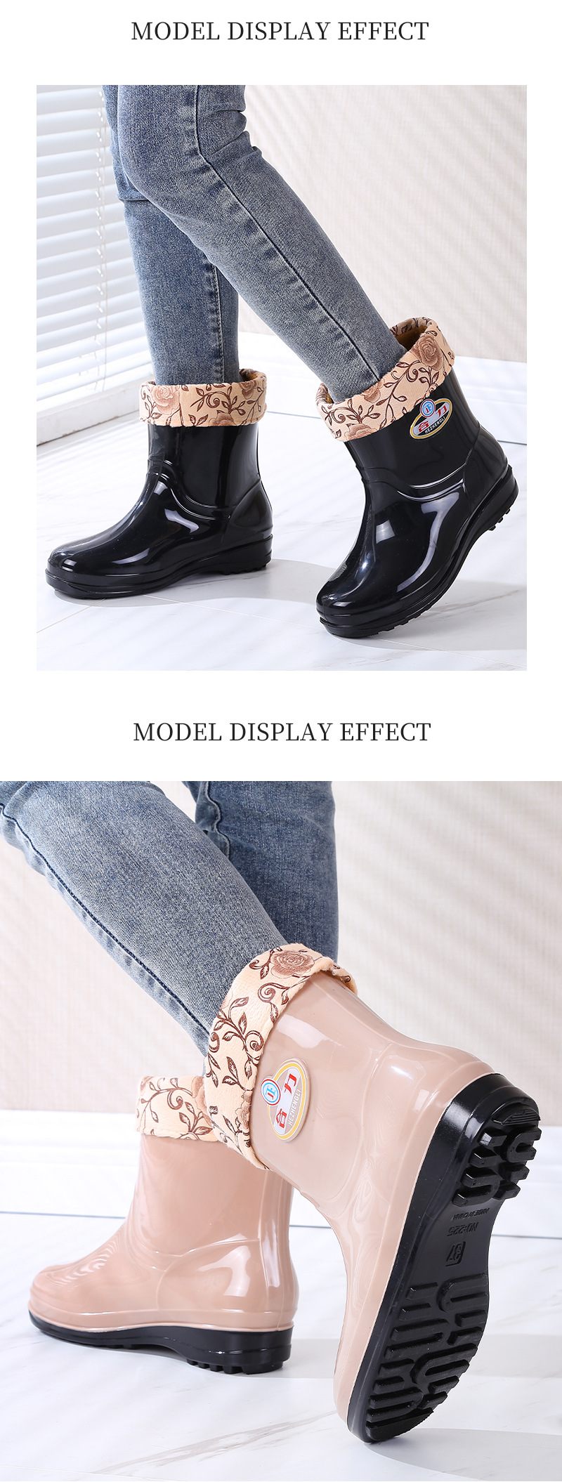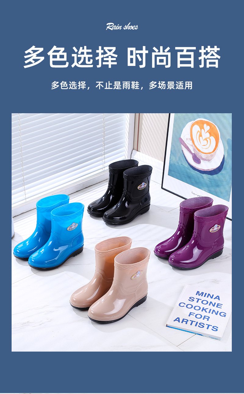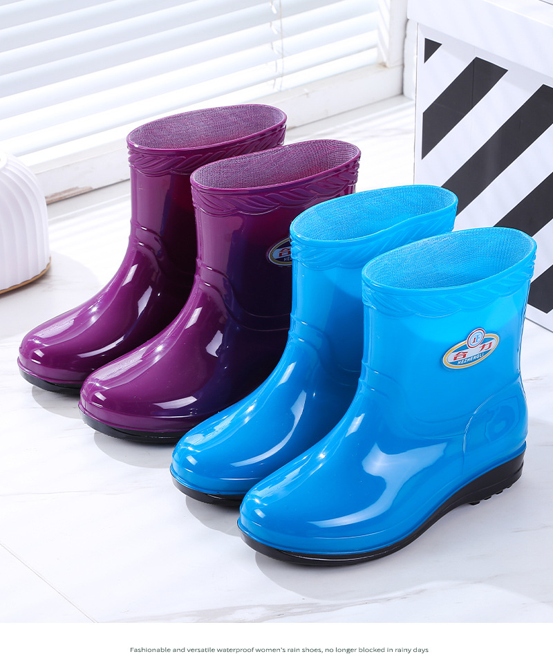 새로운 여성 장화 기모 따뜻한 미끄럼 방지 워터 슈즈 패션 성인 장화 내마모성 워터 부츠 주방 고무 신발