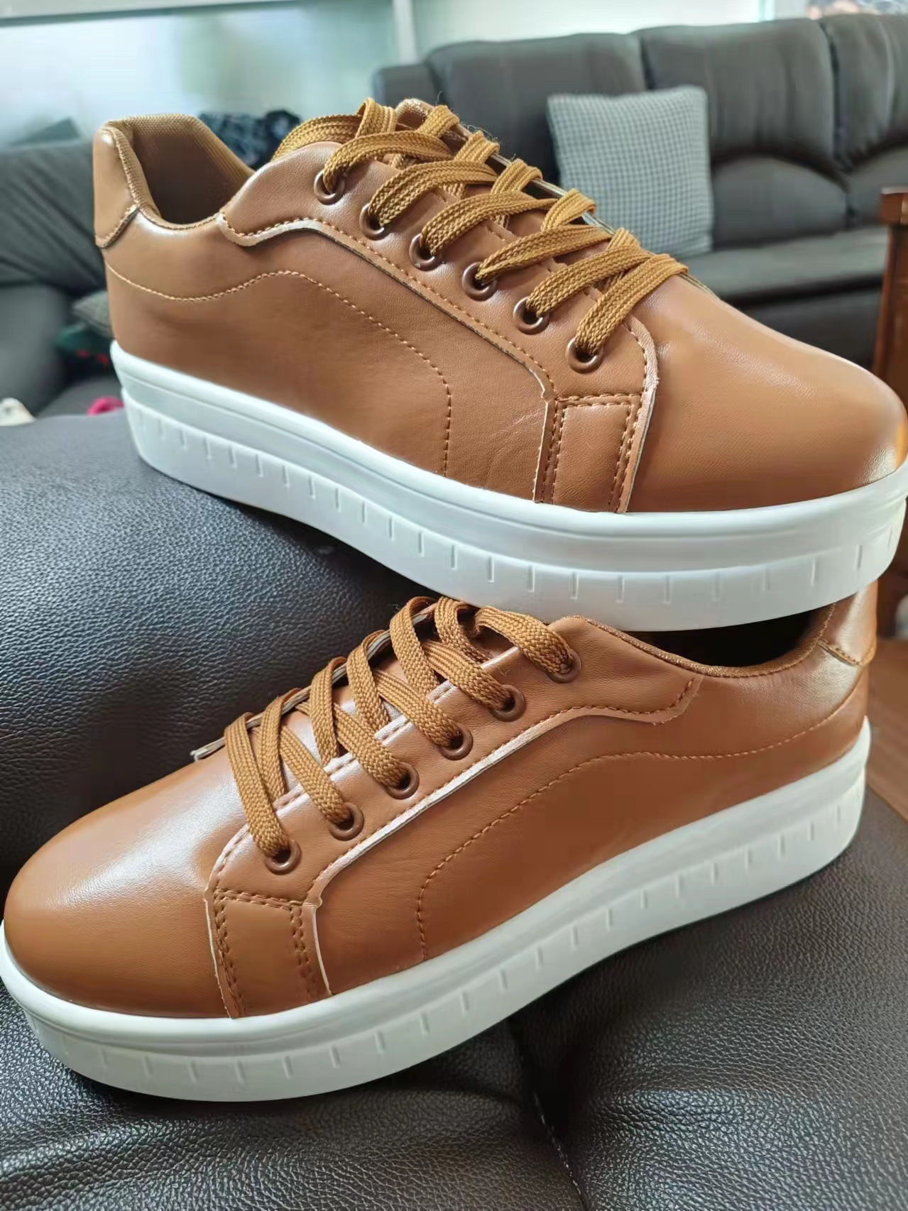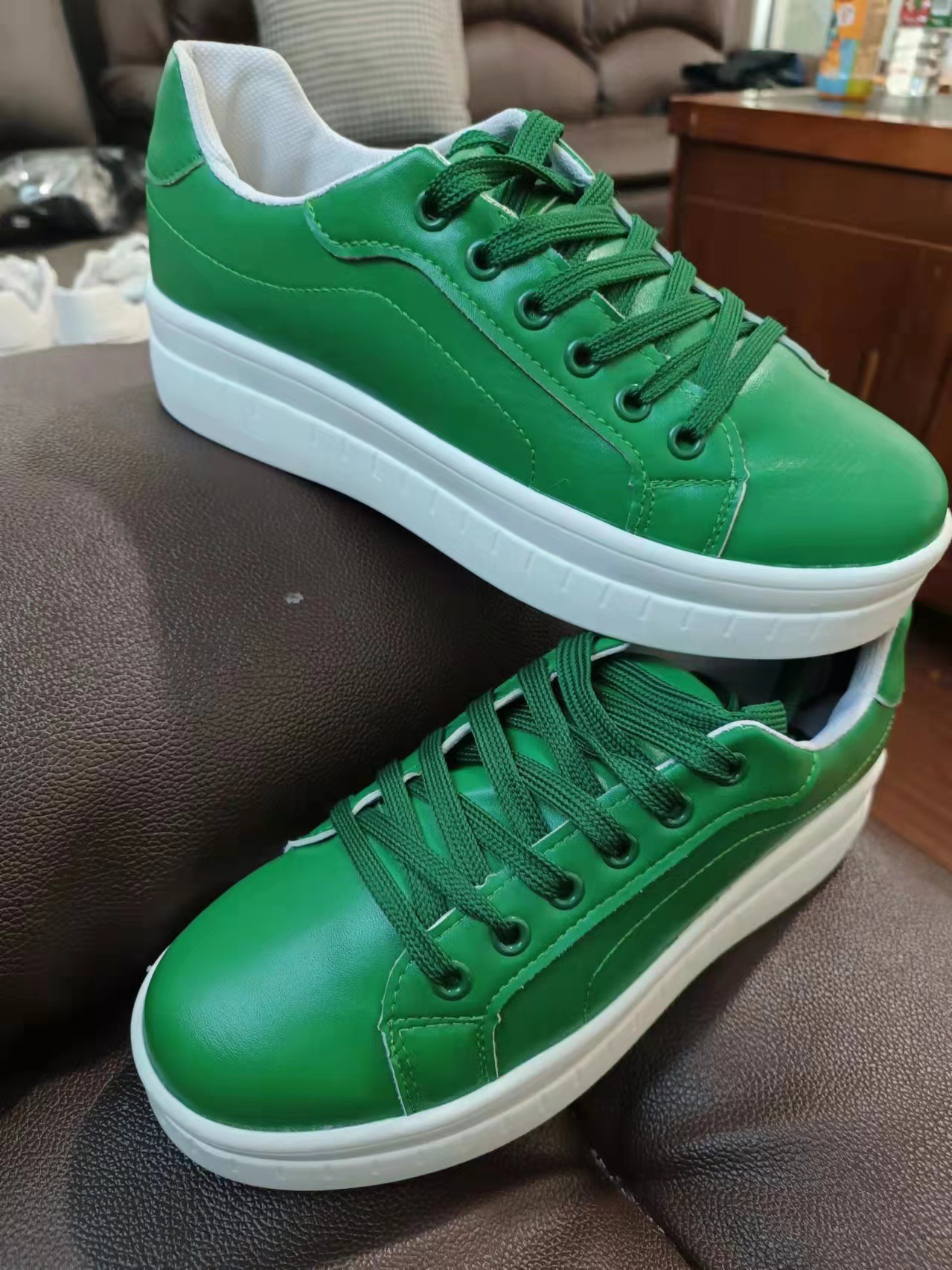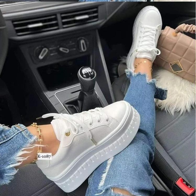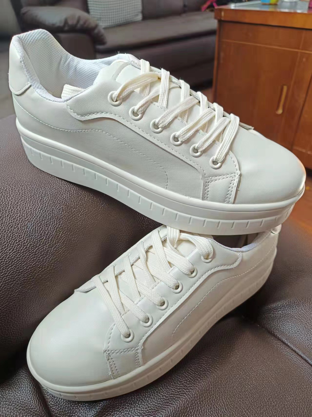 유럽과 미국의 대외 무역 새로운 스타일의 두꺼운 밑창 대형 레이스 업 흰색 신발 여성용 플랫폼 밑창 스포츠 스타일 솔리드 컬러 운동화 사이즈 43
