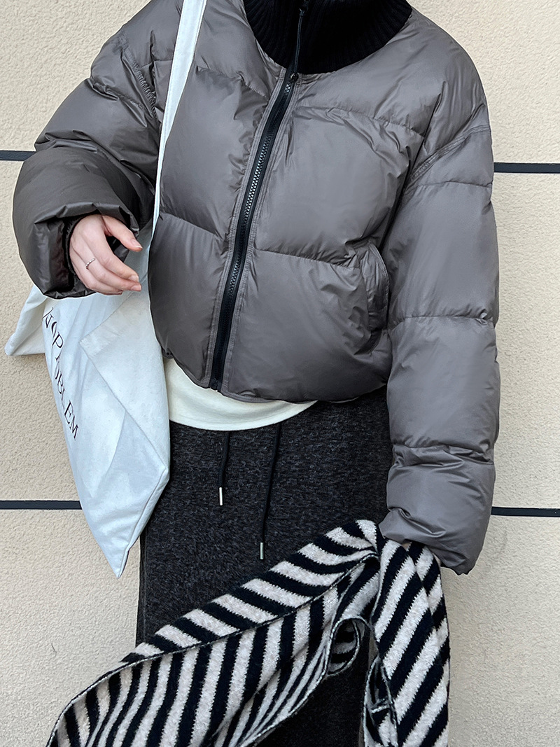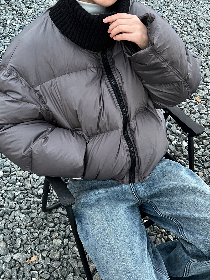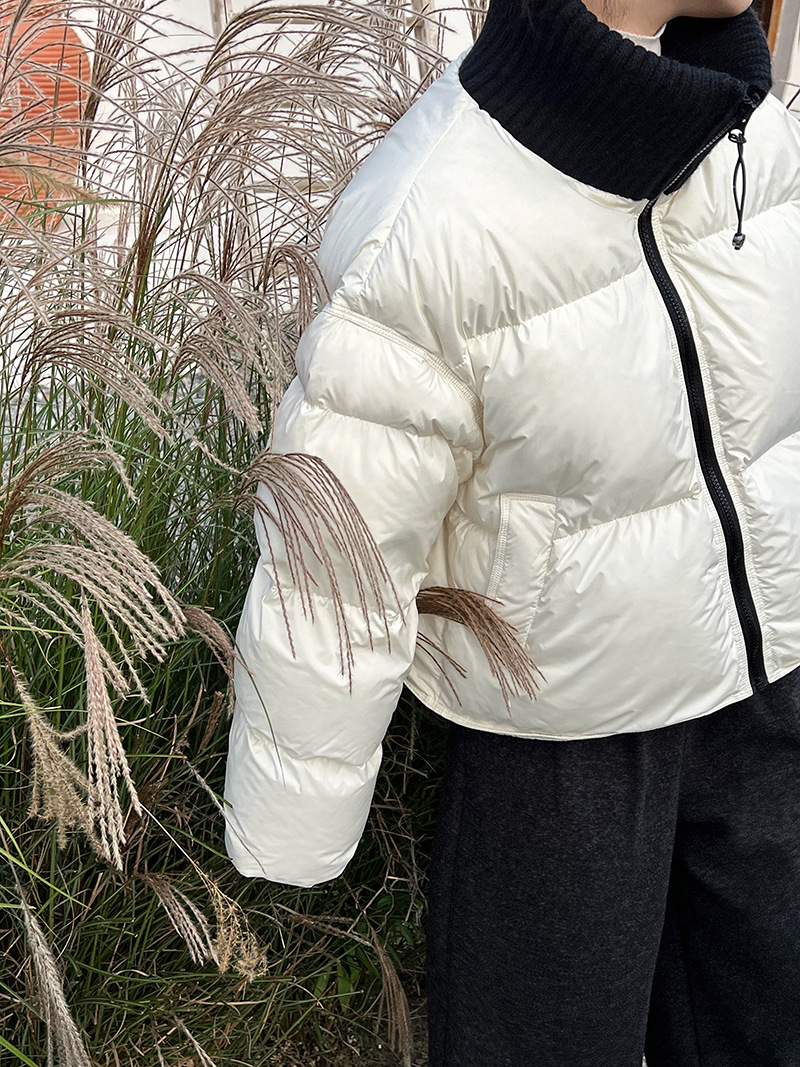 룩시 코리안 스타일 니트 스티칭 하프 하이 칼라 쇼트 다운 재킷 여자 겨울 뉴 화이트 덕 다운 두꺼운 재킷 Y73