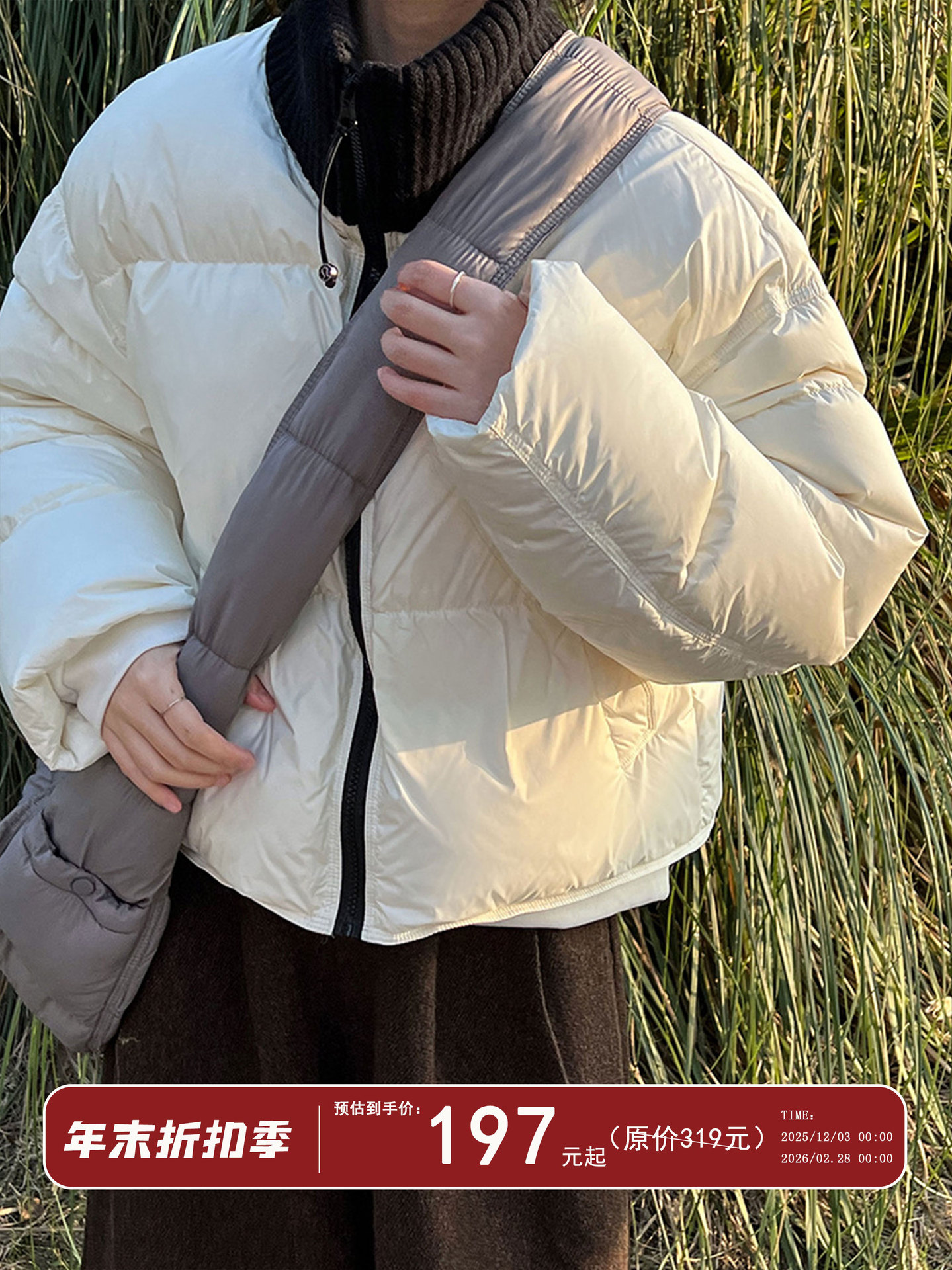 针织拼接羽绒服白色正反面