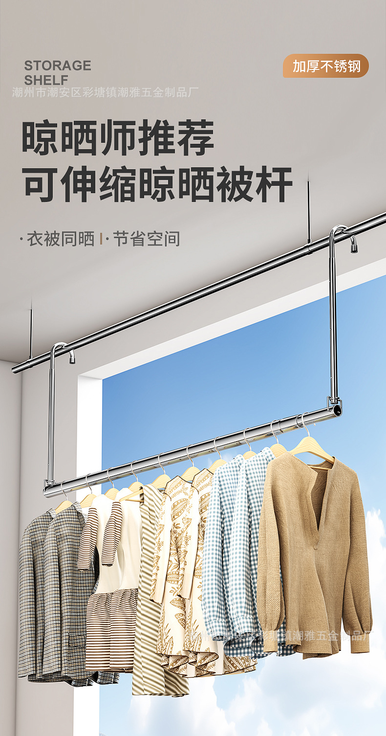 Telescopic Clothes Drying Rack / Retractable Laundry RodFor Home Balcony / Indoor & Outdoor UseLifting / Hanging TypeClothes Pole / Laundry BarStainless Steel No Drilling Required / Drill-Free / Easy InstallationQuilt Drying Rack / Heavy Duty for Comforters ราวตากผ้าสแตนเลสแบบยืดได้ ติดผนังไม่ต้องเจาะผนัง สำหรับตากผ้าห่ม ระเบียงบ้านGiá phơi quần áo inox treo tường không cần khoan, chuyên dụng phơi chăn màn cho ban công