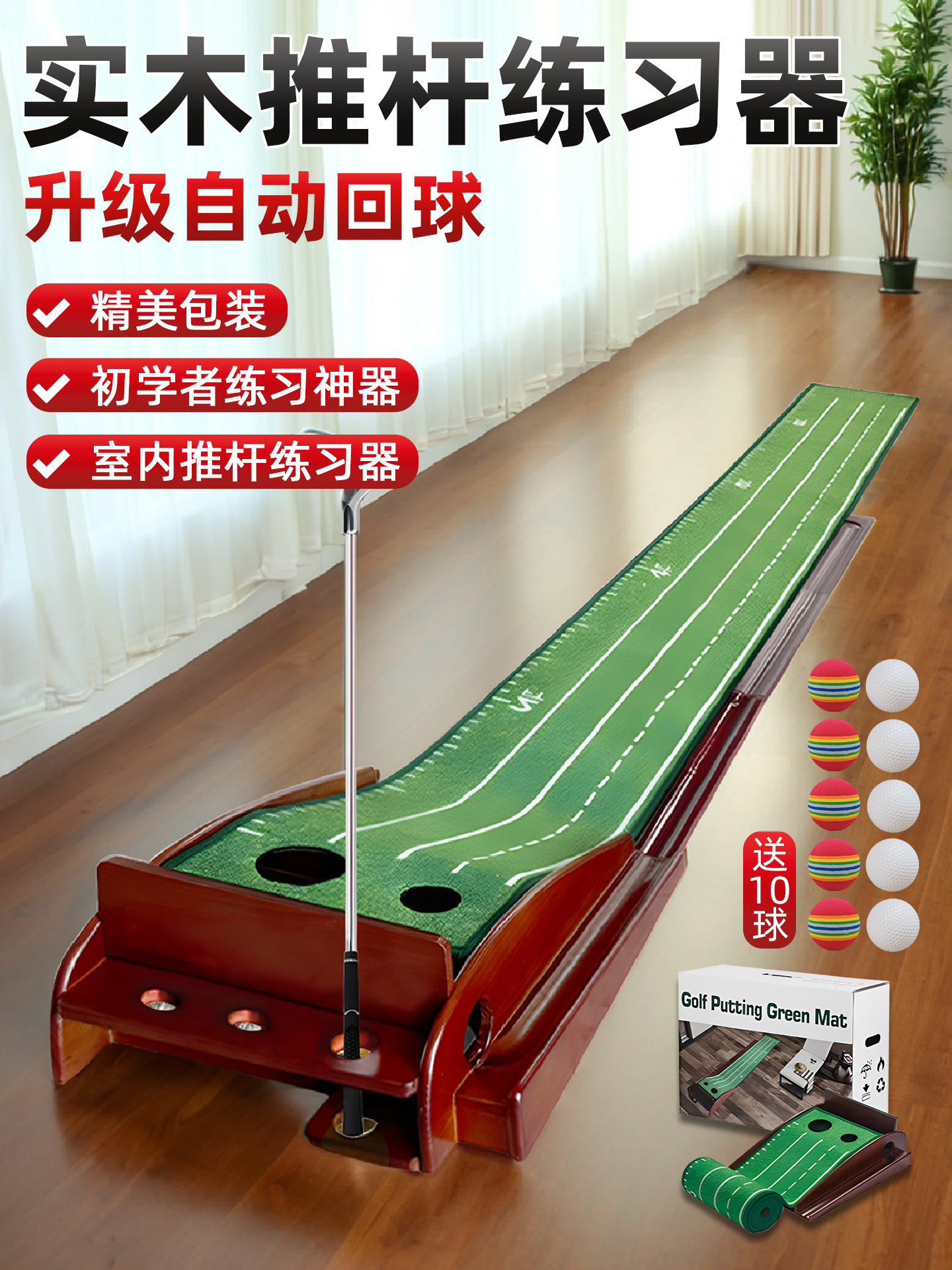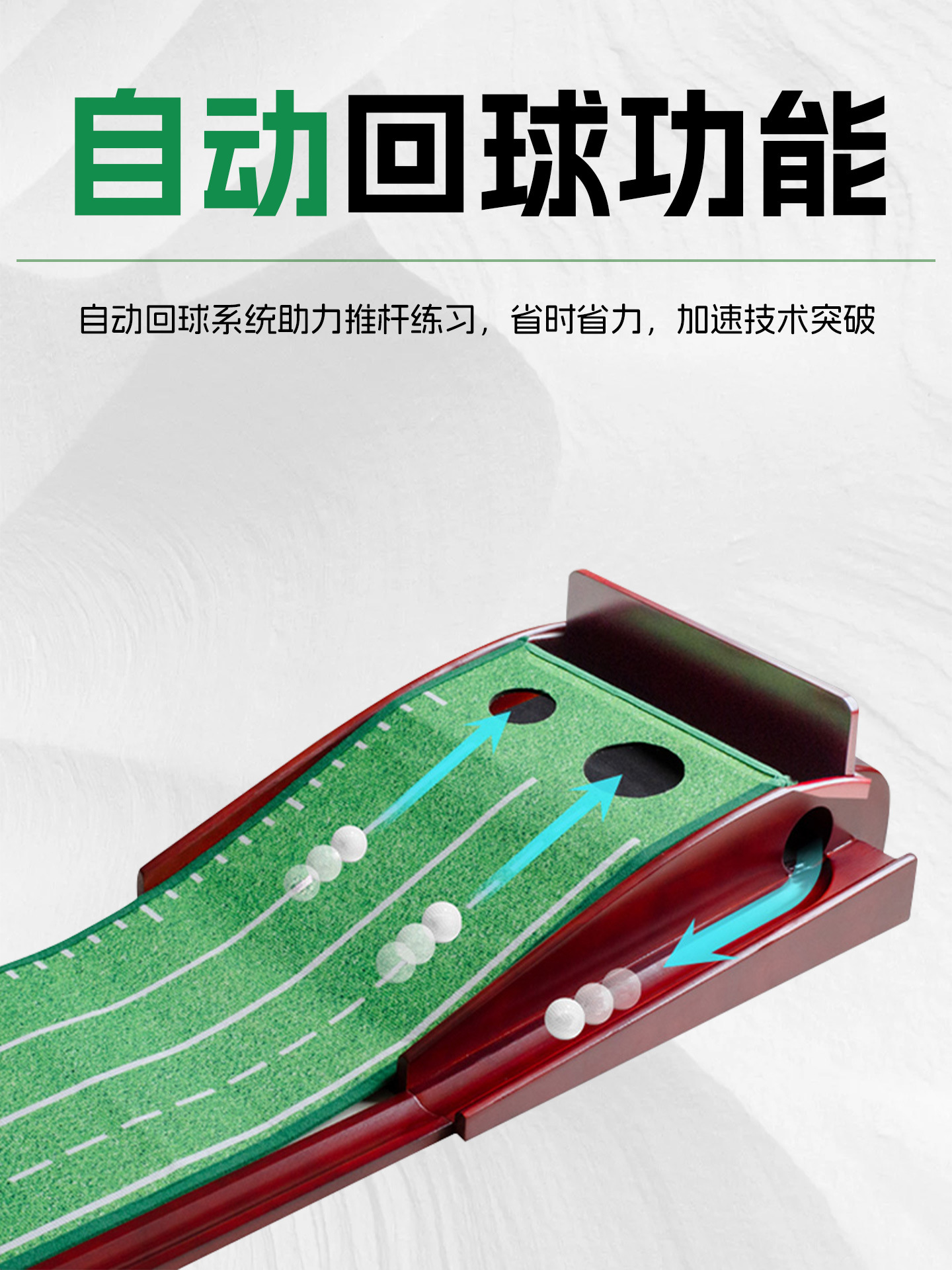 实木高尔夫球推杆练习器室内草坪训练模拟器带回球道练习毯垫用品跨境电商 室内高尔夫球推杆练习器塑料轨道 儿童绒布地毯推杆用品