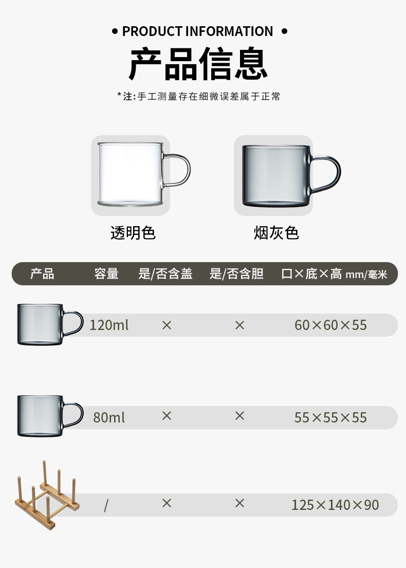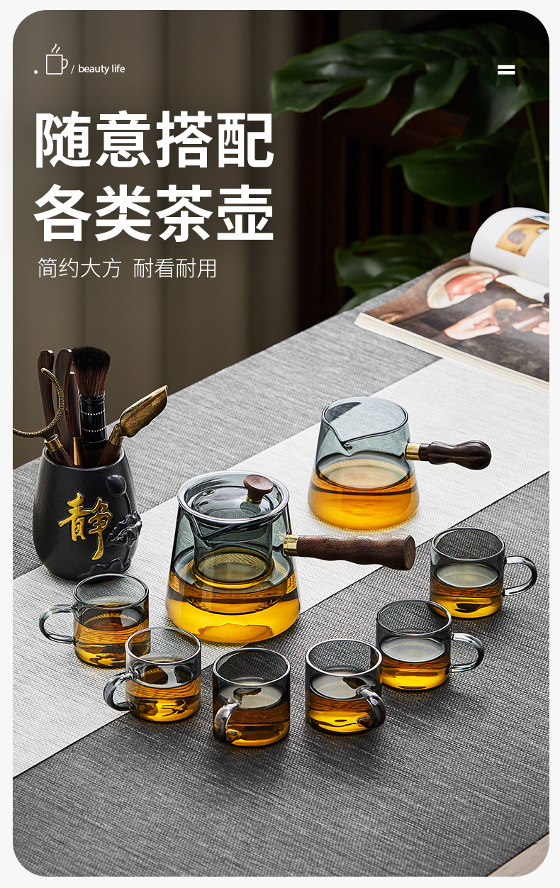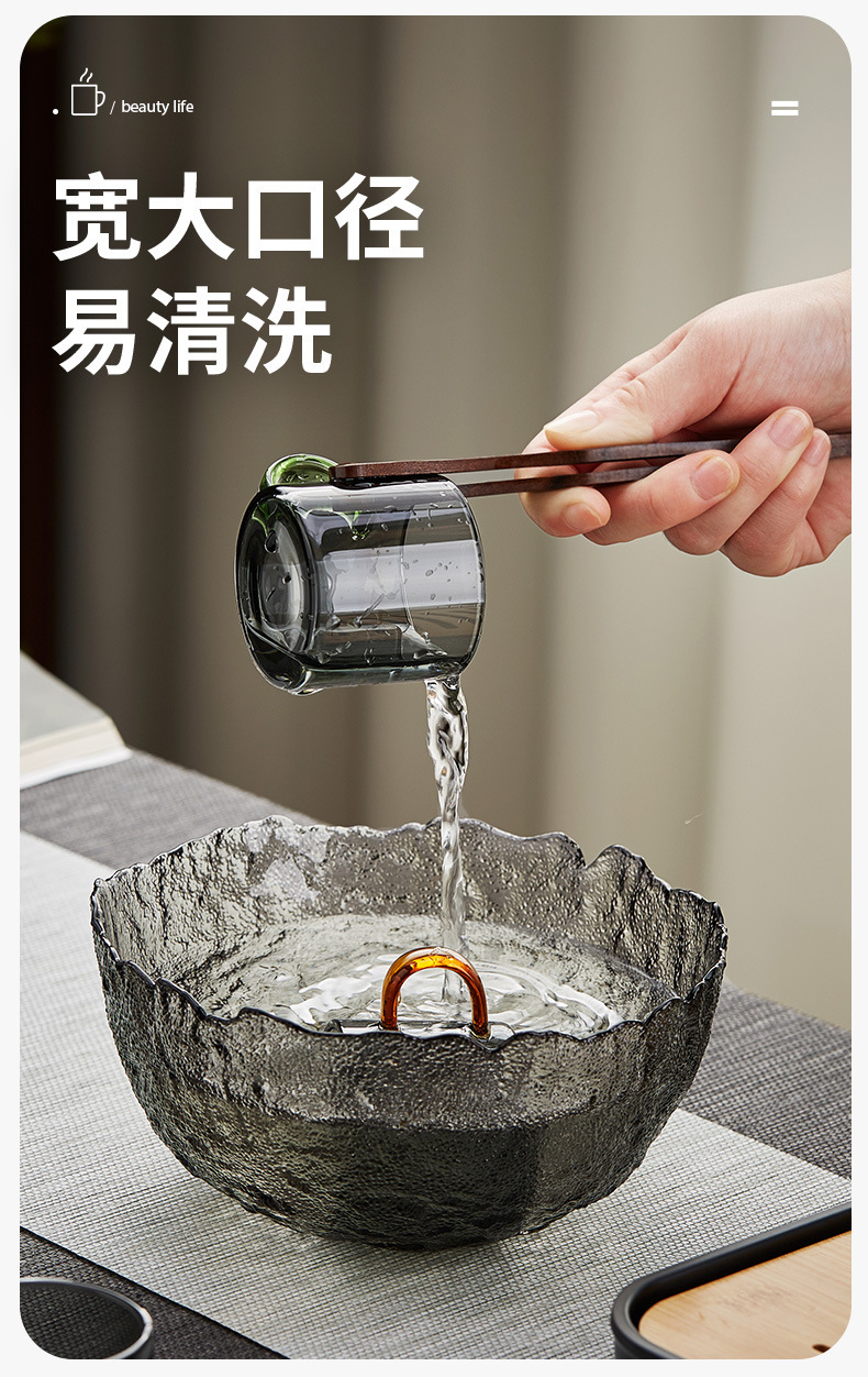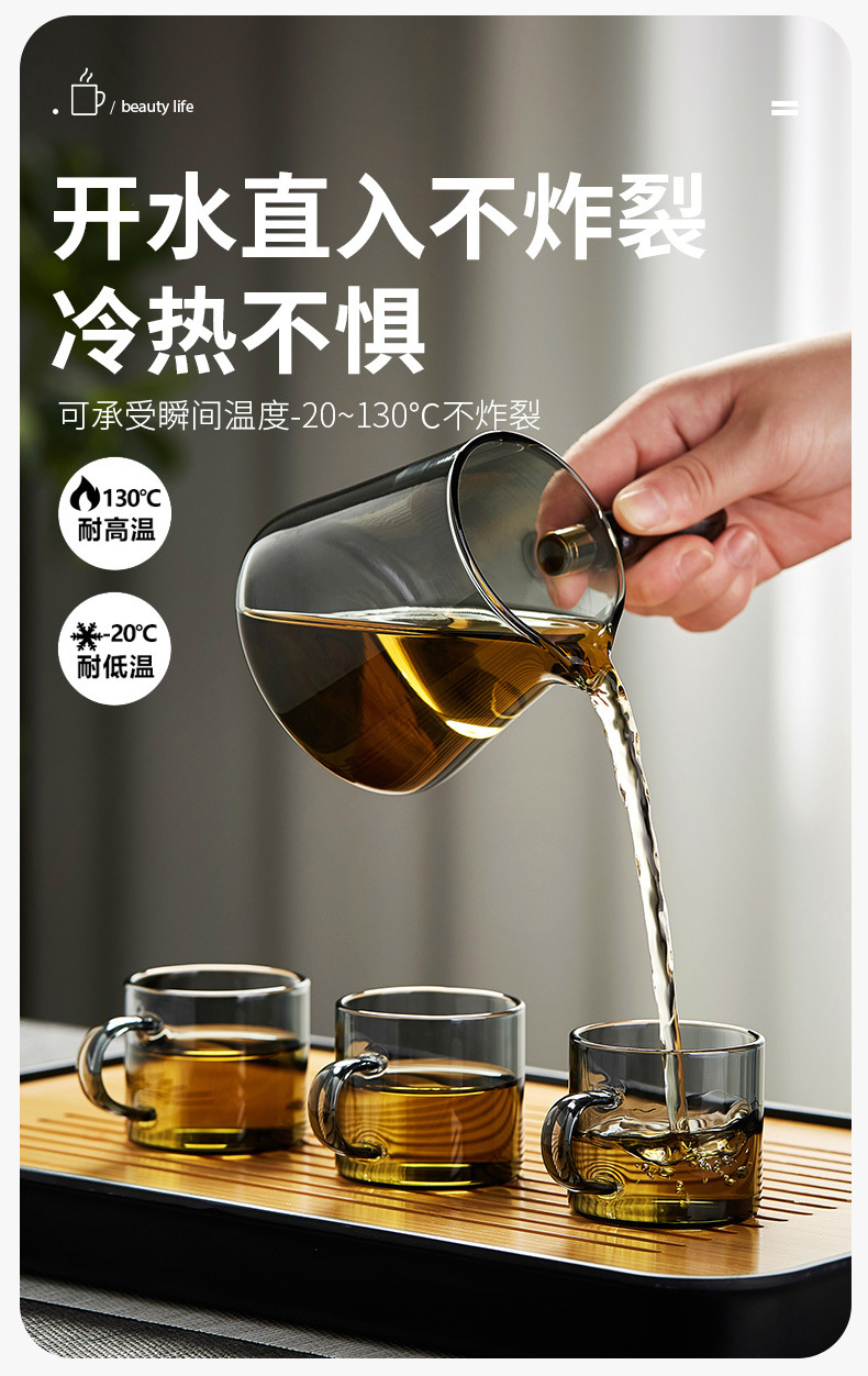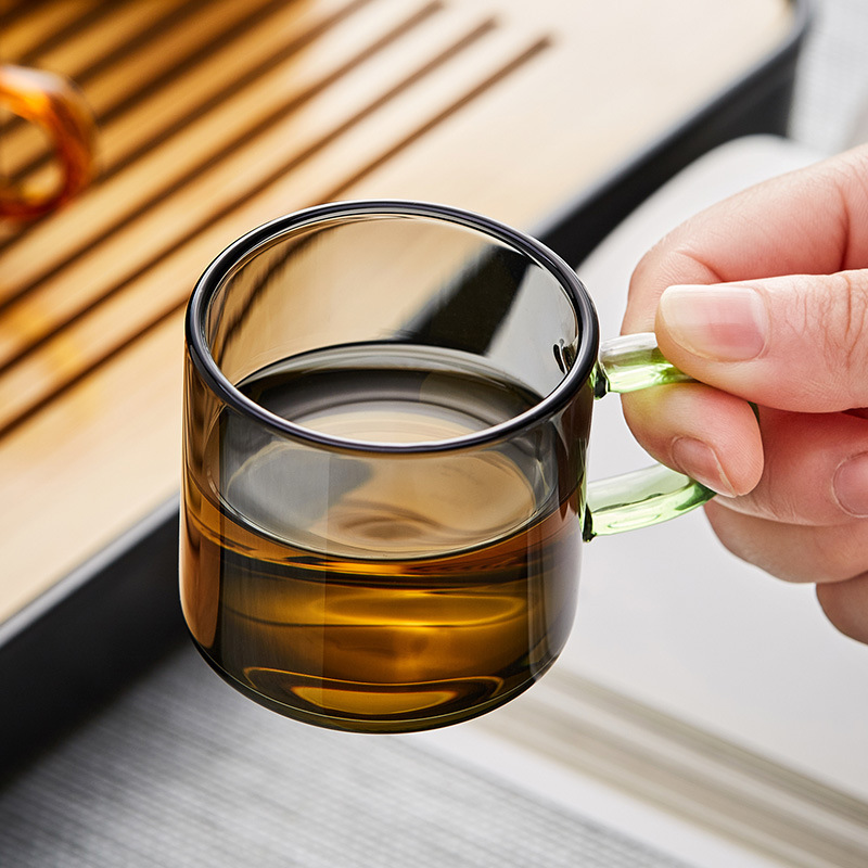 작은 유리 차 컵 가벼운 럭셔리 연기 회색 작은 컵 차 그릇 가정용 내열성 쿵푸 차 세트 차 컵 세트 차
