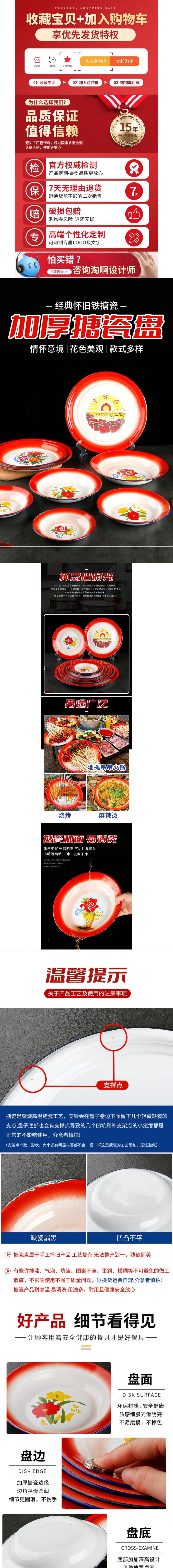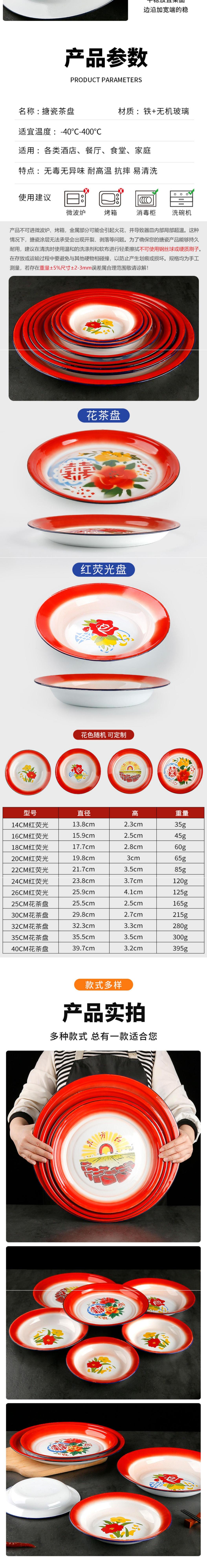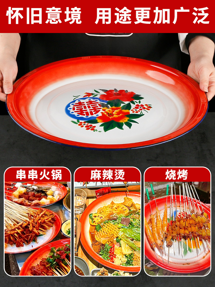 구식 에나멜 플레이트 더블 행복 티 플레이트 Jianghu, 닭 대형 철판 향수 식기 튀김 용 치킨 대형 플레이트 용 대형 플레이트 요리
