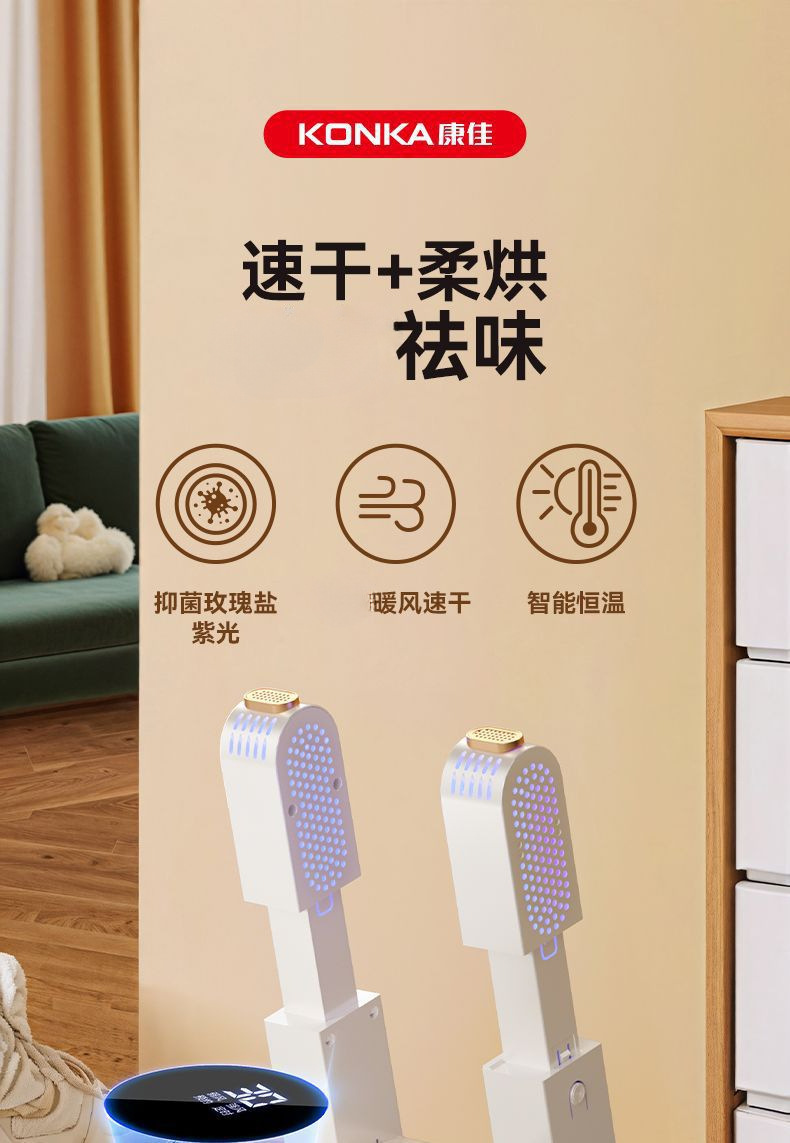 KONKA 전기 신발 건조기, 습식 및 건식 모두 사용 가능, 탈취 및 살균 기능, 성인용 신발 및 양말용, 완전 자동
