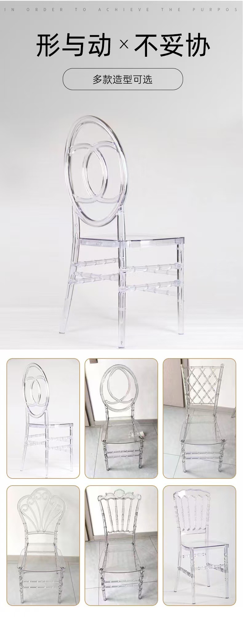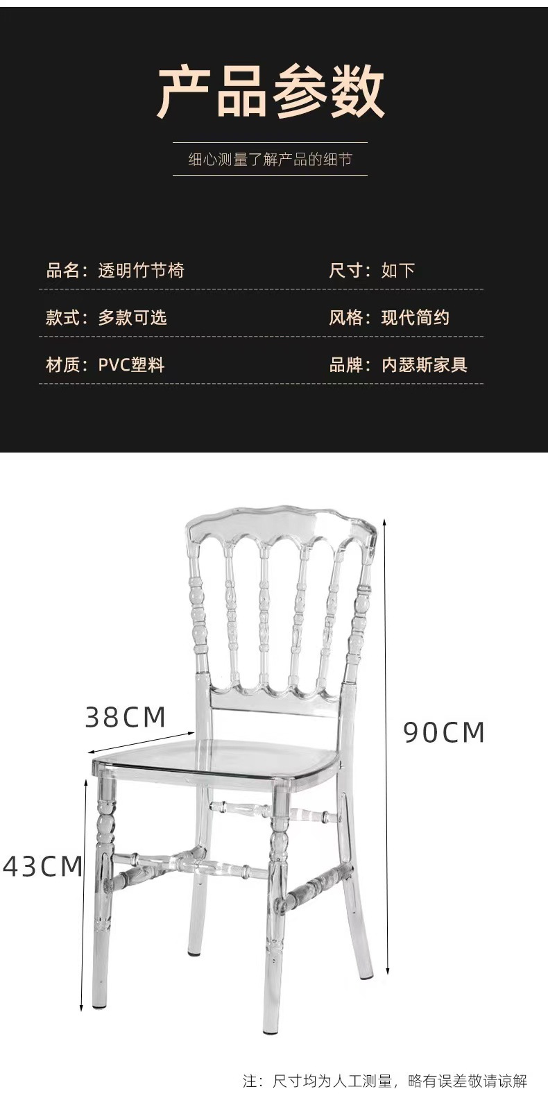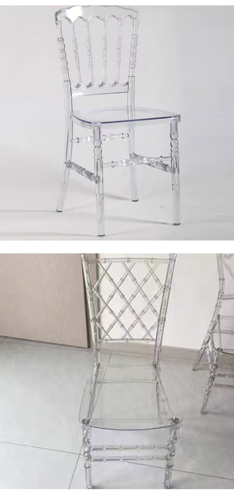 새로운 크리스탈 의자 아크릴 투명 의자 인터넷 레드 바람 호텔 테마 웨딩 강당 플라스틱 투명 크리스탈 다이닝 의자
