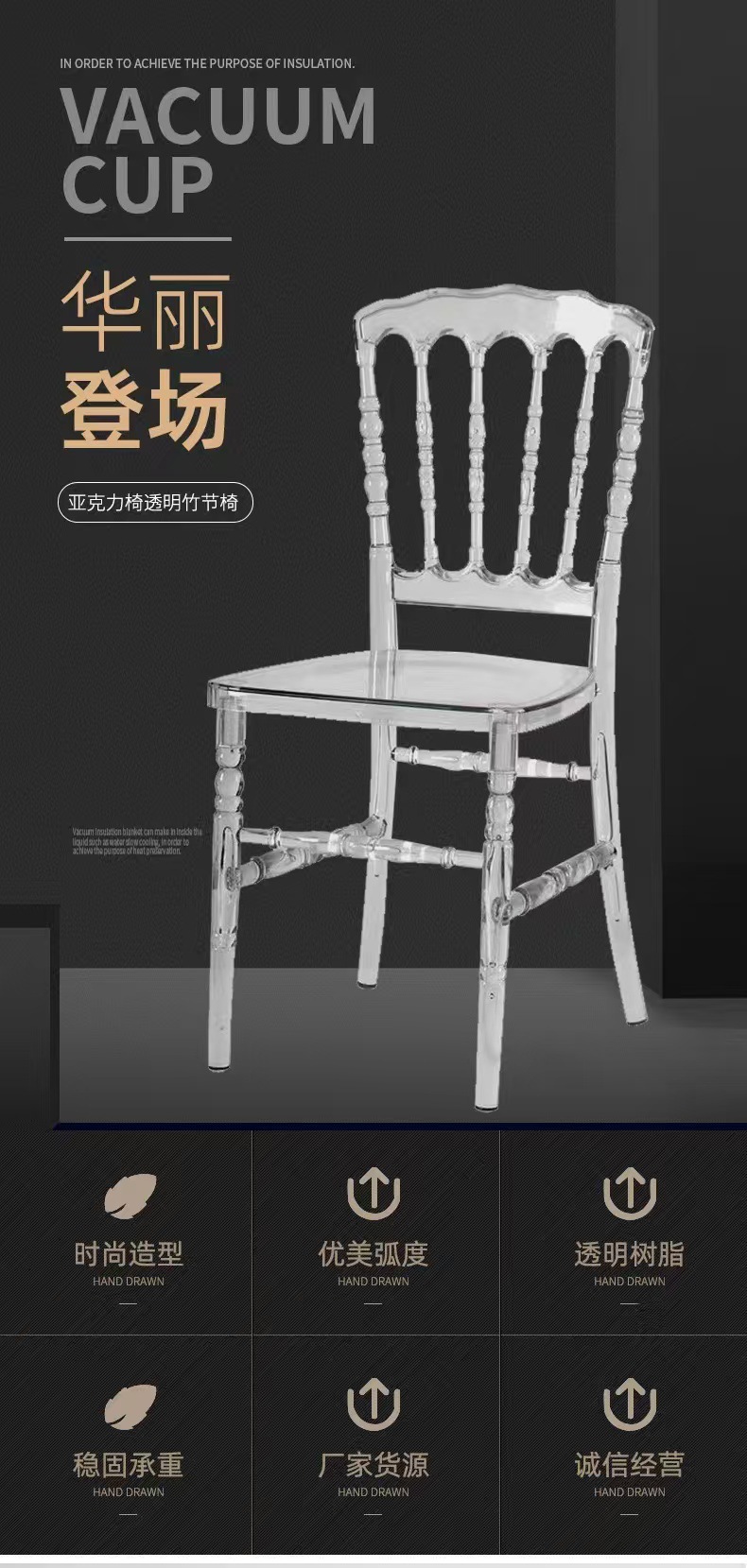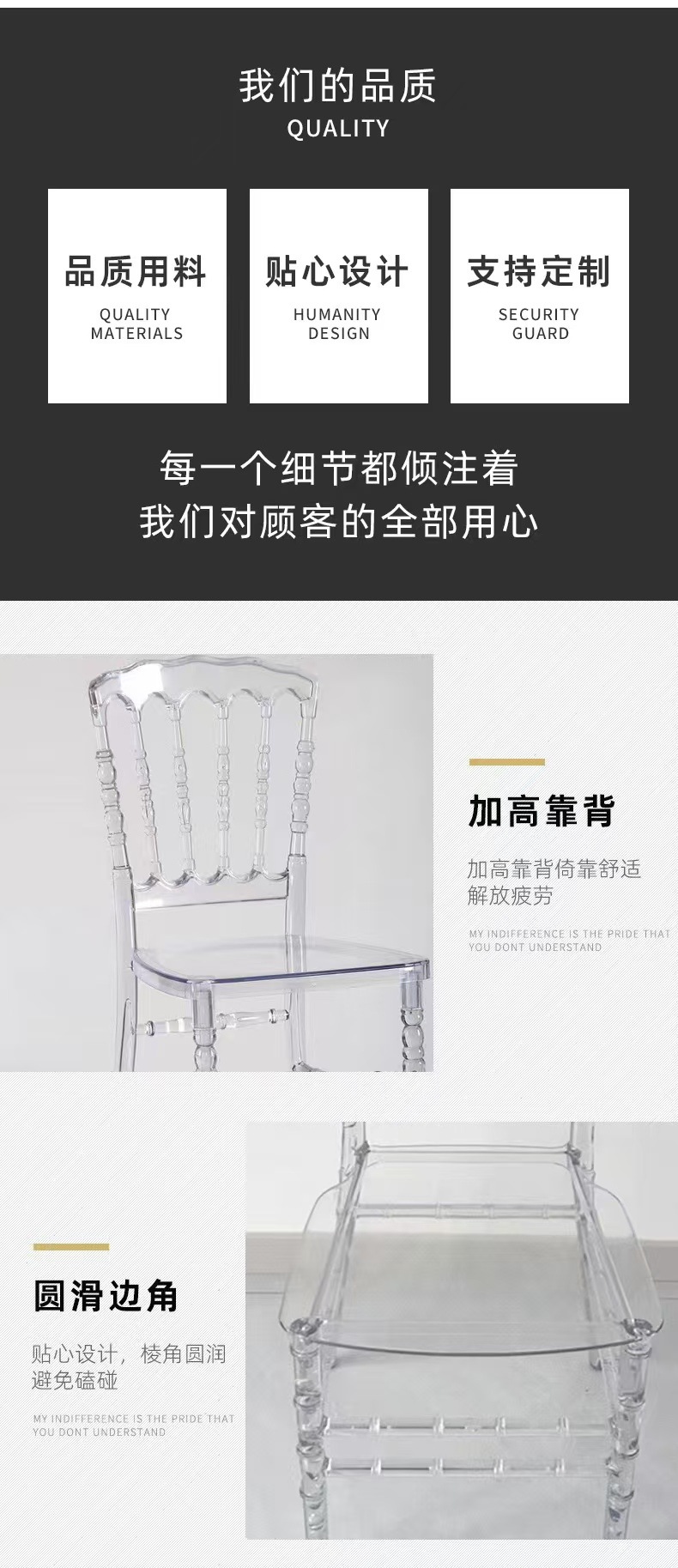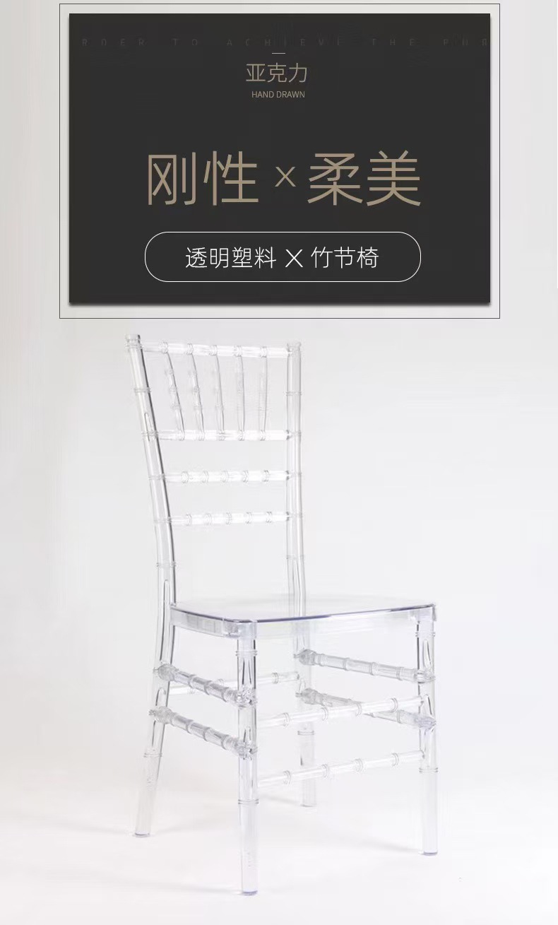 새로운 크리스탈 의자 아크릴 투명 의자 인터넷 레드 바람 호텔 테마 웨딩 강당 플라스틱 투명 크리스탈 다이닝 의자