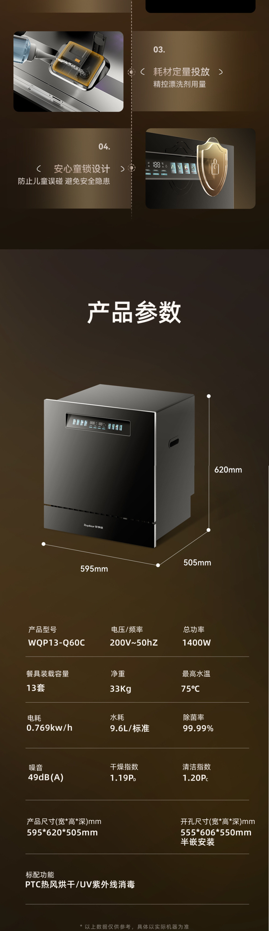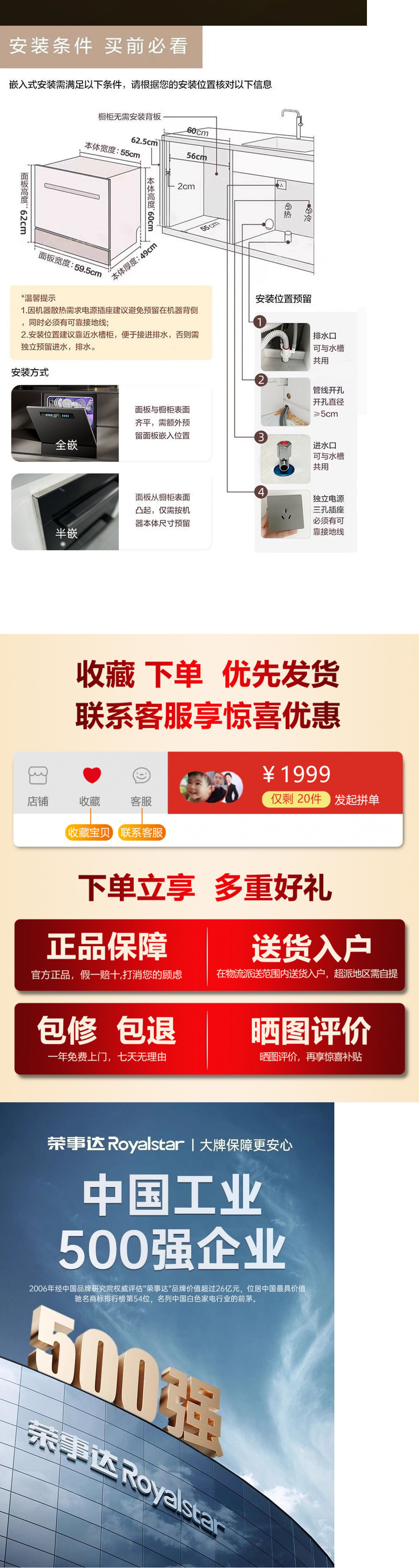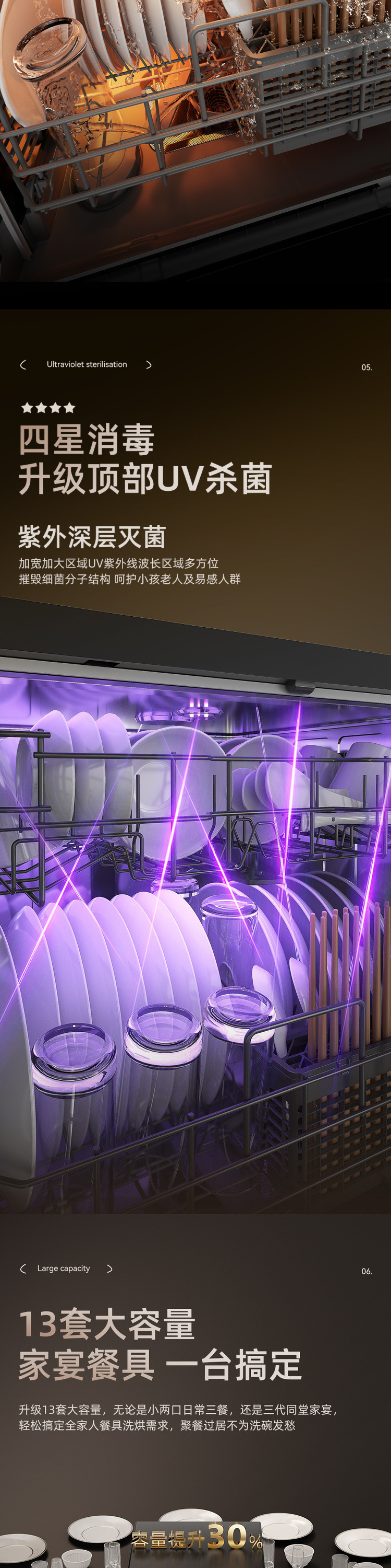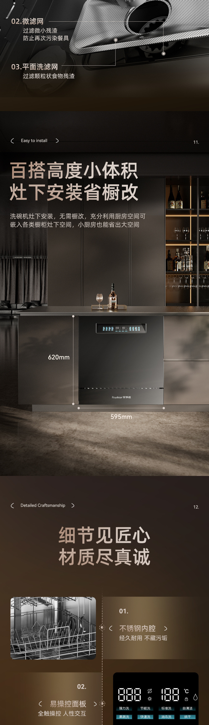 Rongshida 13 세트 용량 식기 세척기 임베디드 자동 열풍 건조 및 소독 지능형 다기능 기계