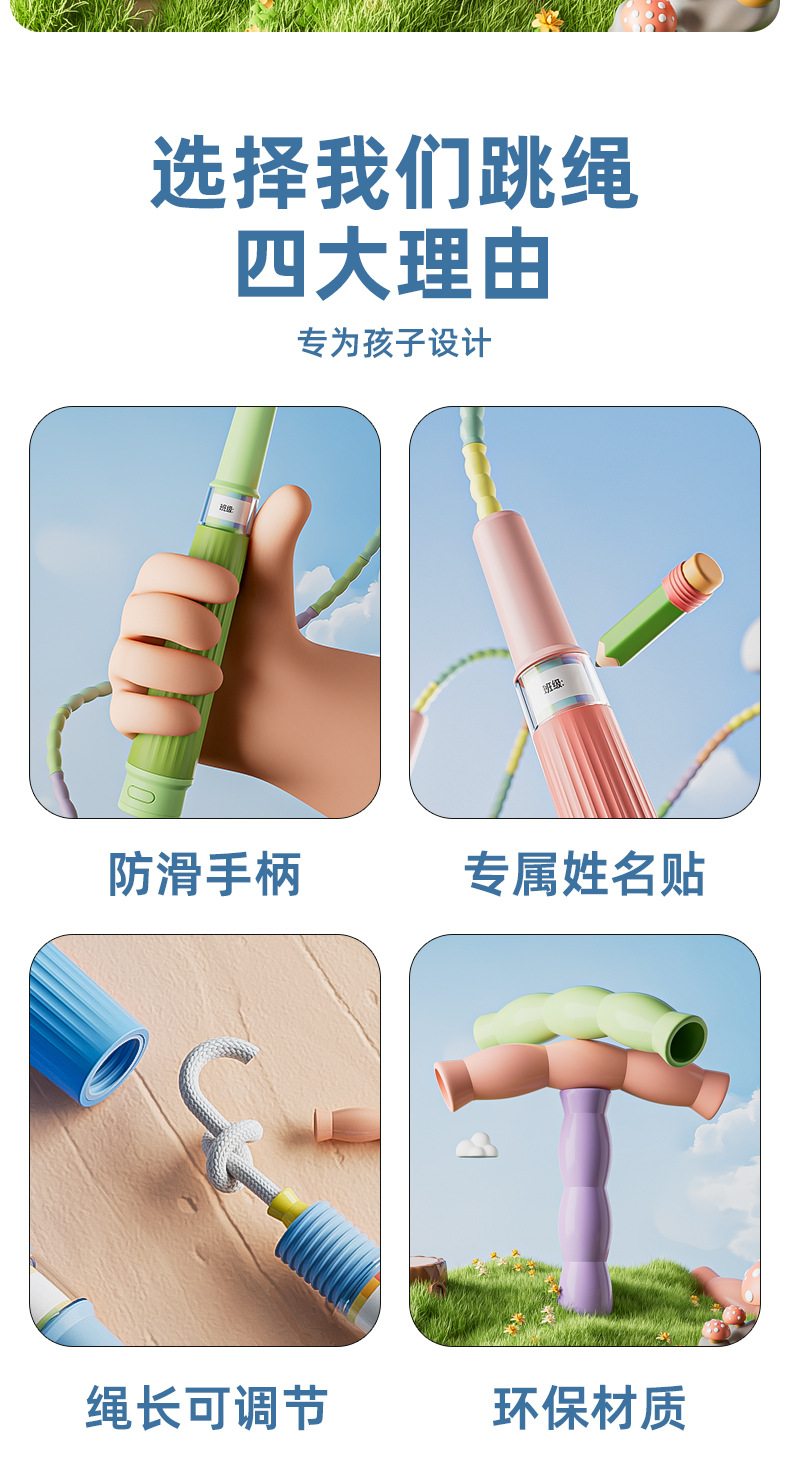 어린이를위한 슬러브 로프 건너 뛰기 유치원 및 초등학교 스포츠 용품 특별 쓰기 이름 조정 가능한 로프 건너 뛰기
