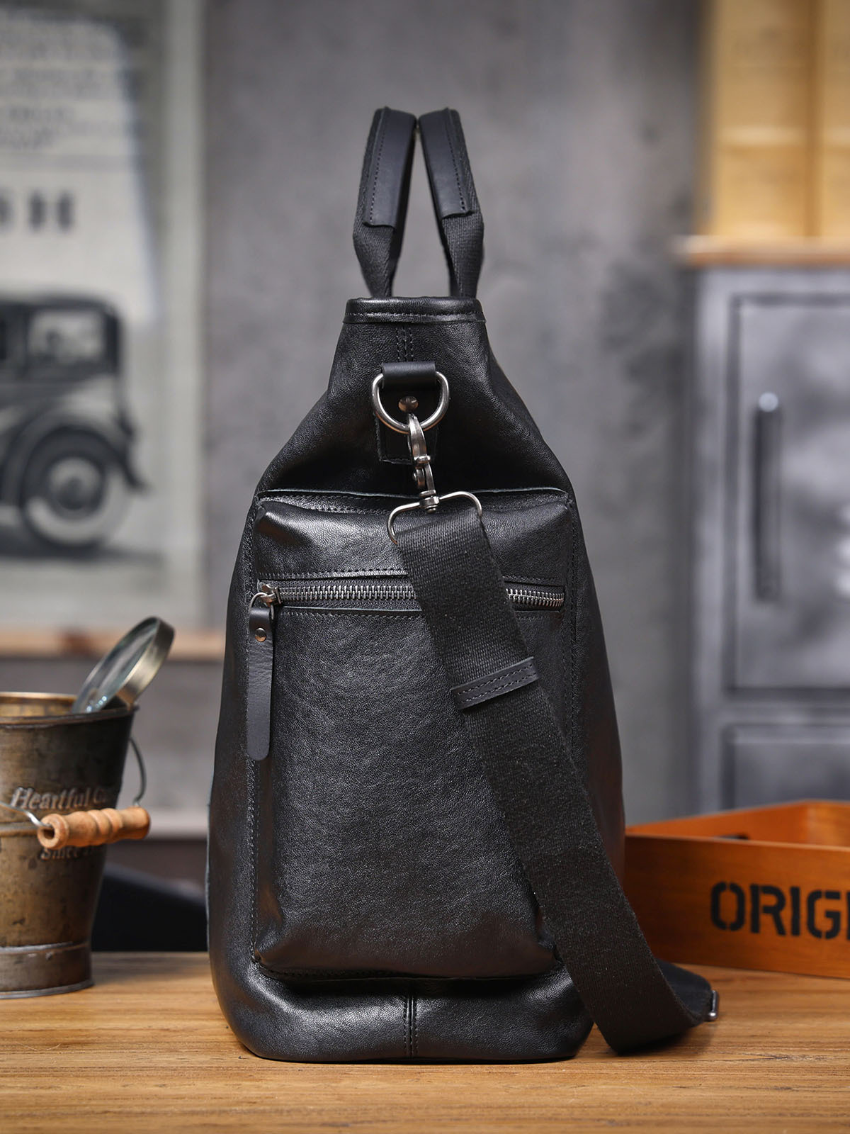 탑 레이어 Cowhide 남성용 핸드백 원래 디자인 대용량 정품 가죽 어깨 크로스 바디 컴퓨터 가방 야채 태닝 가죽 공식 문서