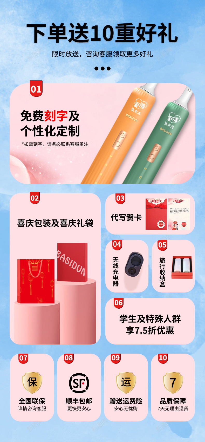 【재고정리】전동칫솔 완전 자동 방수 청소 성인용 음파 진동 커플용 충전식 마그네틱 서스펜션