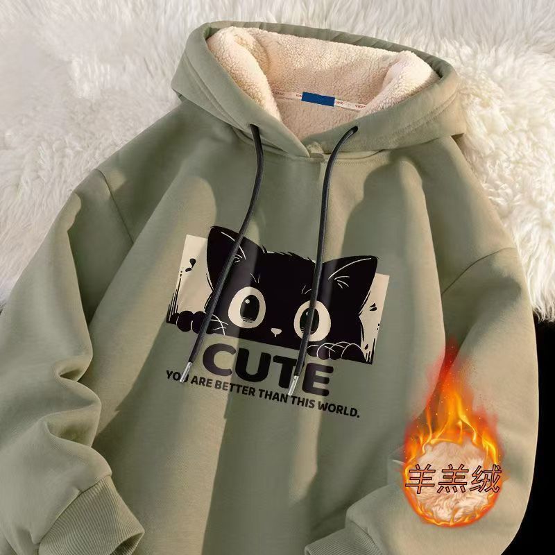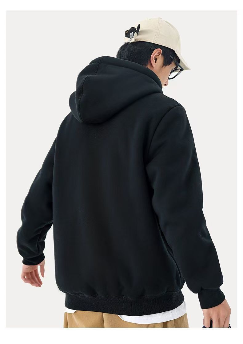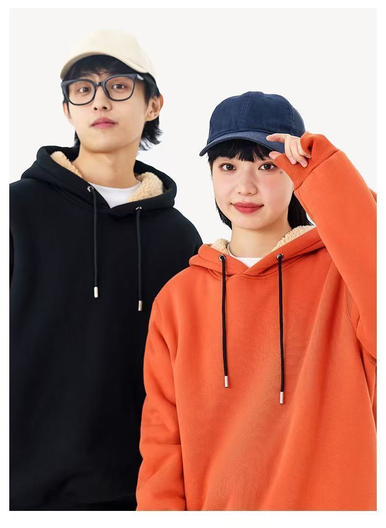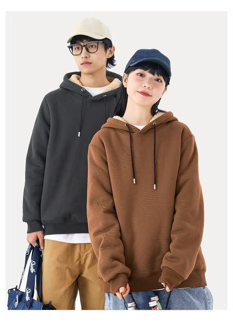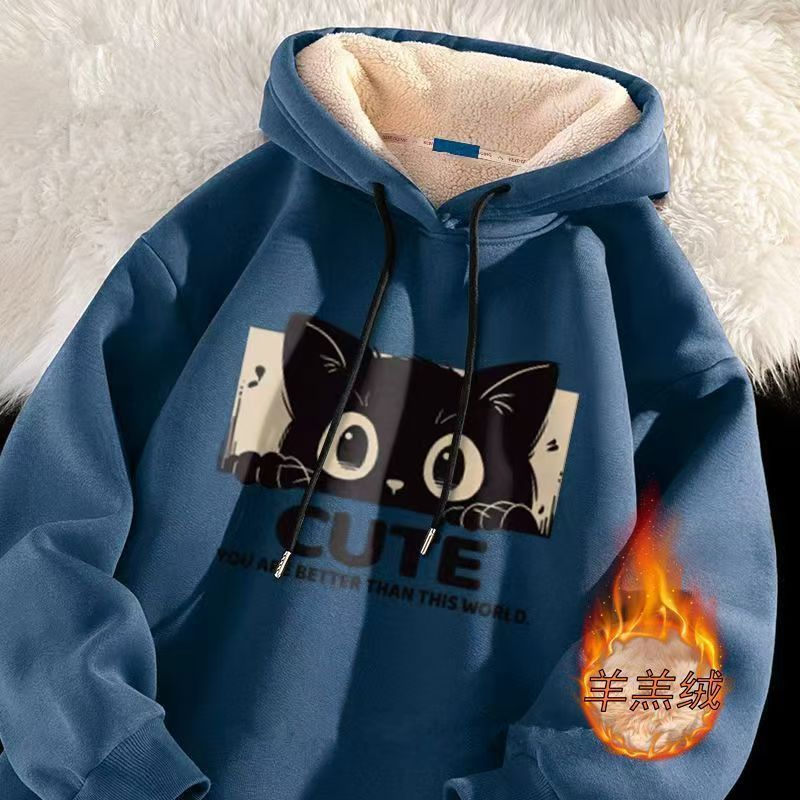 2024 가을과 겨울 양가죽 스웨터 남성용 스웨터 디자인 센스와 느슨한 후드 캐주얼 스포츠 남성 코트 1/2