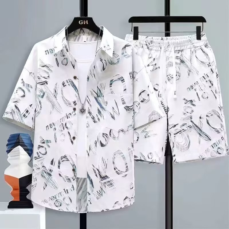 남성용 반팔 셔츠 세트, 남성복 캐주얼 스포츠 상의와 반바지 투피스 세트, 캐주얼 스포츠 스타일