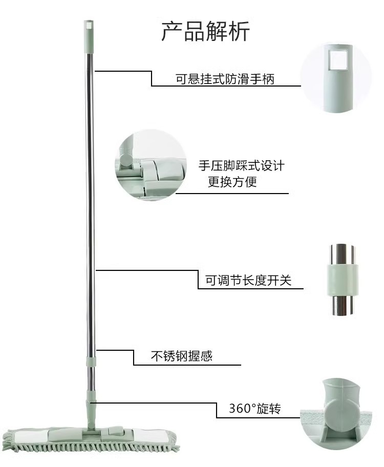 Chenille 편평한 걸레 가정용 물 흡수성 건조하고 젖은 이중 사용 바닥 절단 인공물 게으른 바닥 타일 걸레