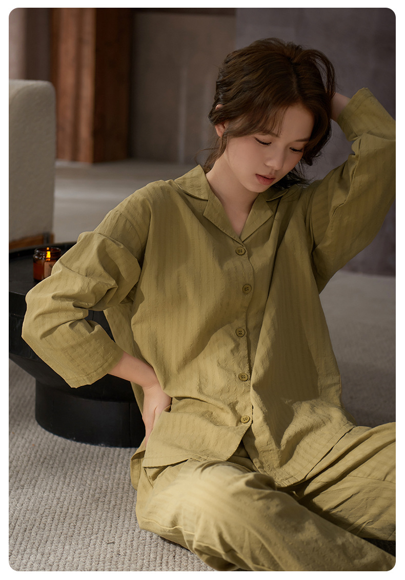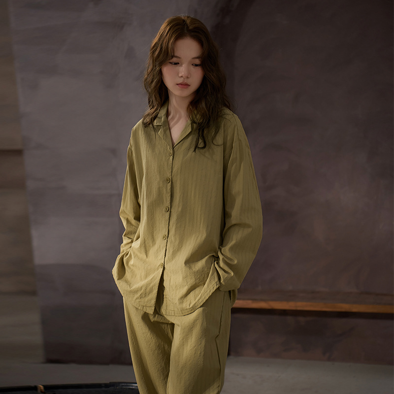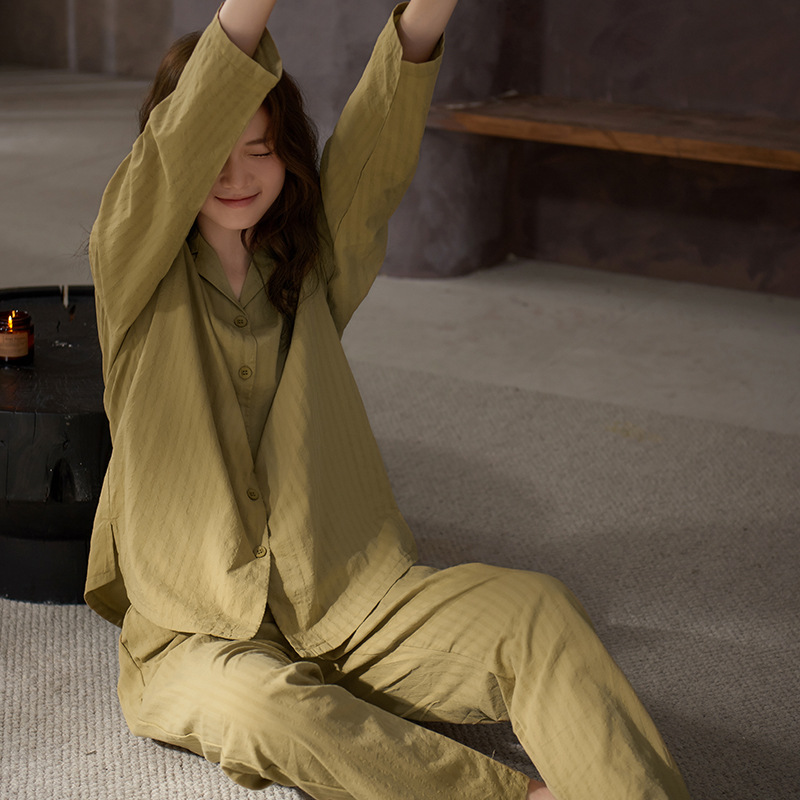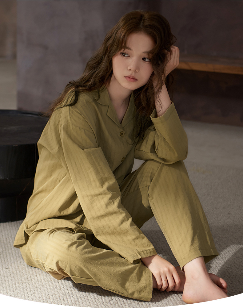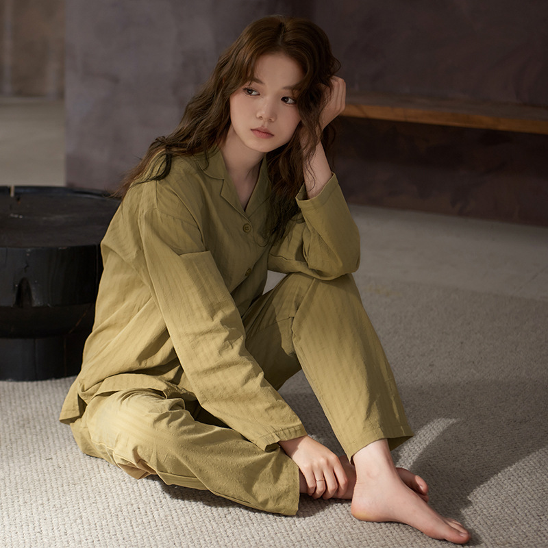 잠옷 여성의 봄과 가을 부드러운 짠 순면 천 부드러운 면 긴 소매 면화 홈 의류 세트 착용