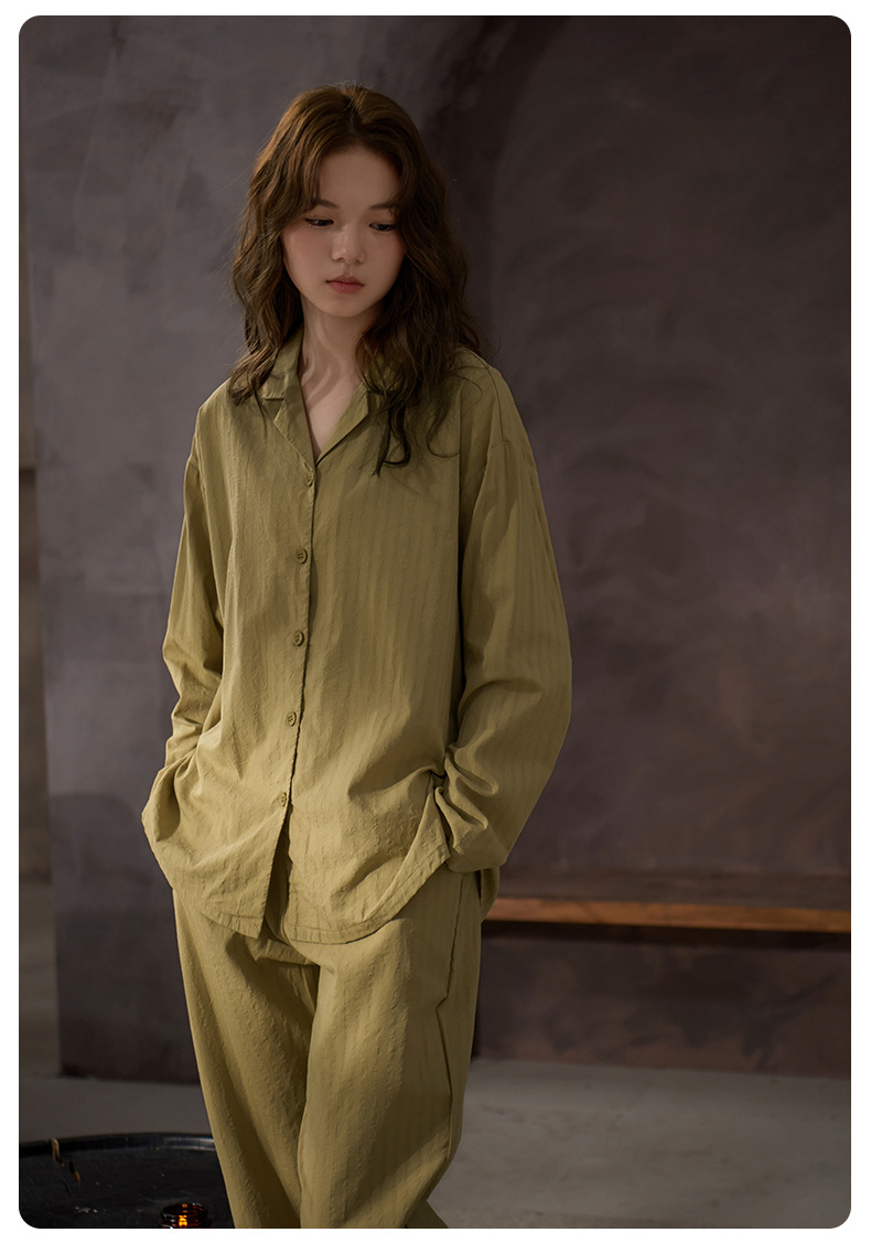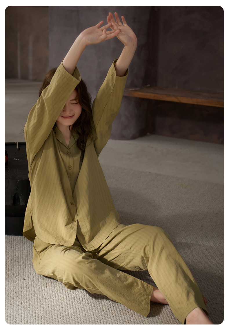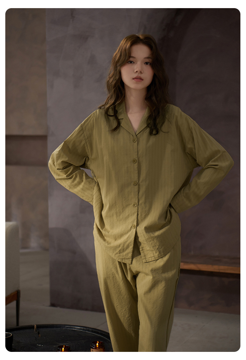 잠옷 여성의 봄과 가을 부드러운 짠 순면 천 부드러운 면 긴 소매 면화 홈 의류 세트 착용