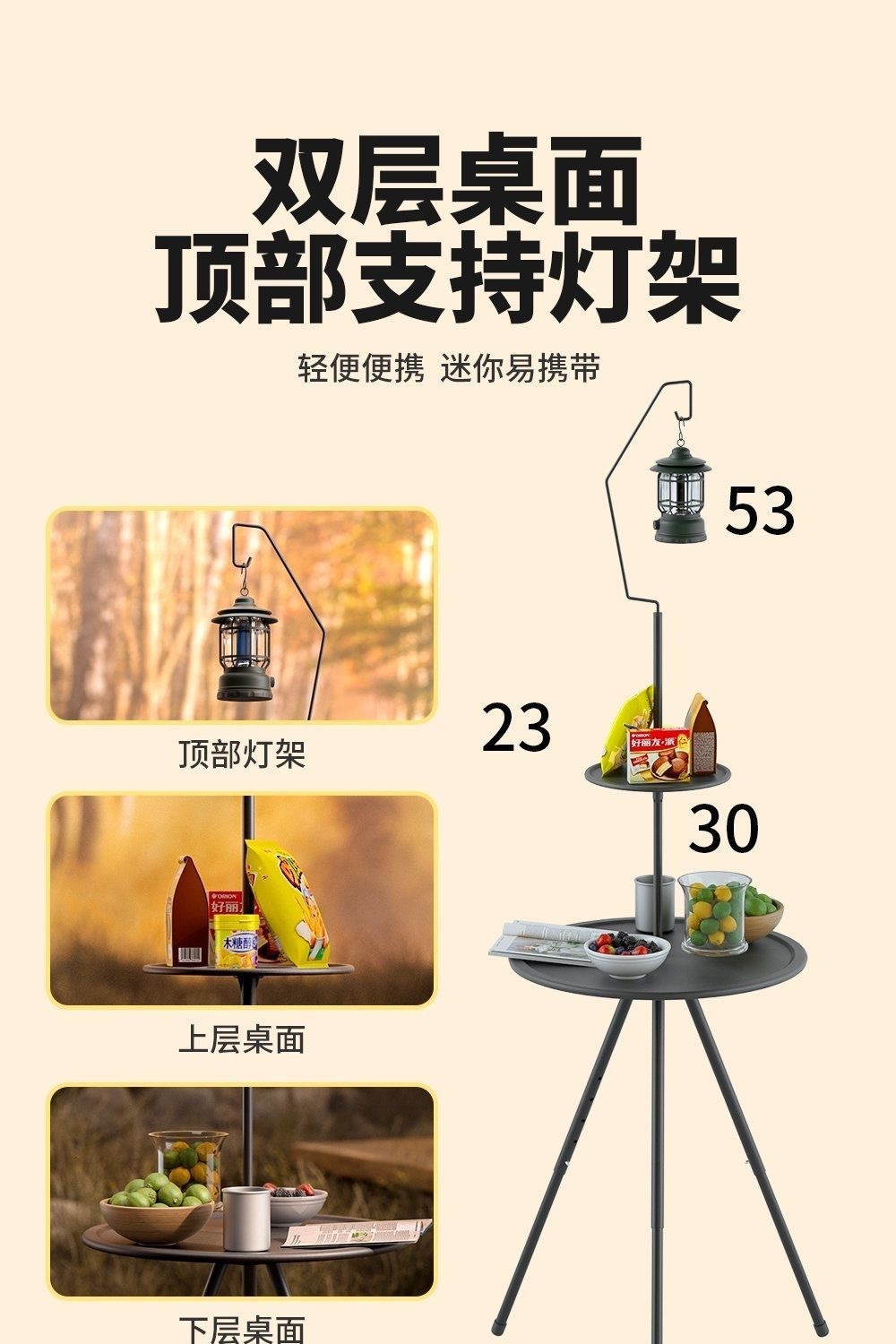 높이 조절 가능한 미니 원형 테이블 2단 조명 스탠드 - 2단 데스크탑 [수납 가방 없음]