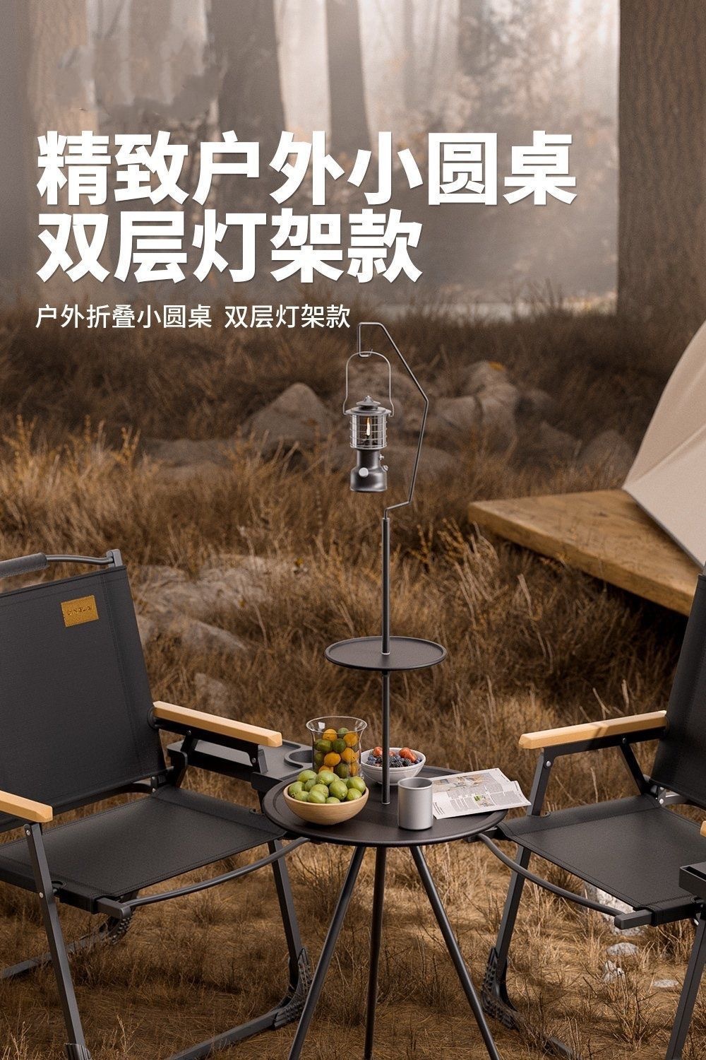높이 조절 가능한 미니 원형 테이블 2단 조명 스탠드 - 2단 데스크탑 [수납 가방 증정]