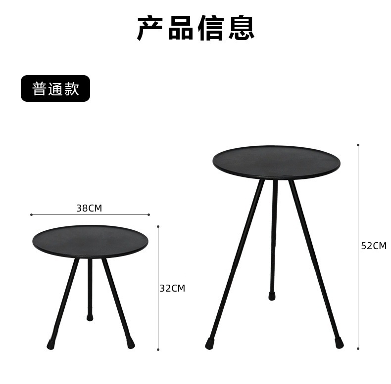 높이 조절 가능한 미니 원형 테이블 기본형 - 오닉스 블랙 [수납 가방 없음]