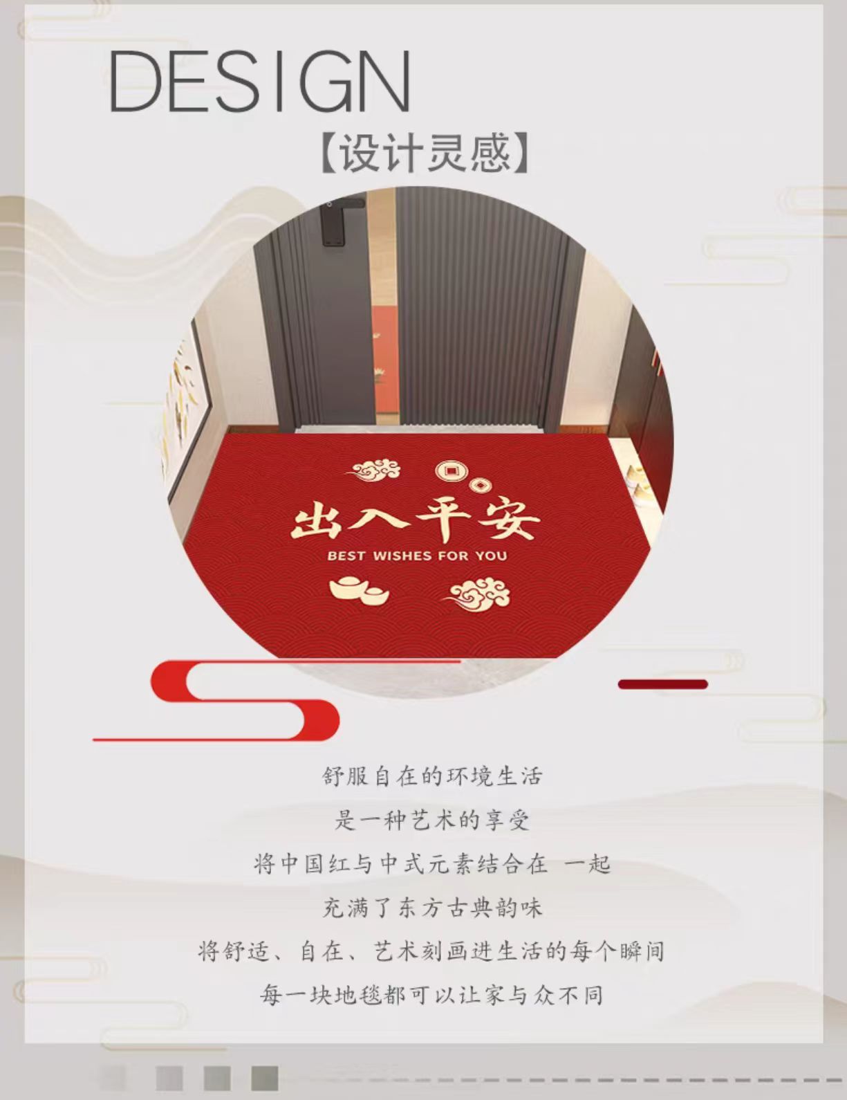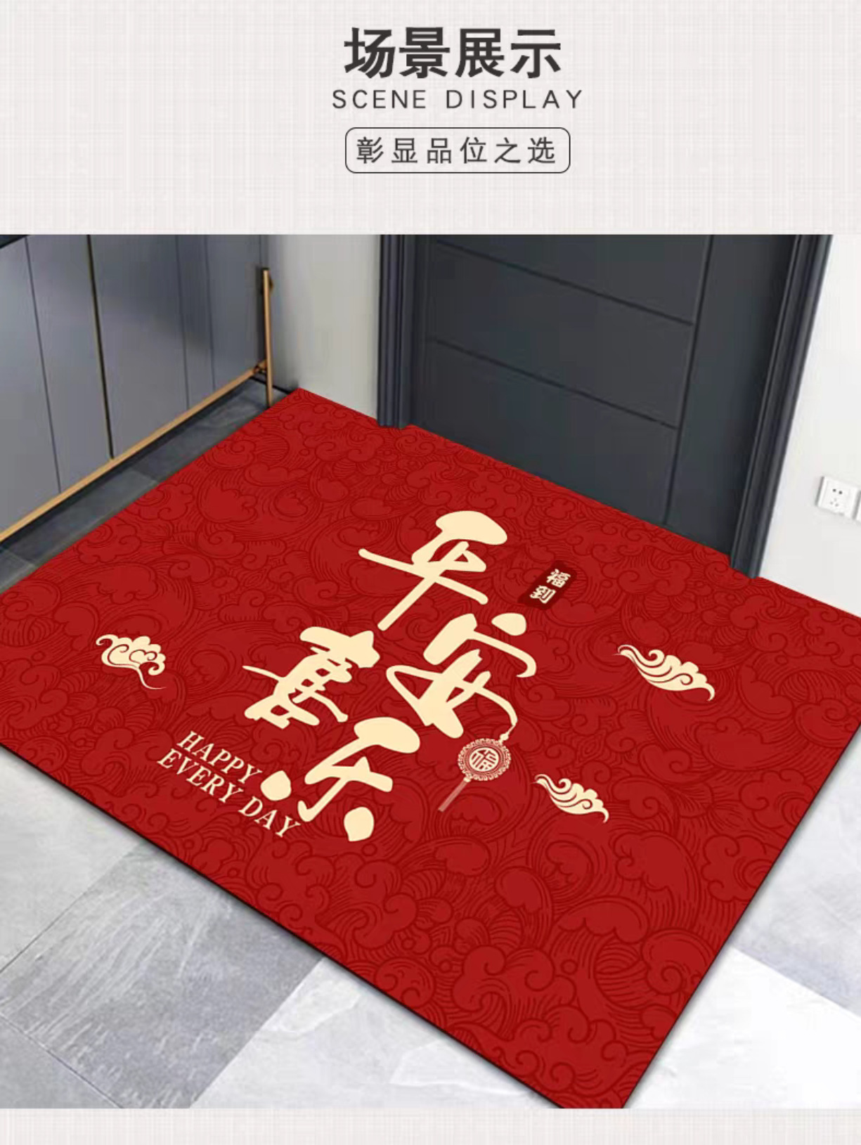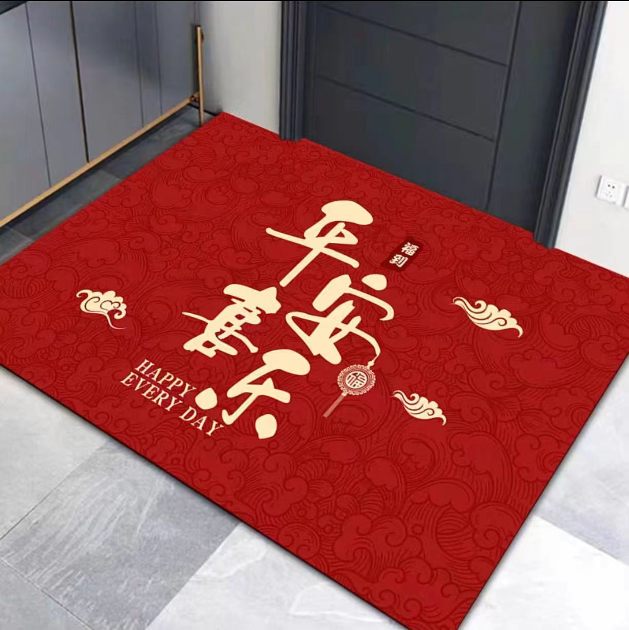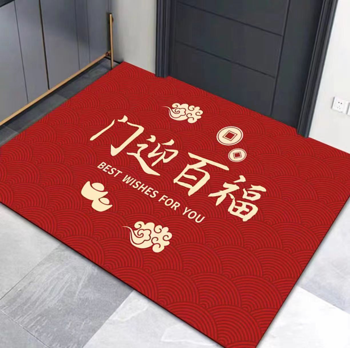 빨간색 현관 입구 매트, 흡수성 발매트, 침실용 축복문자, 집들이 선물, 오염 방지, 미끄럼 방지 카펫, 관리 용이