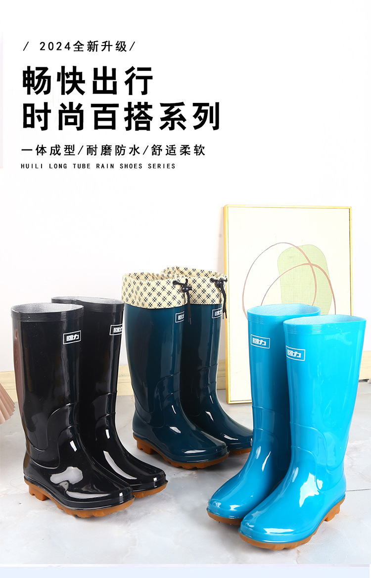 Huili 비 신발 숙녀 853 튜브 물 신발 쇠고기 힘줄 바닥 비 부츠 주방 미끄럼 방지 방수 부츠 노동 보호 고무 신발 도매
