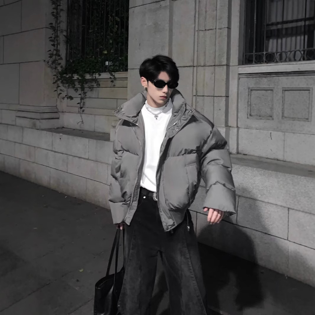 두꺼운 짧은면 패딩 코트 남성용 겨울 따뜻한 빵 의류 높은 센스 스탠드 칼라 다운 코튼 패딩 재킷 공장 아울렛