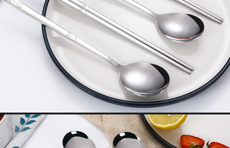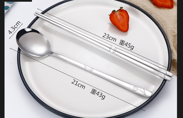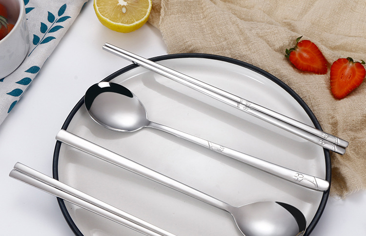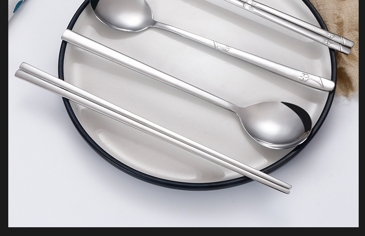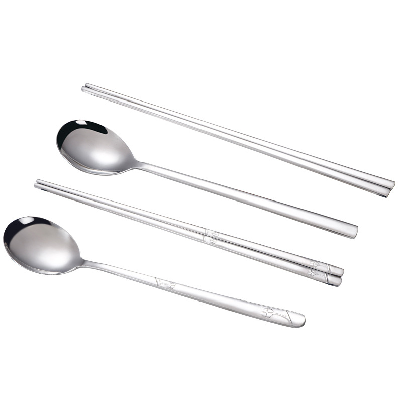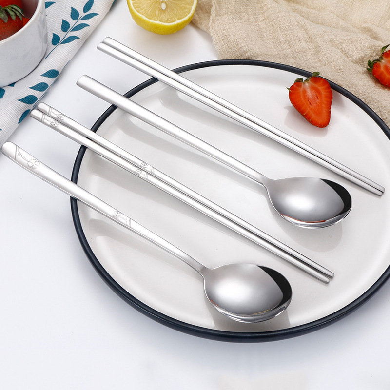공장 직접 한국 스테인레스 스틸 젓가락 숟가락 선물 스테인레스 스틸 한국 플랫 젓가락 숟가락 젓가락 식기 세트