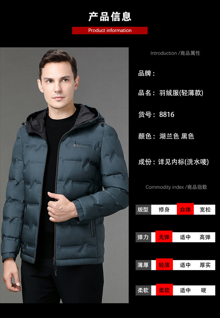 도매 하이 엔드 가을과 겨울 새로운 경량 다운 재킷 남성 짧은 패션 조커 캐주얼 후드 덕 다운 재킷