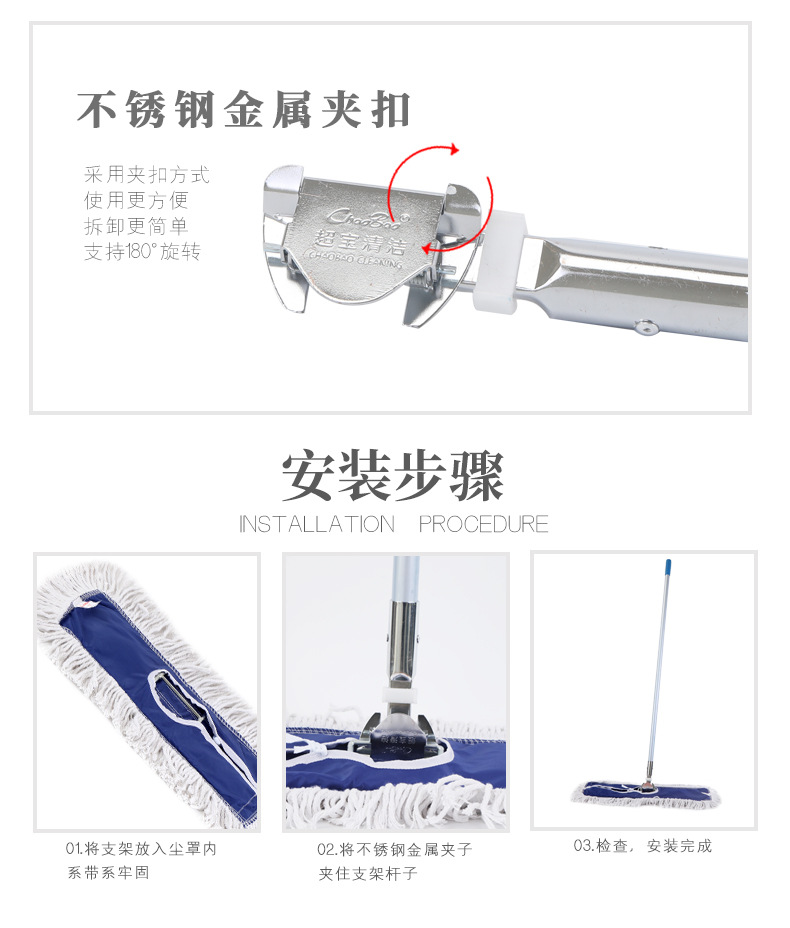 Chaobao 걸레 알루미늄 합금 플랫 걸레 나무 바닥 먼지 푸시 텔레스코픽 로드 퓨어 코튼 와이어 팝 호텔 60cm