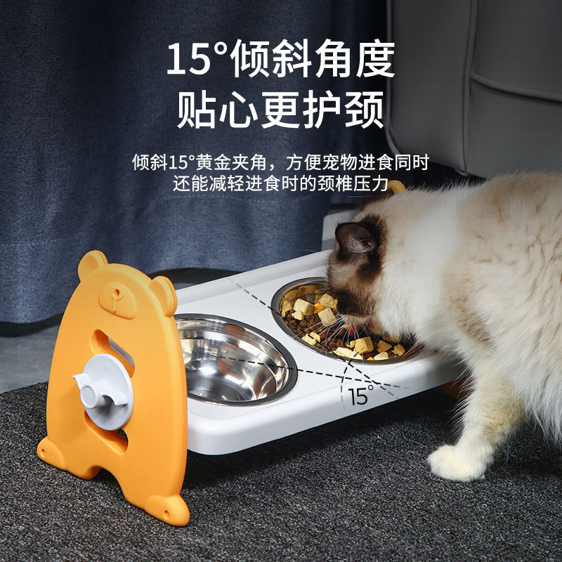 고양이 그릇 더블 그릇 개 식품 분지 스테인레스 스틸 안티 팁 고양이 쌀 분지 마시는 물 공급 그릇 슬랜트 입 애완 동물 용품 # #