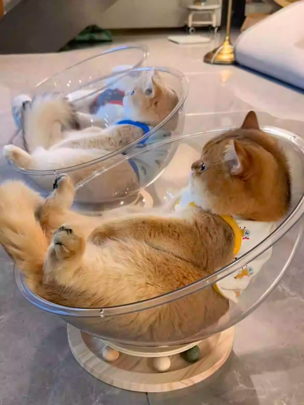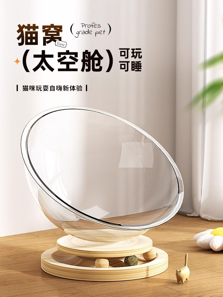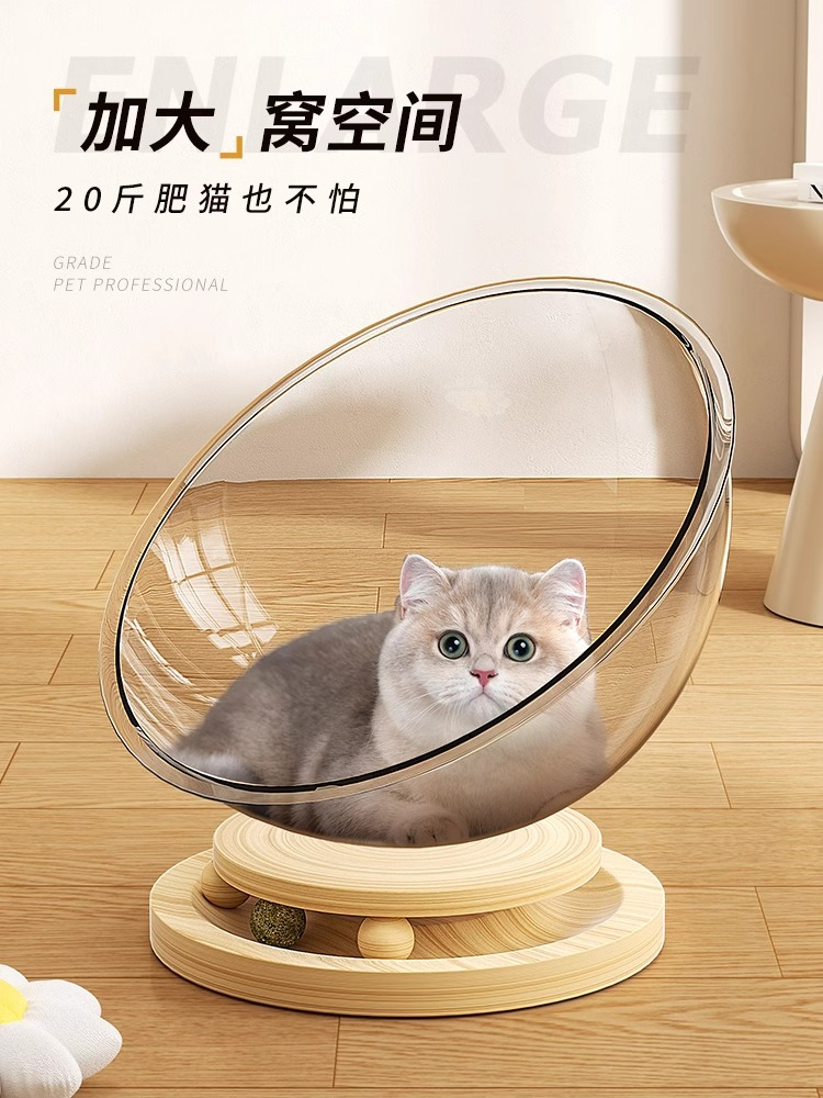 우주 캡슐 고양이 둥지 겨울 따뜻한 사계절 유니버설 높은 투명 아크릴 단단한 나무 턴테이블 고양이 장난감 애완 동물 용품