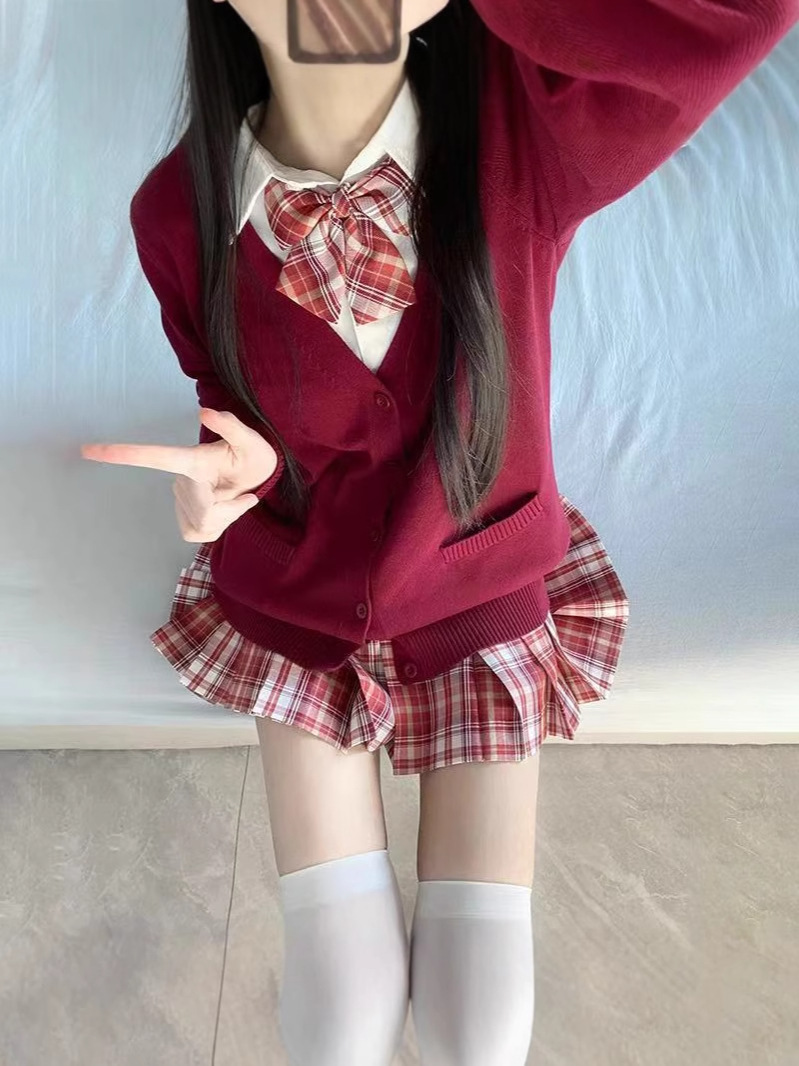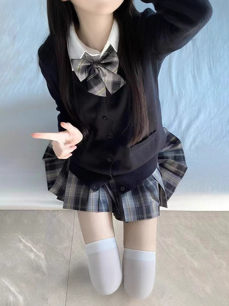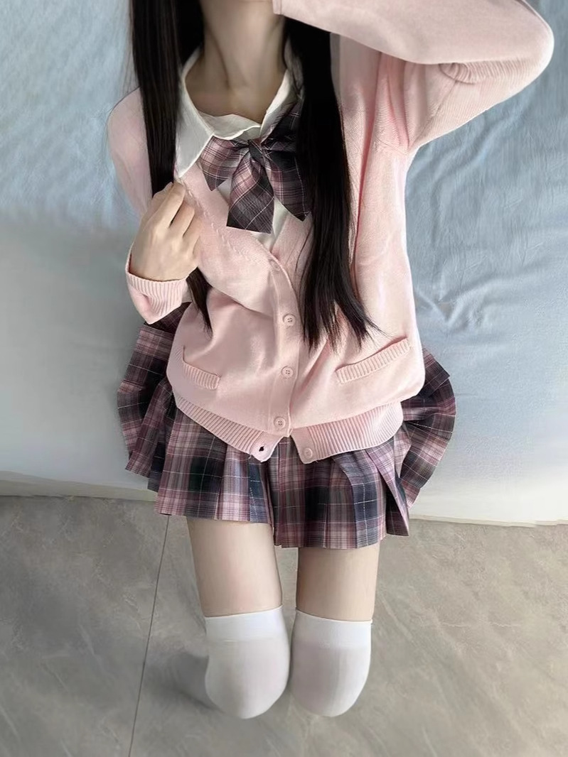 원래 정품 jk 유니폼 풀 세트 대학 스타일 봄, 여름, 가을 및 겨울 스웨터 카디건 긴 소매 셔츠 유료 스커트 학생 세트