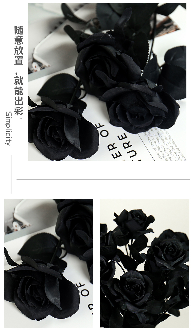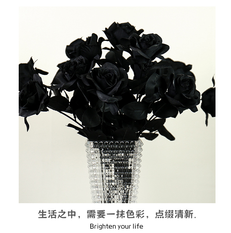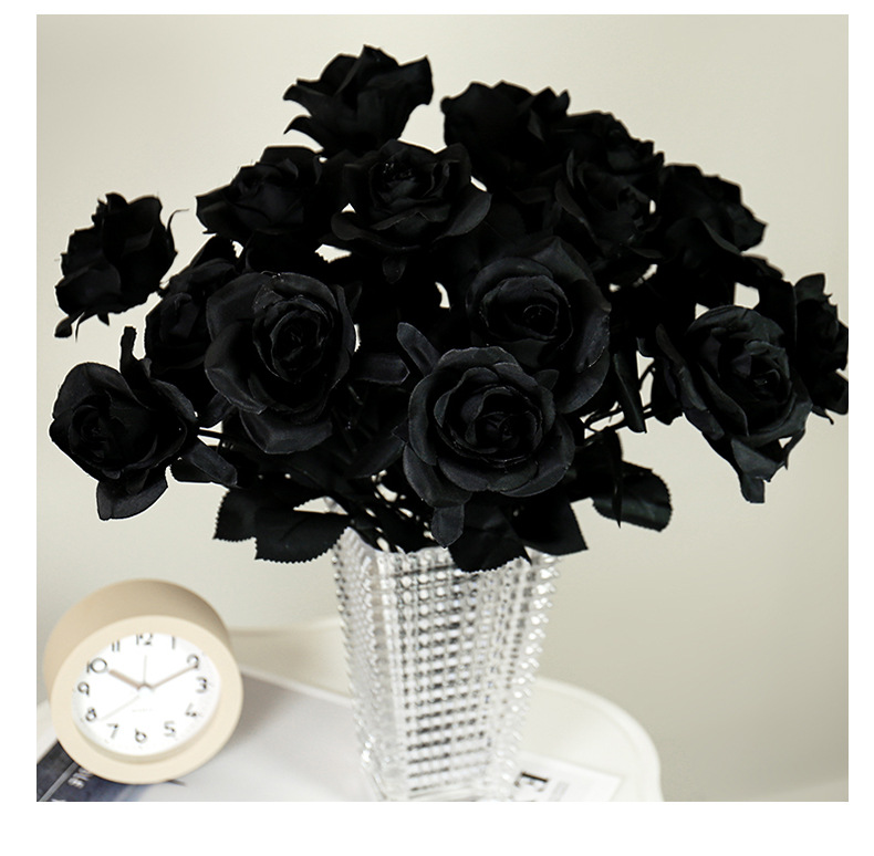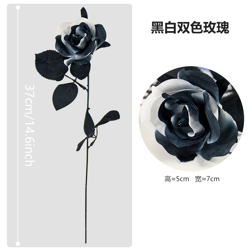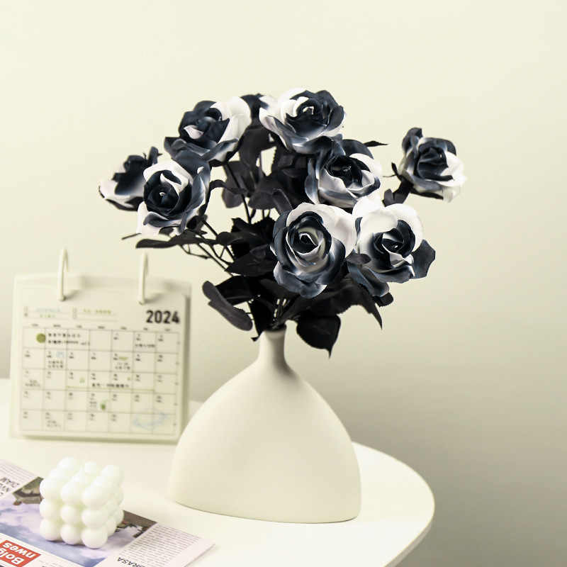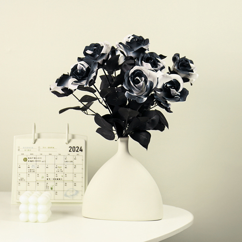 할로윈 블랙 시뮬레이션 장미 꽃 장식 꽃꽂이 가짜 꽃 집 디스플레이 간단한 흑백 시뮬레이션 꽃