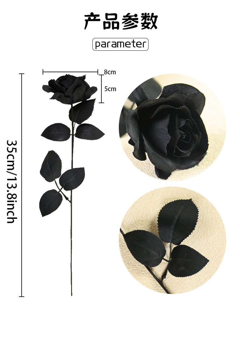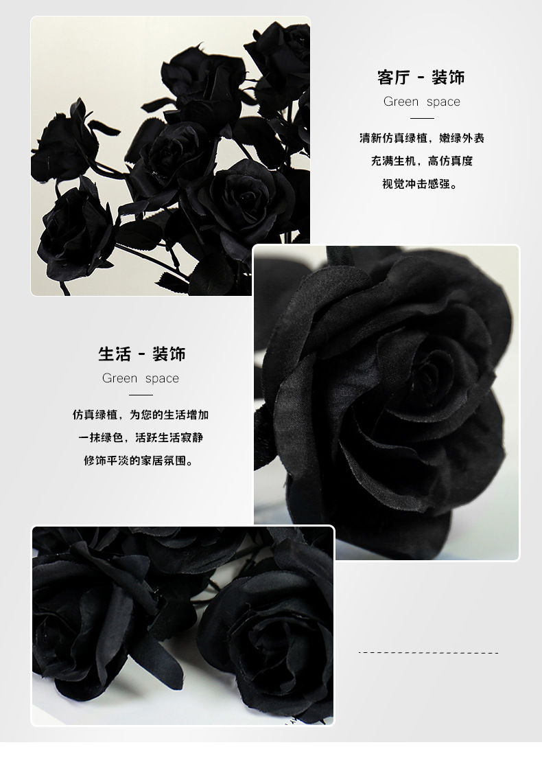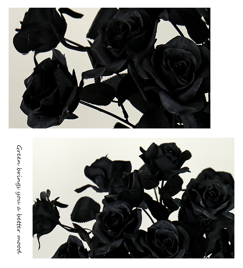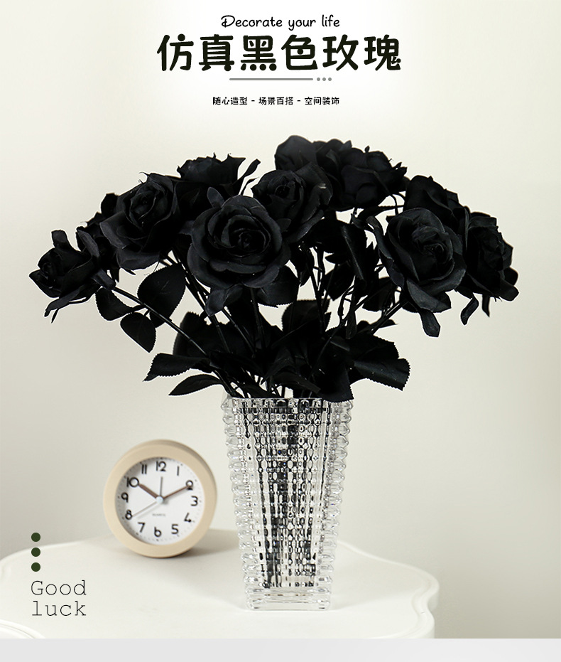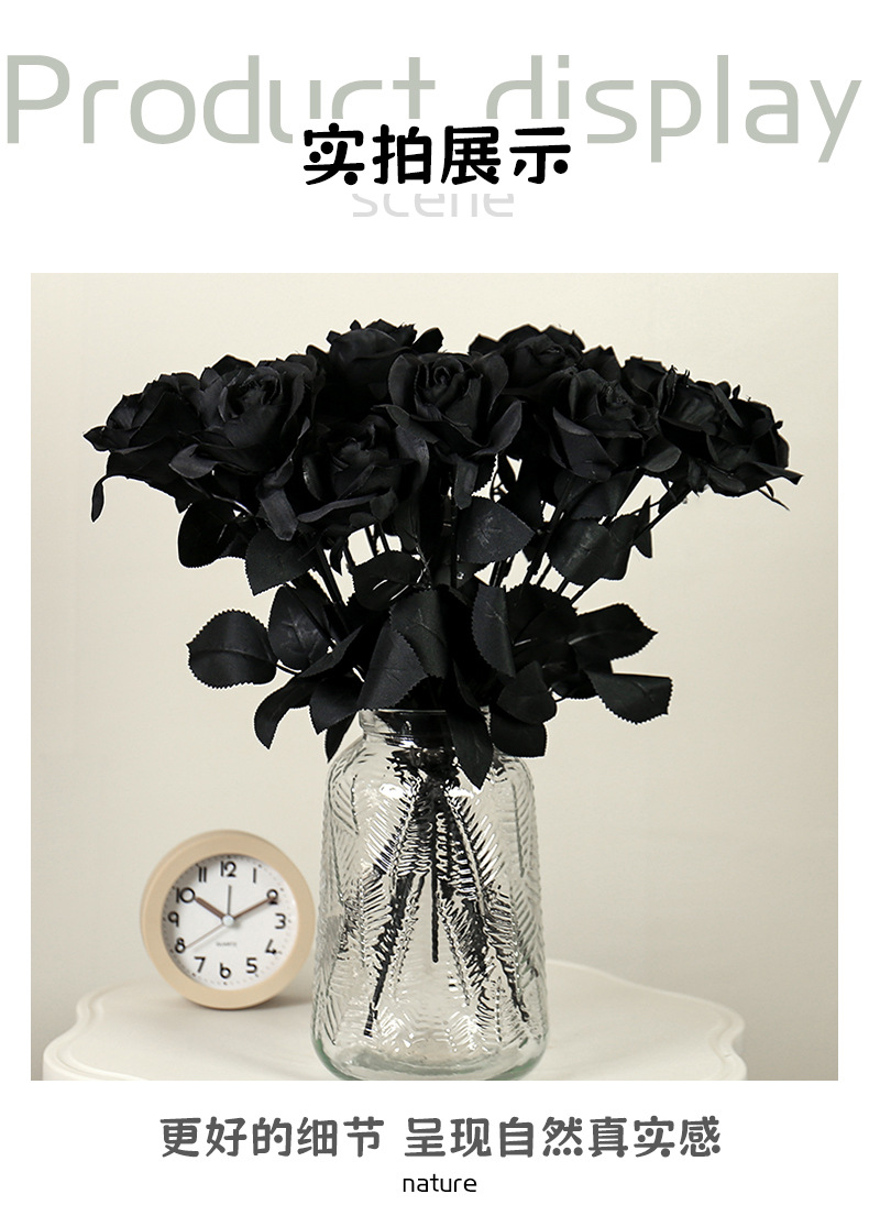 할로윈 블랙 시뮬레이션 장미 꽃 장식 꽃꽂이 가짜 꽃 집 디스플레이 간단한 흑백 시뮬레이션 꽃