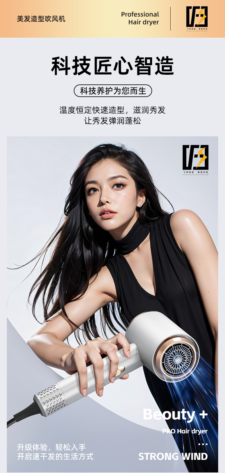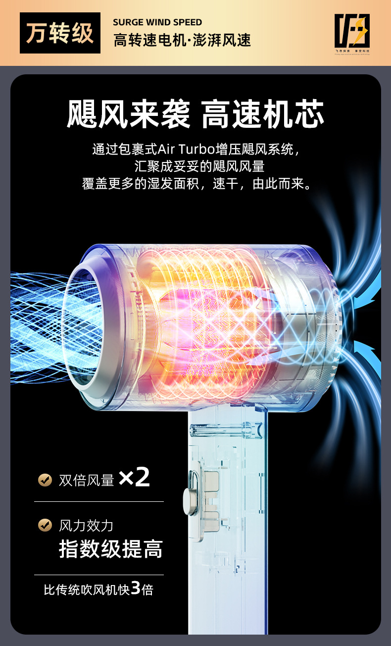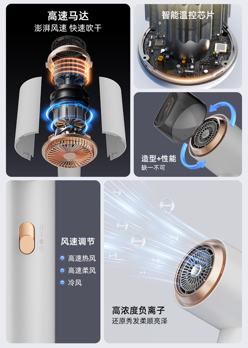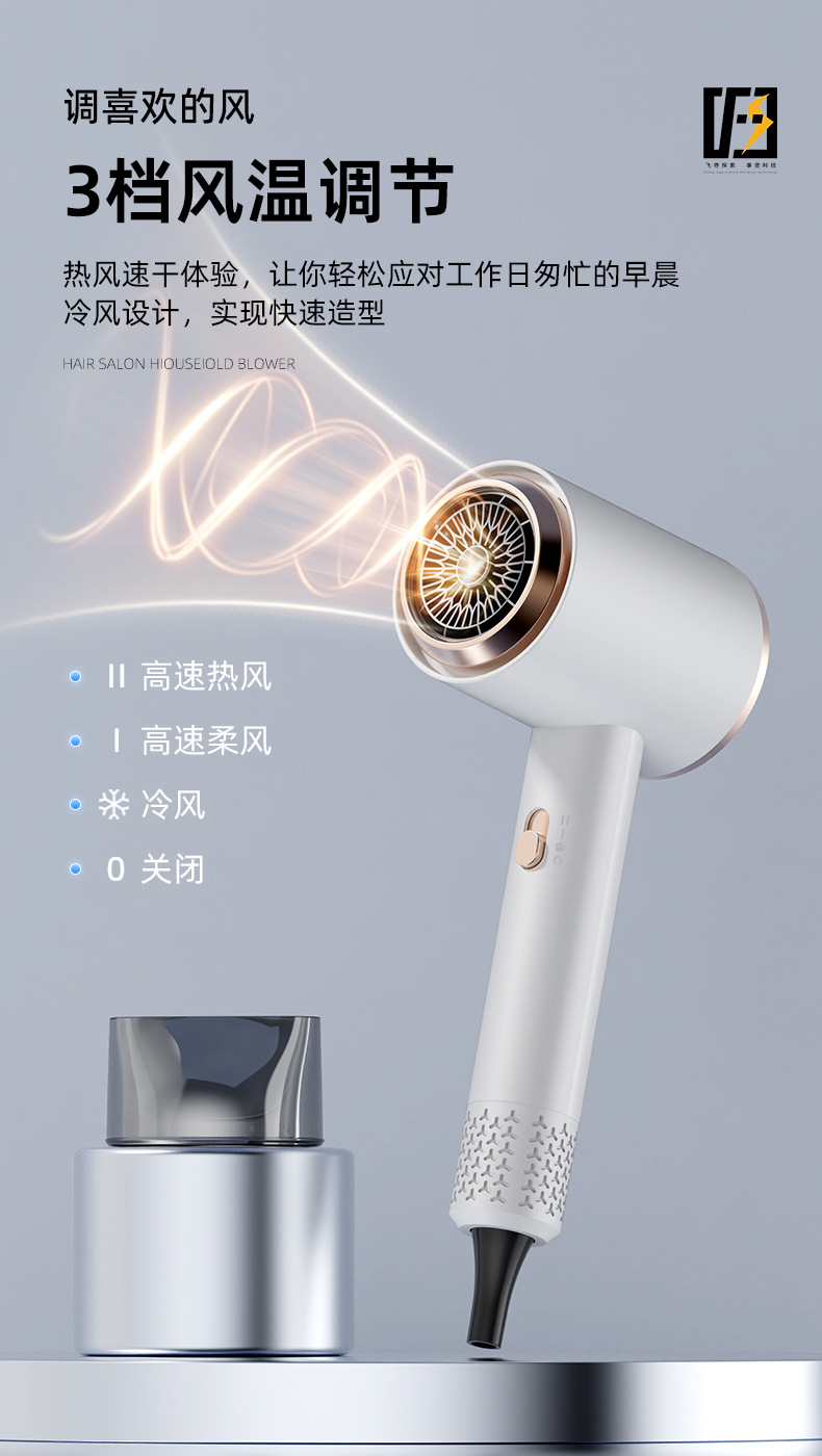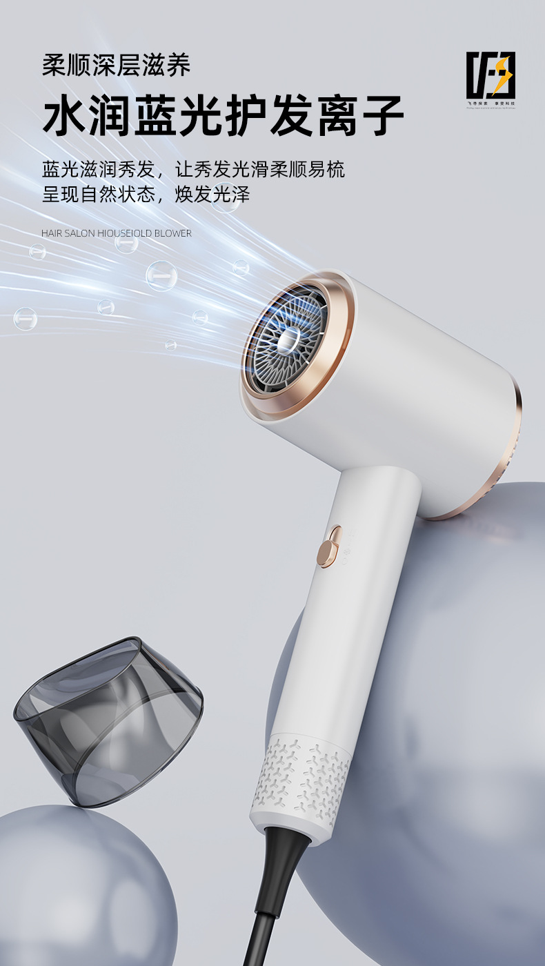 새로운 국경 대형 바람 블루 라이트 헤어 드라이어 헤어 살롱 홈 기숙사 고출력 네거티브 이온 헤어 드라이어
