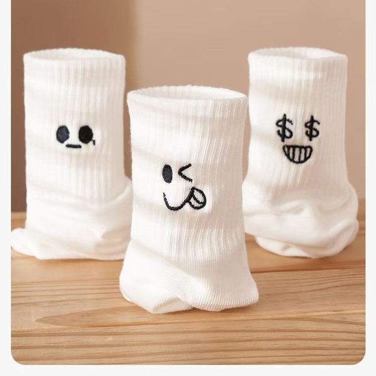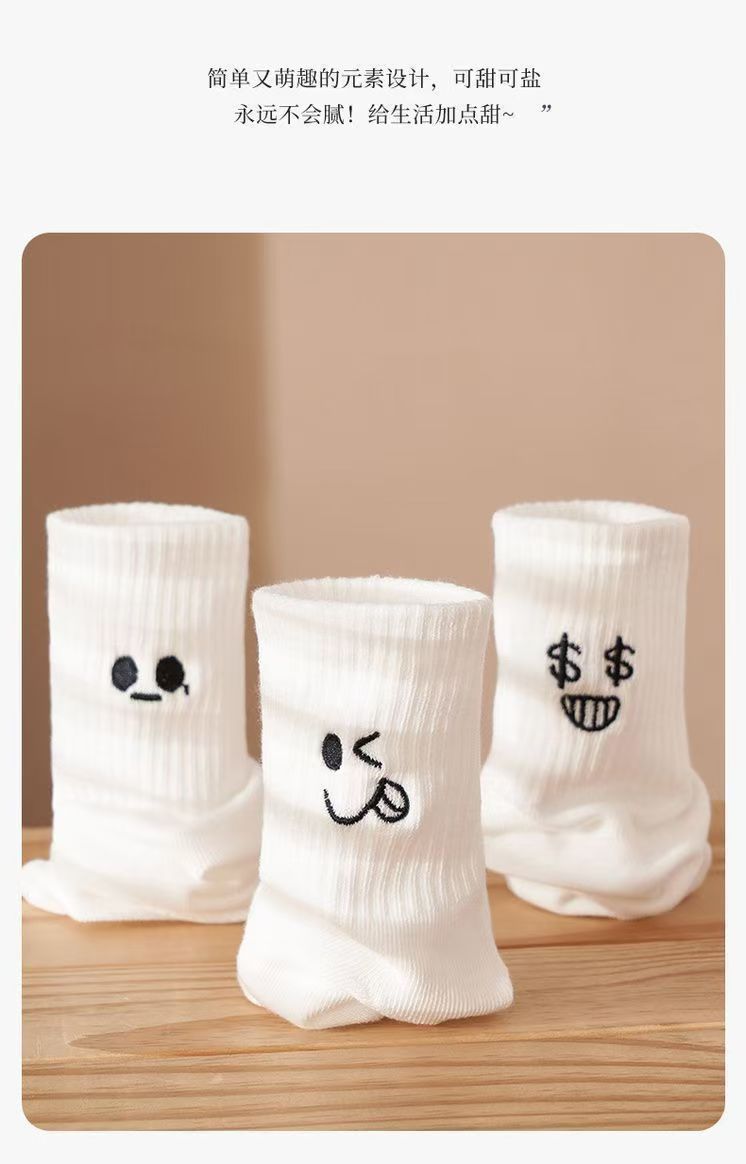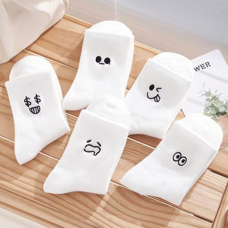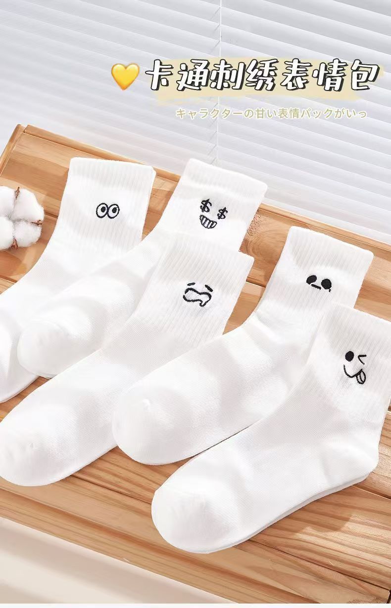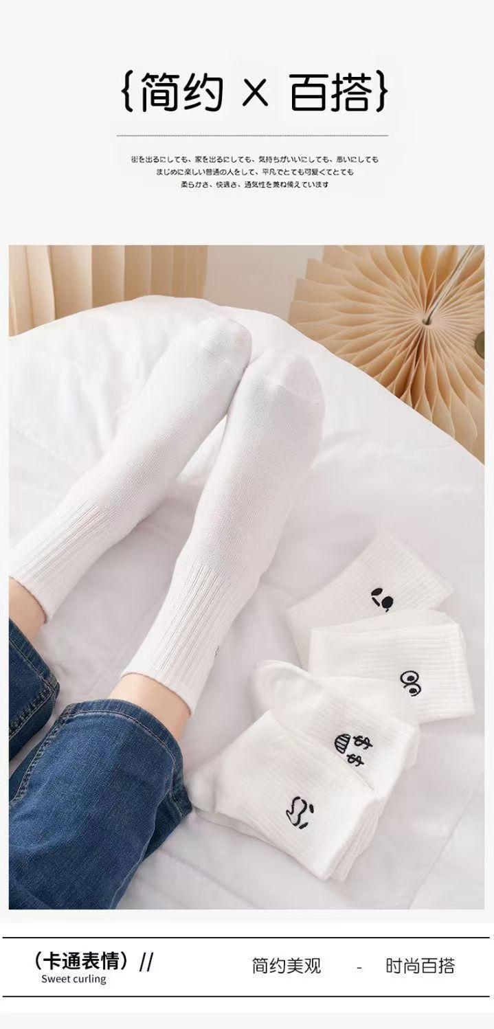 흰색 양말 여성용 이모티콘 팩 면 종아리 양말 가을 겨울 스포츠 재미있는 유행 버전 귀여운 긴 양말 통기성 여성용 양말