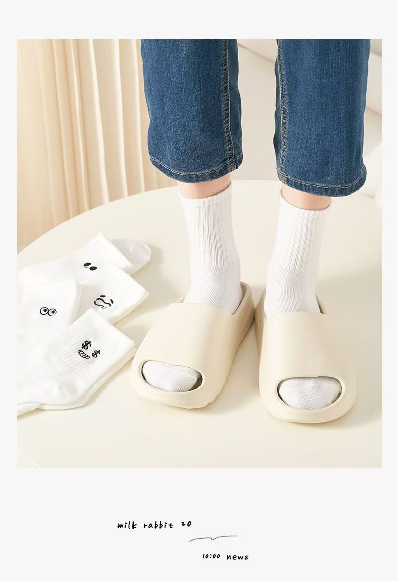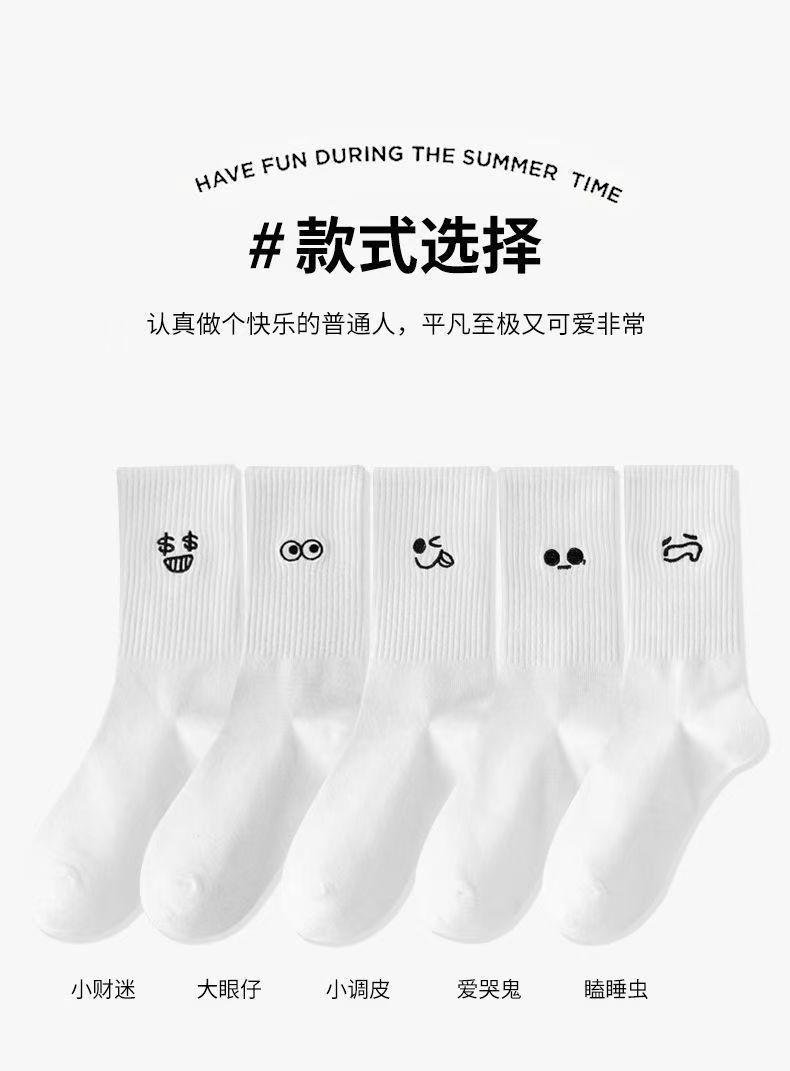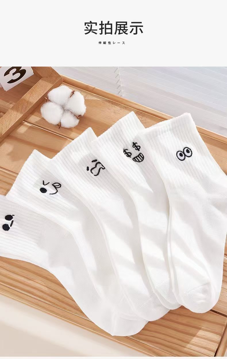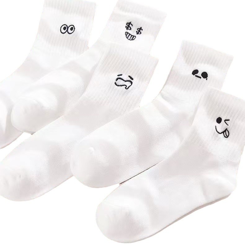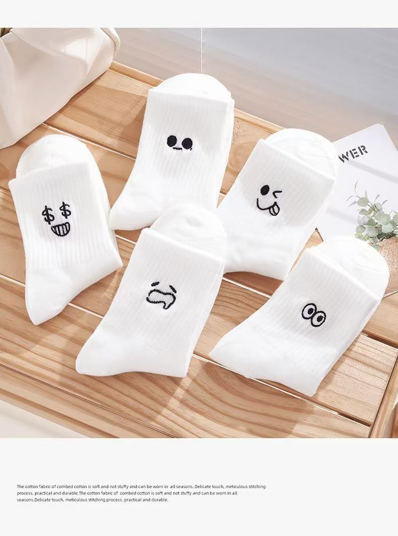 흰색 양말 여성용 이모티콘 팩 면 종아리 양말 가을 겨울 스포츠 재미있는 유행 버전 귀여운 긴 양말 통기성 여성용 양말