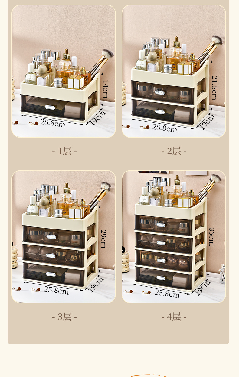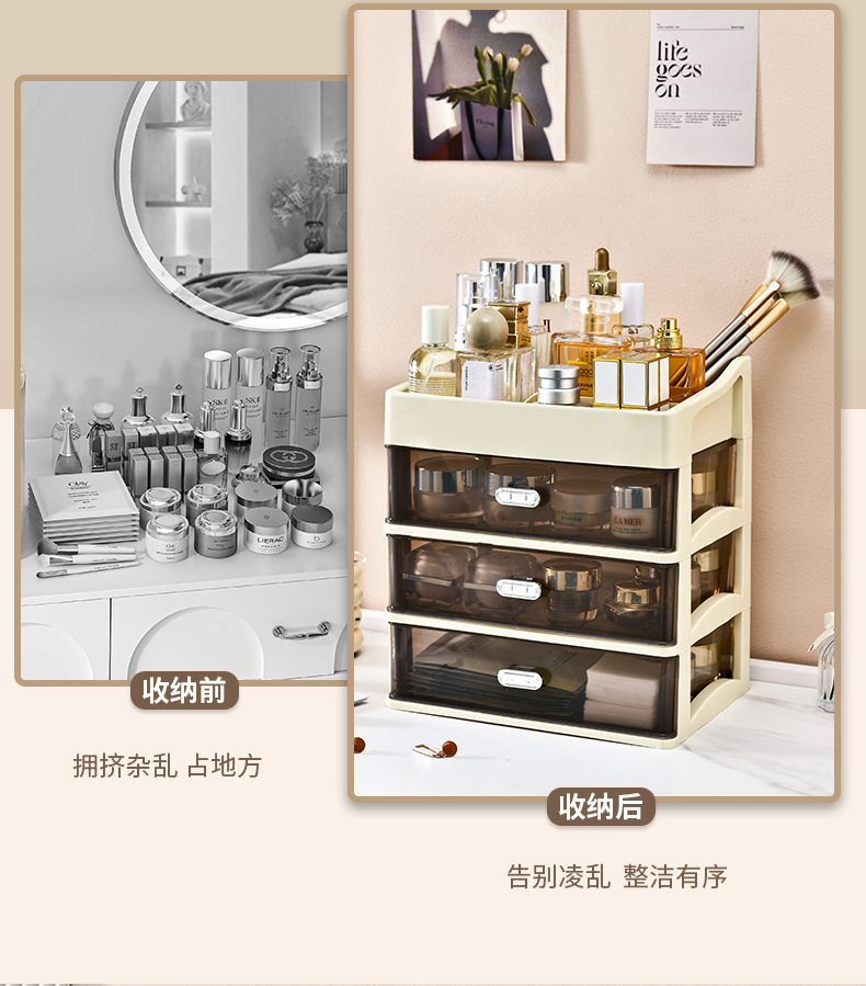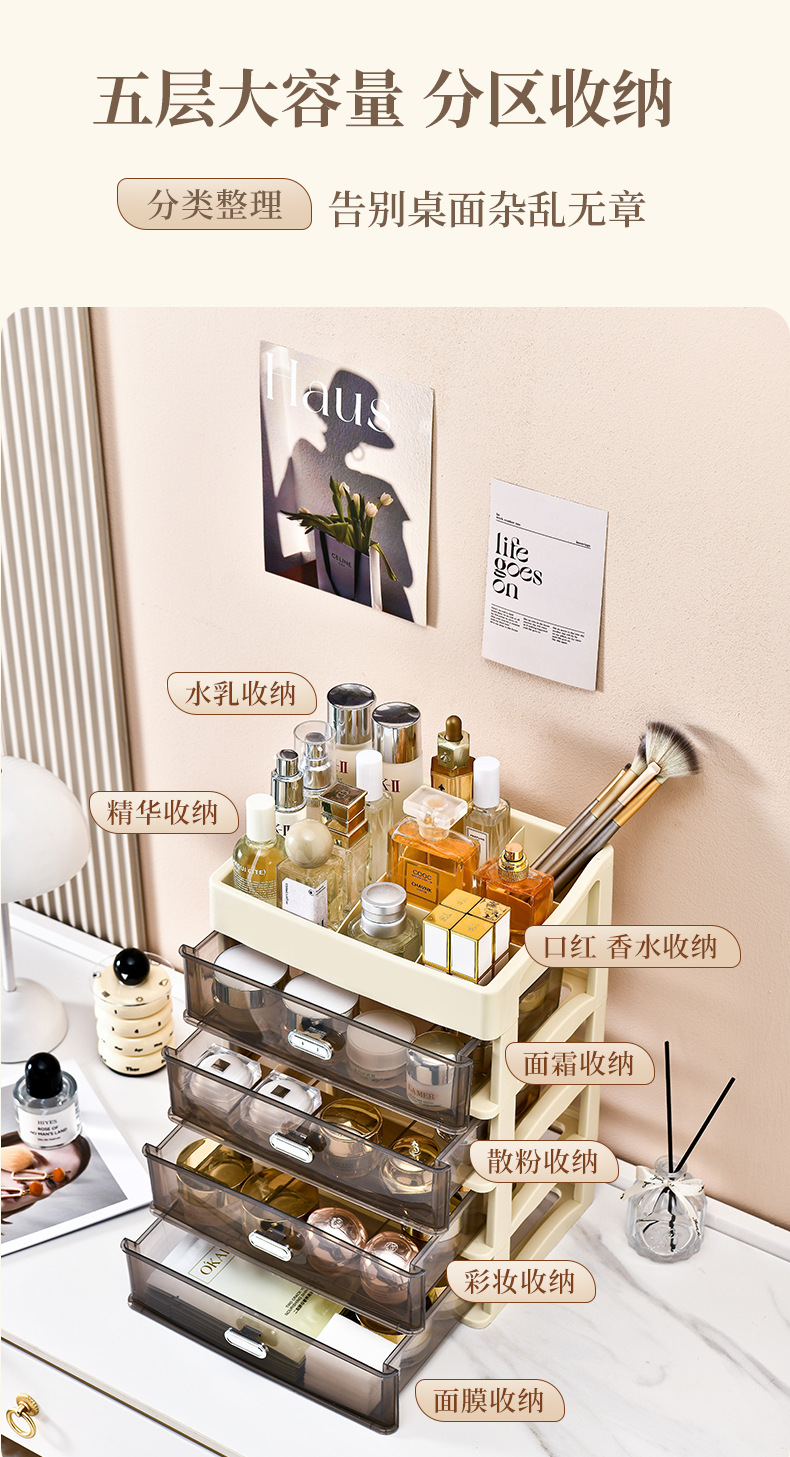 가벼운 고급 먼지 방지 화장품 보관 상자 고급 사무실 보관 캐비닛 다층 스킨 케어 데스크탑 서랍 랙